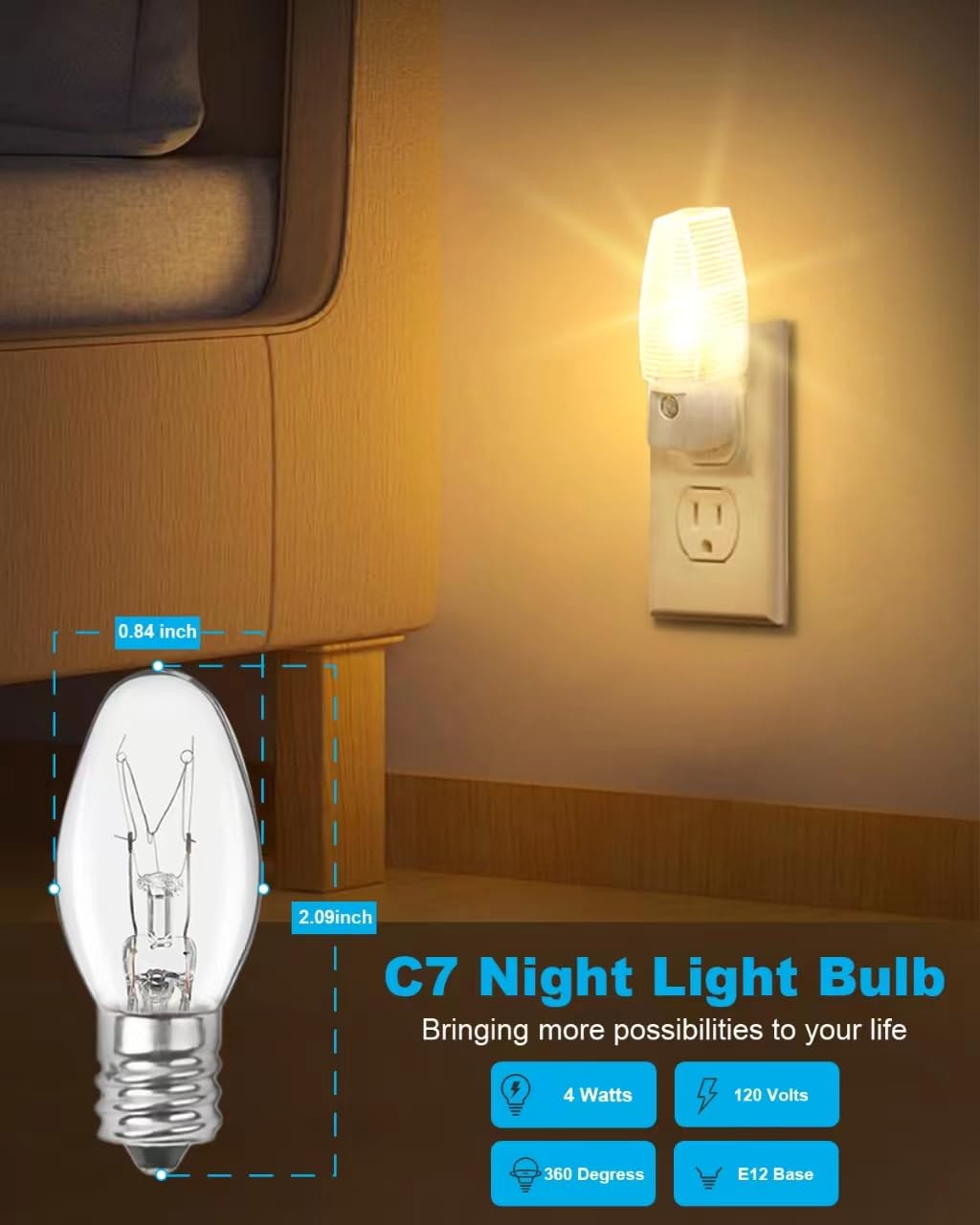 Widely applicable: Our c7 bulb is a small light bulb for use in scentsy plug-in nightlight wax warmer and himalayan salt lamps & baskets, chandeliers, candle & wax warmers, night lights, rock salt night light