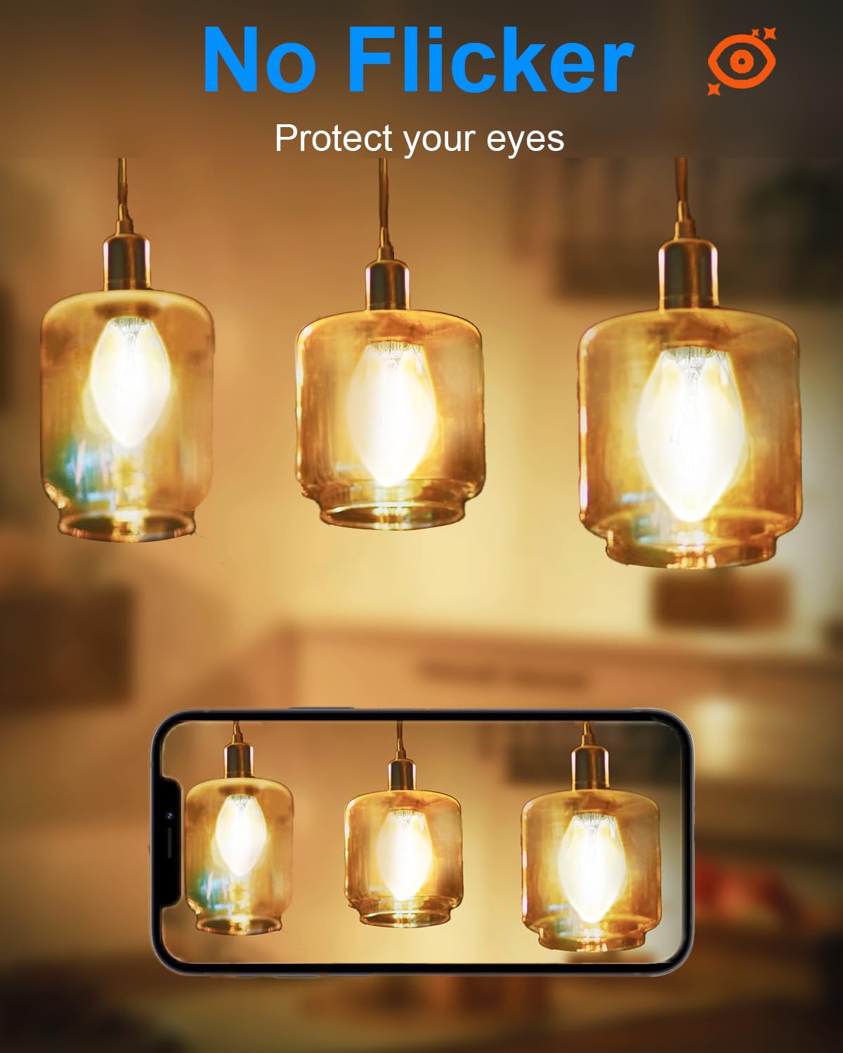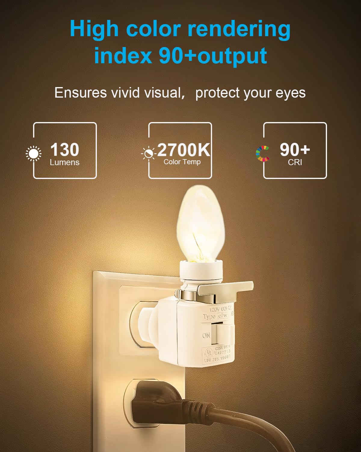 Classic & Beautiful Light Source: Our e12 c7 wax warmer bulbs use high transparency glass, the light is uniform and soft, taking care of both eyes, providing comfortable illumination with a color rendering index (CRI) of 90+. This high CRI ensures that all objects display their natural colors, making them appear more vibrant. The bulbs are flicker-free and do not emit UV or IR radiation, effectively protecting your eyes and those of your family