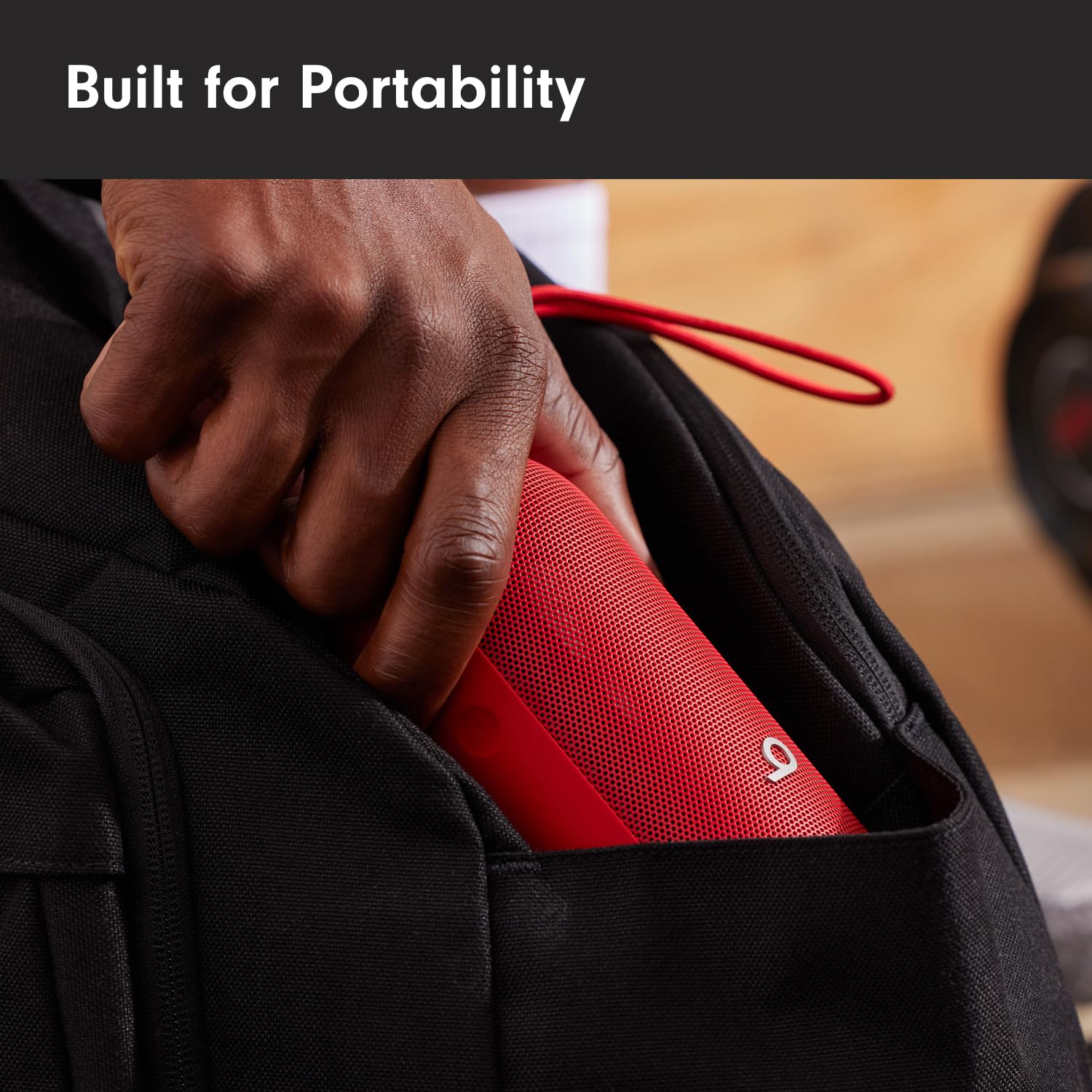 The portable speaker is IP67-rated for dust and water resistance for outstanding durability and includes a removable lanyard and soft-grip silicone backing to make it easy to take with you.