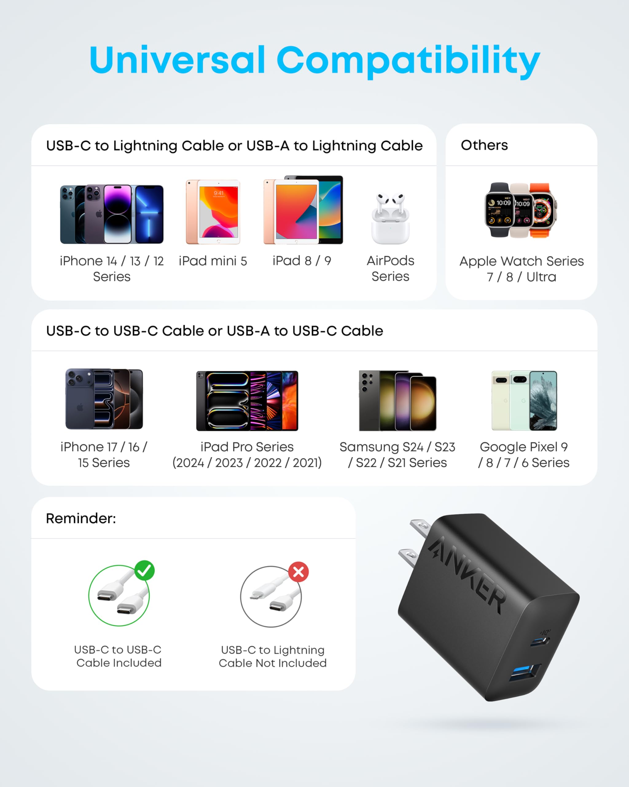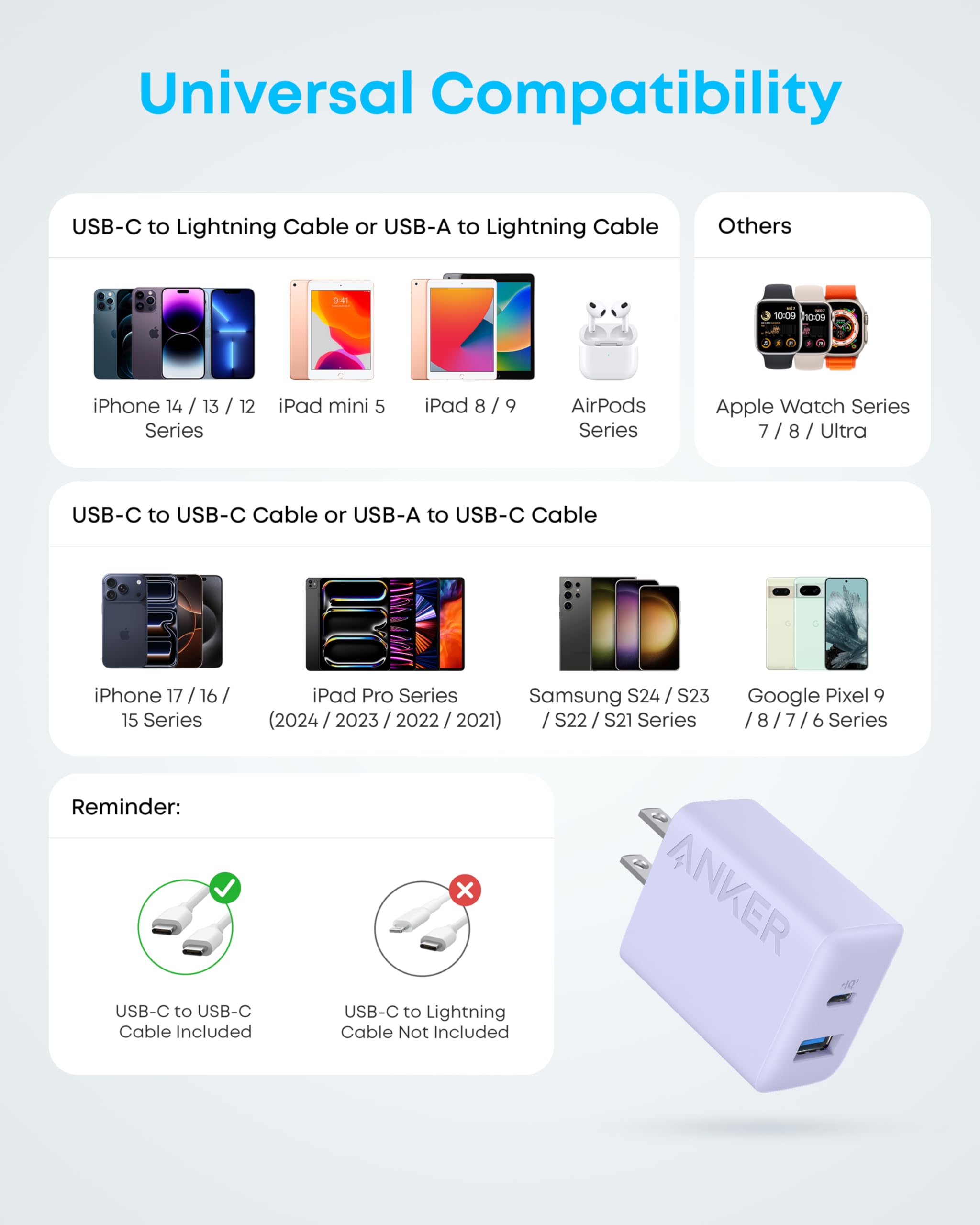 • Safety Features You Can Trust: Anker's proprietary system includes overvoltage protection, temperature control, and other safety features designed to help safeguard your devices while charging.