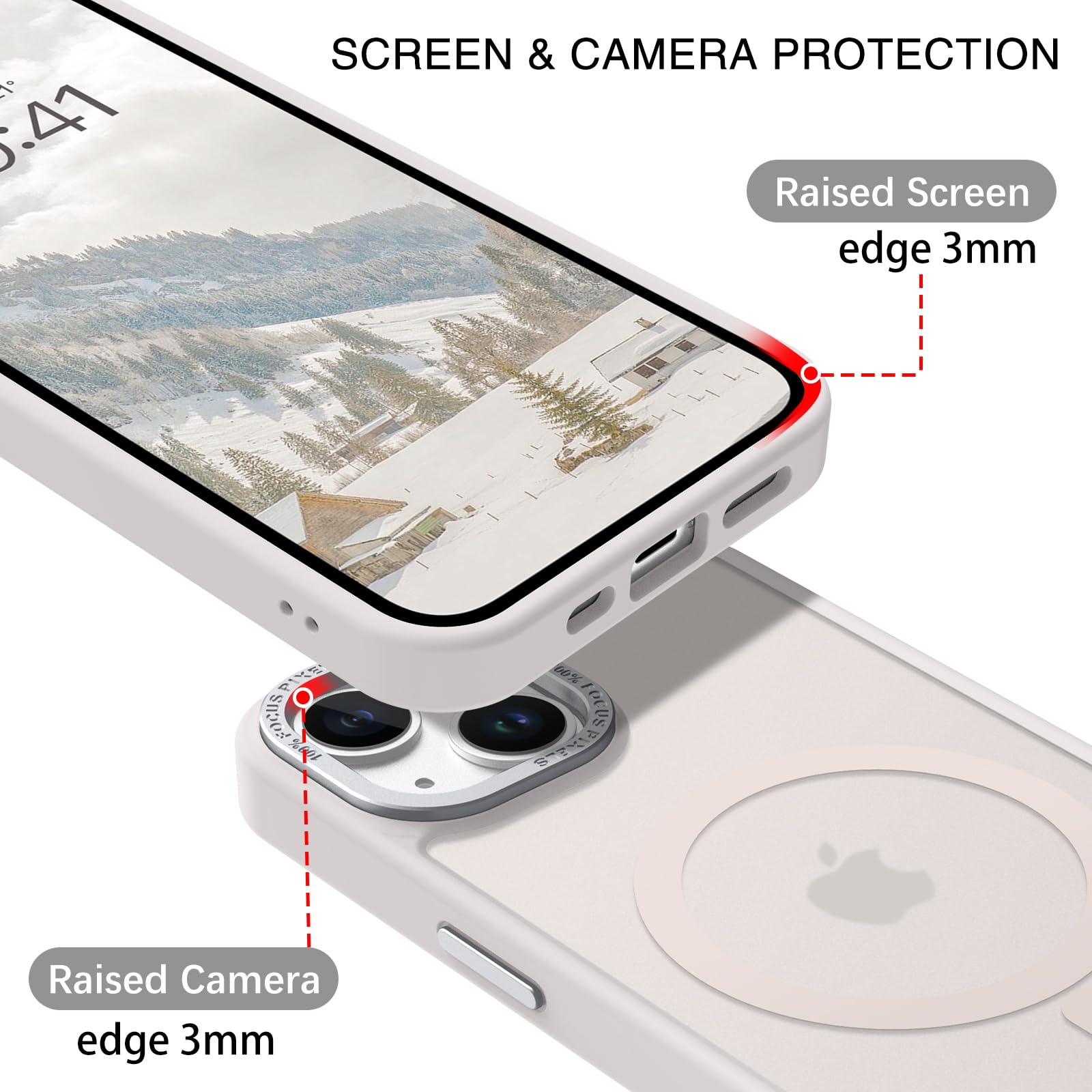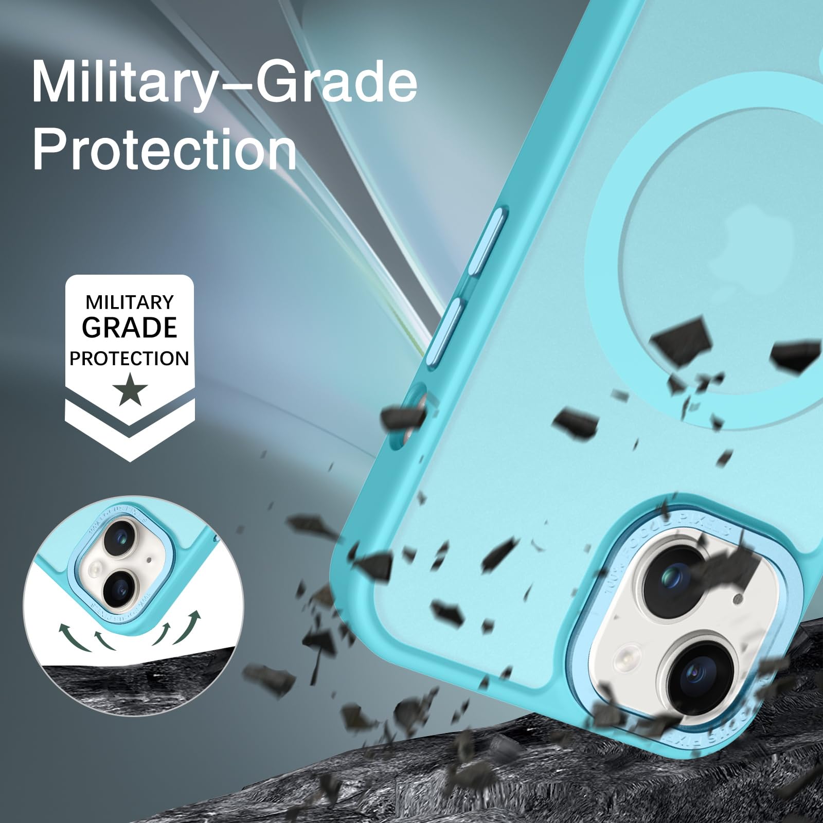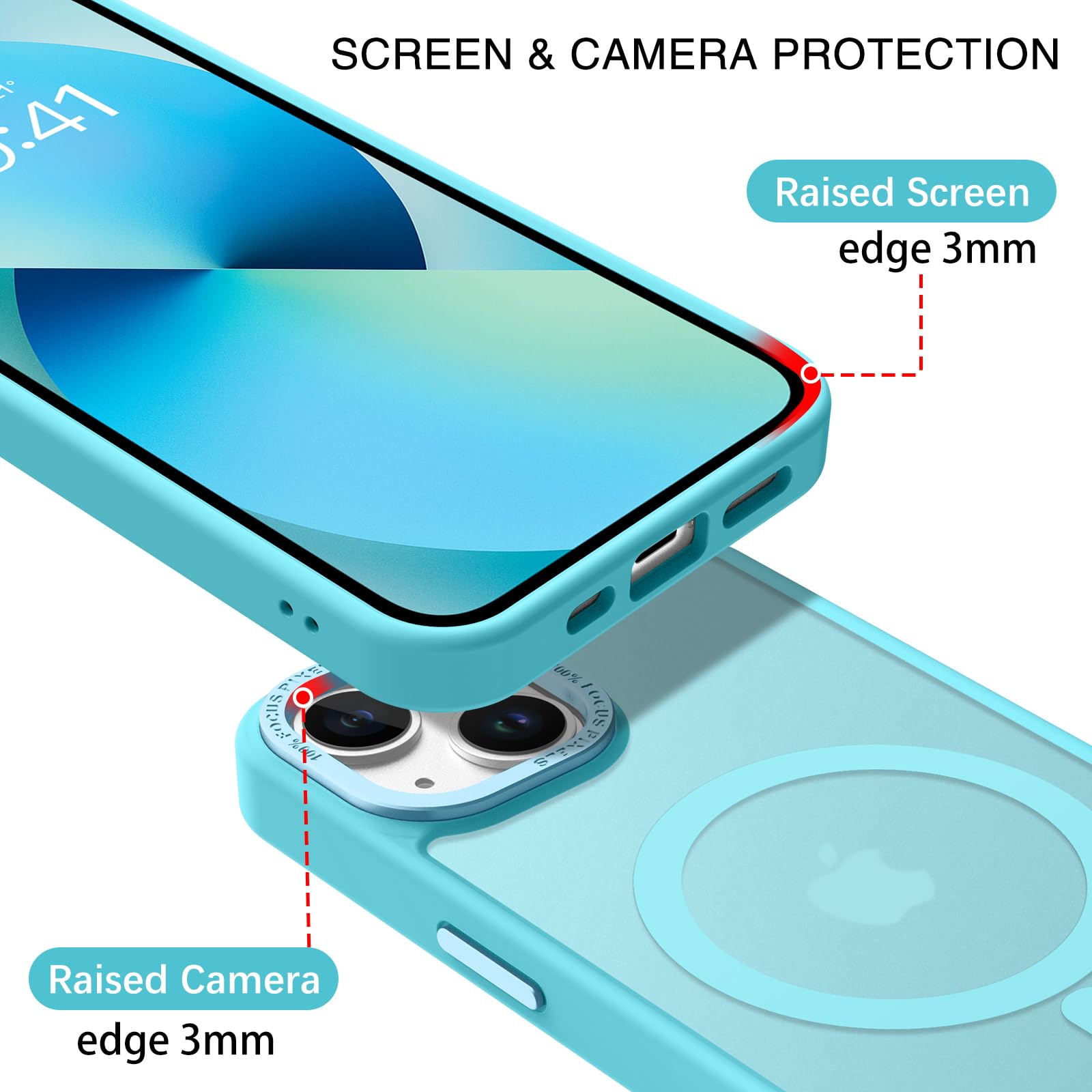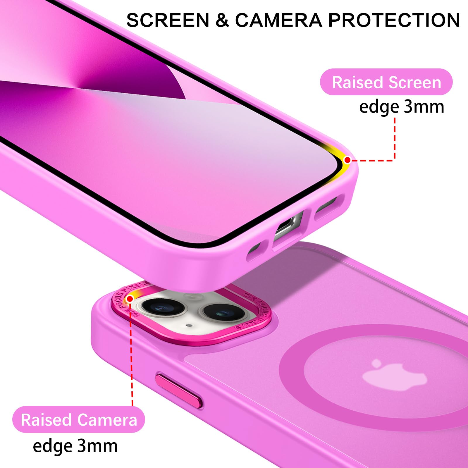 【Shock-Absorbent & Raised Lips Protection】The iPhone 13/14 Case is SGS&ROHS certified military-grade drop protection. On the inside edges, it has exclusive Shock 360° airbags and strong rubber bumpers on the outside edges for shock absorption if dropped on a hard surface. The internal air pad corners as bumpers are rounded and bubble out safely, giving extra room against corner shattering. What's more, there is a 3mm raised screen lip and a 3mm raised camera bezel to prevent scratches.