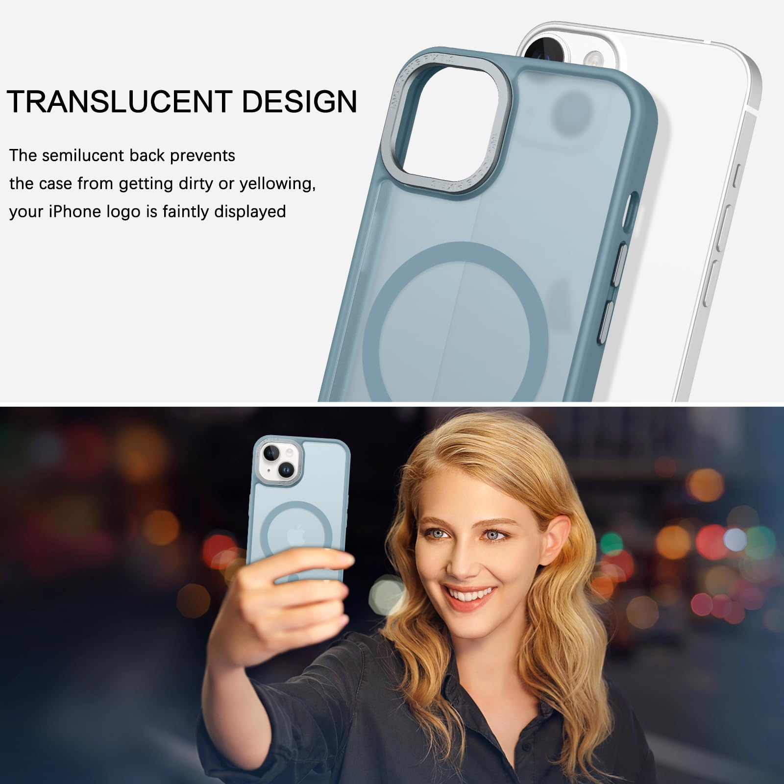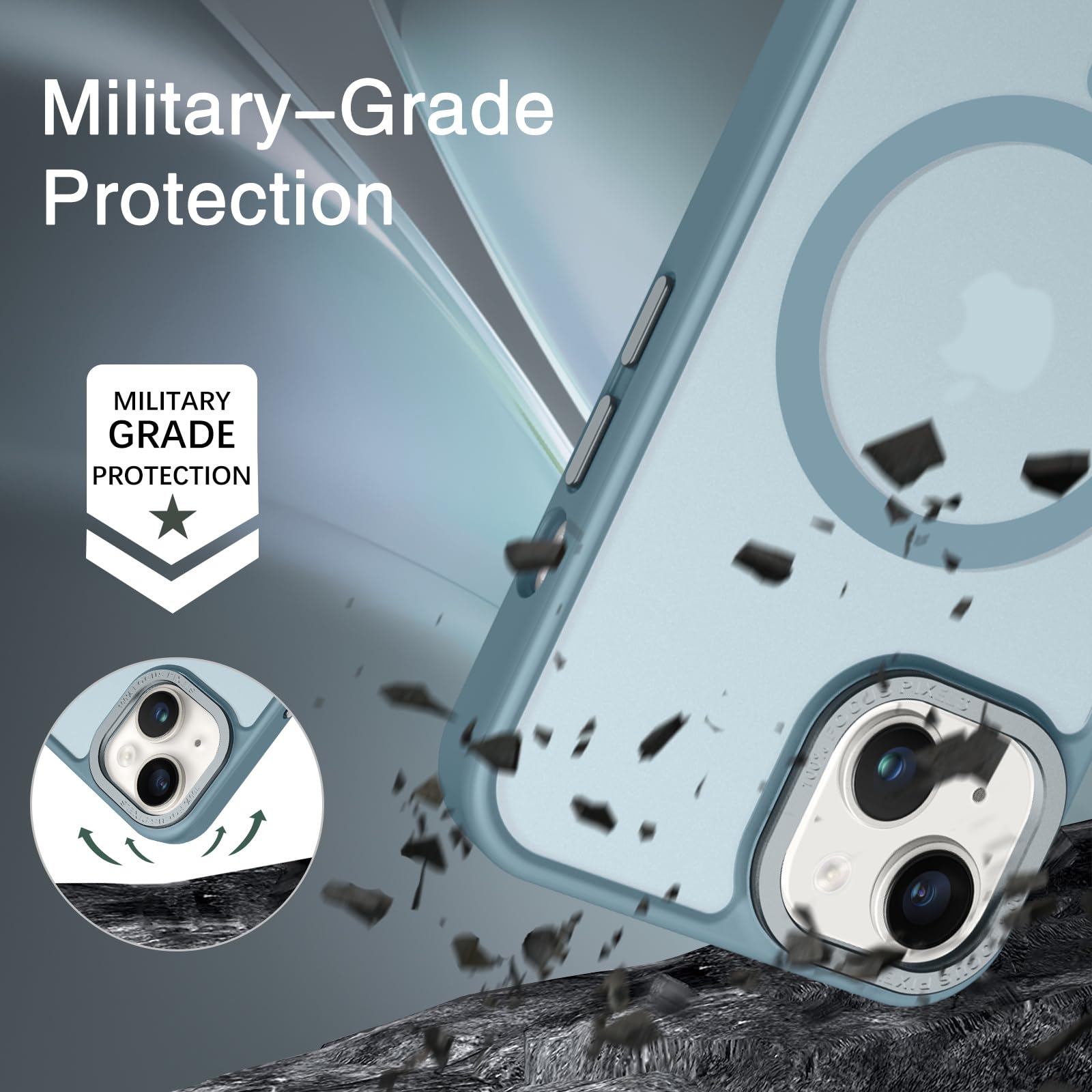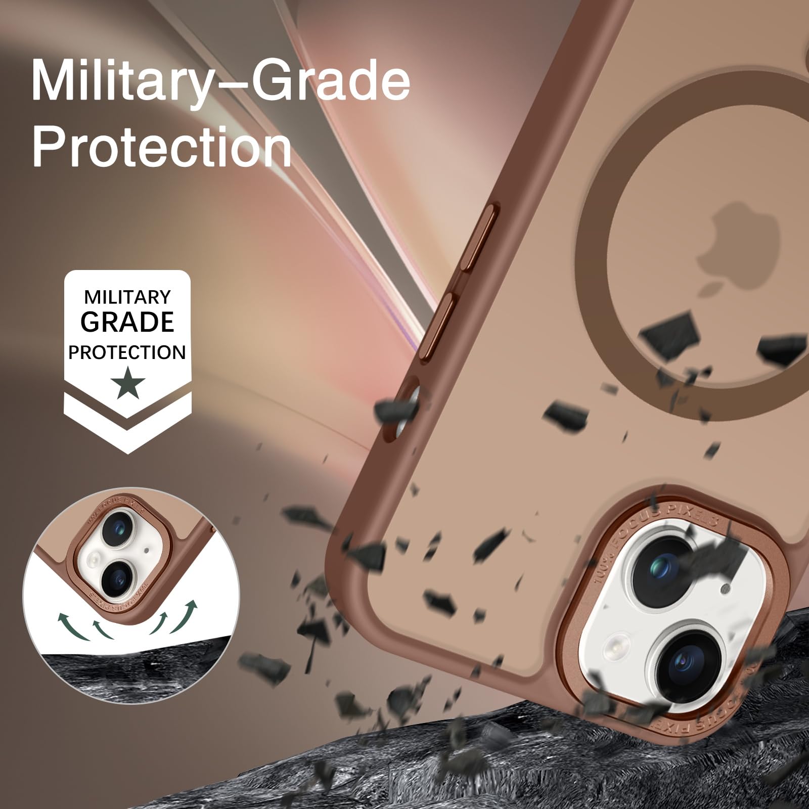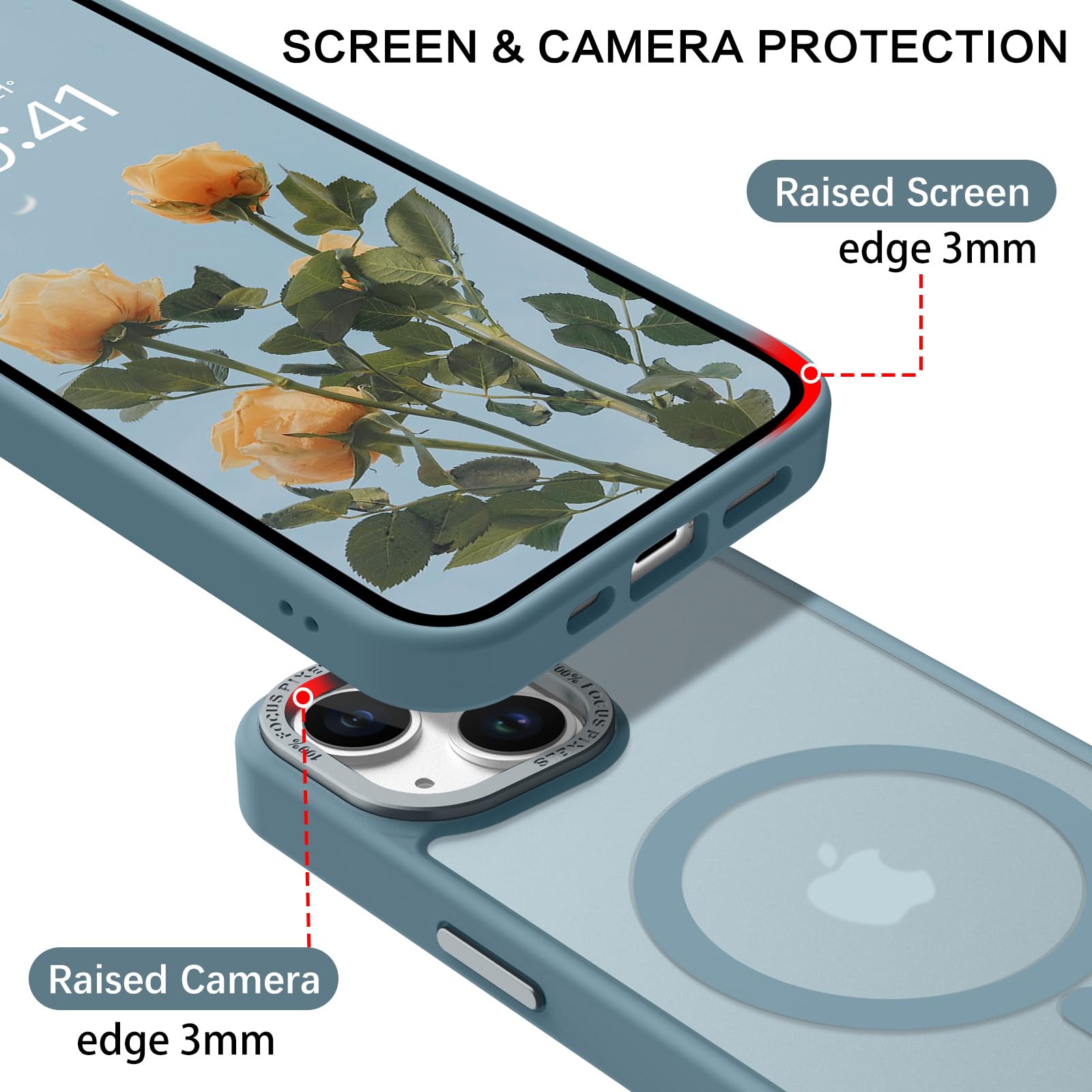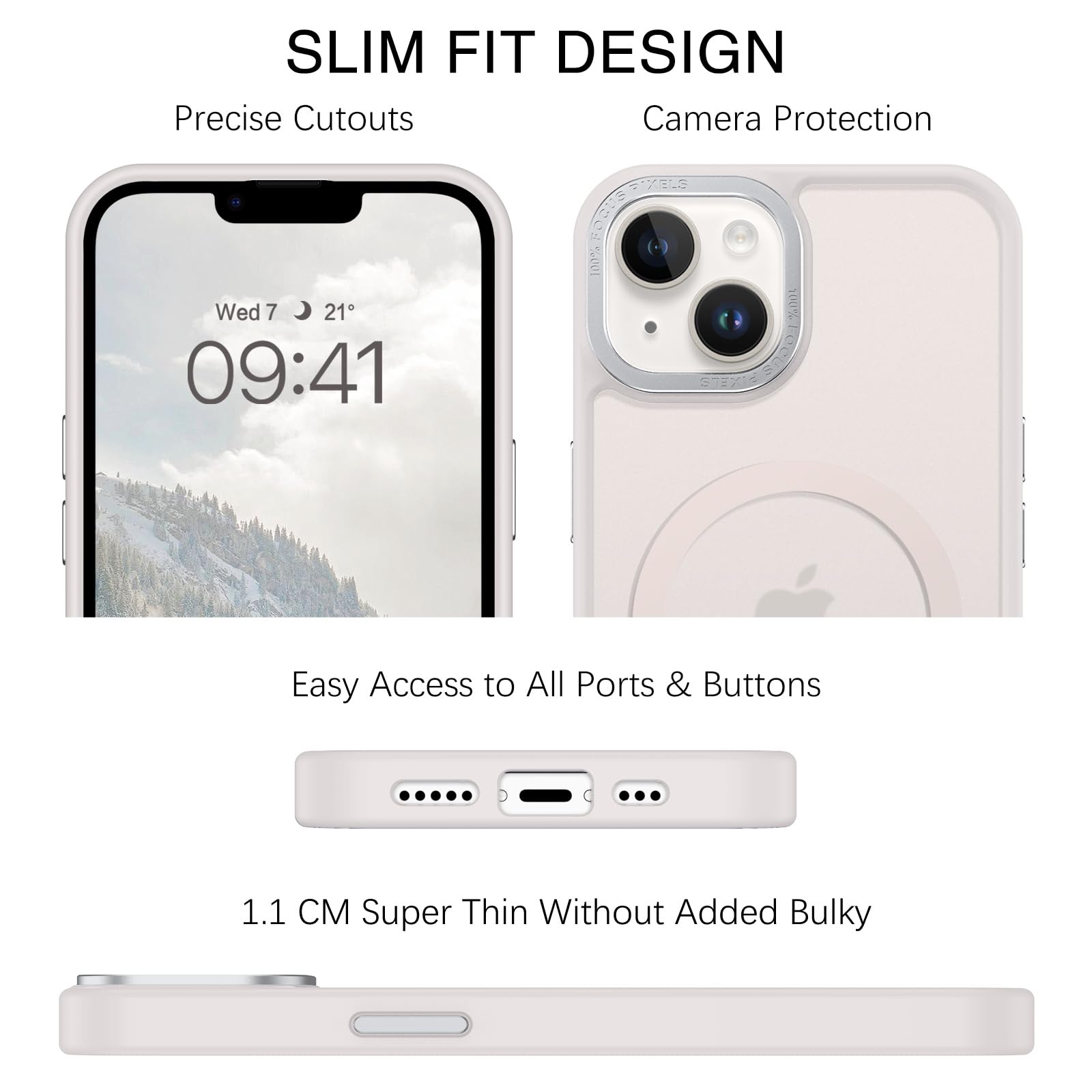 【Shock-Absorbent & Raised Lips Protection】The iPhone 13/14 Case is SGS&ROHS certified military-grade drop protection. On the inside edges, it has exclusive Shock 360° airbags and strong rubber bumpers on the outside edges for shock absorption if dropped on a hard surface. The internal air pad corners as bumpers are rounded and bubble out safely, giving extra room against corner shattering. What's more, there is a 3mm raised screen lip and a 3mm raised camera bezel to prevent scratches.