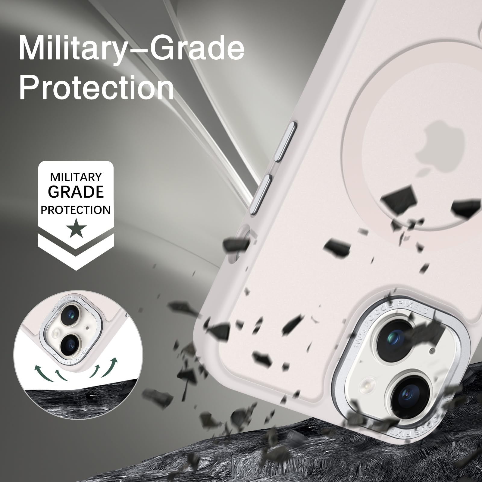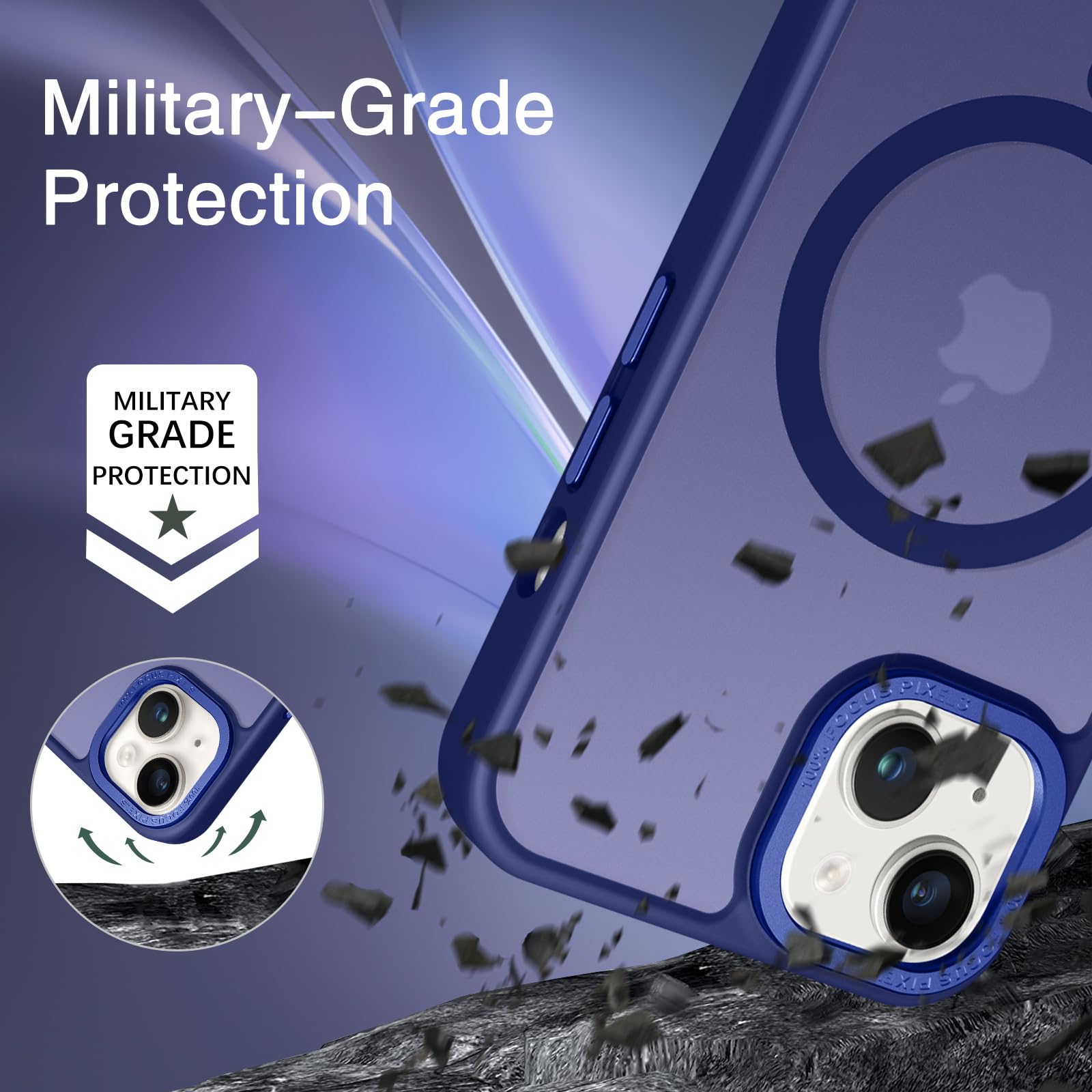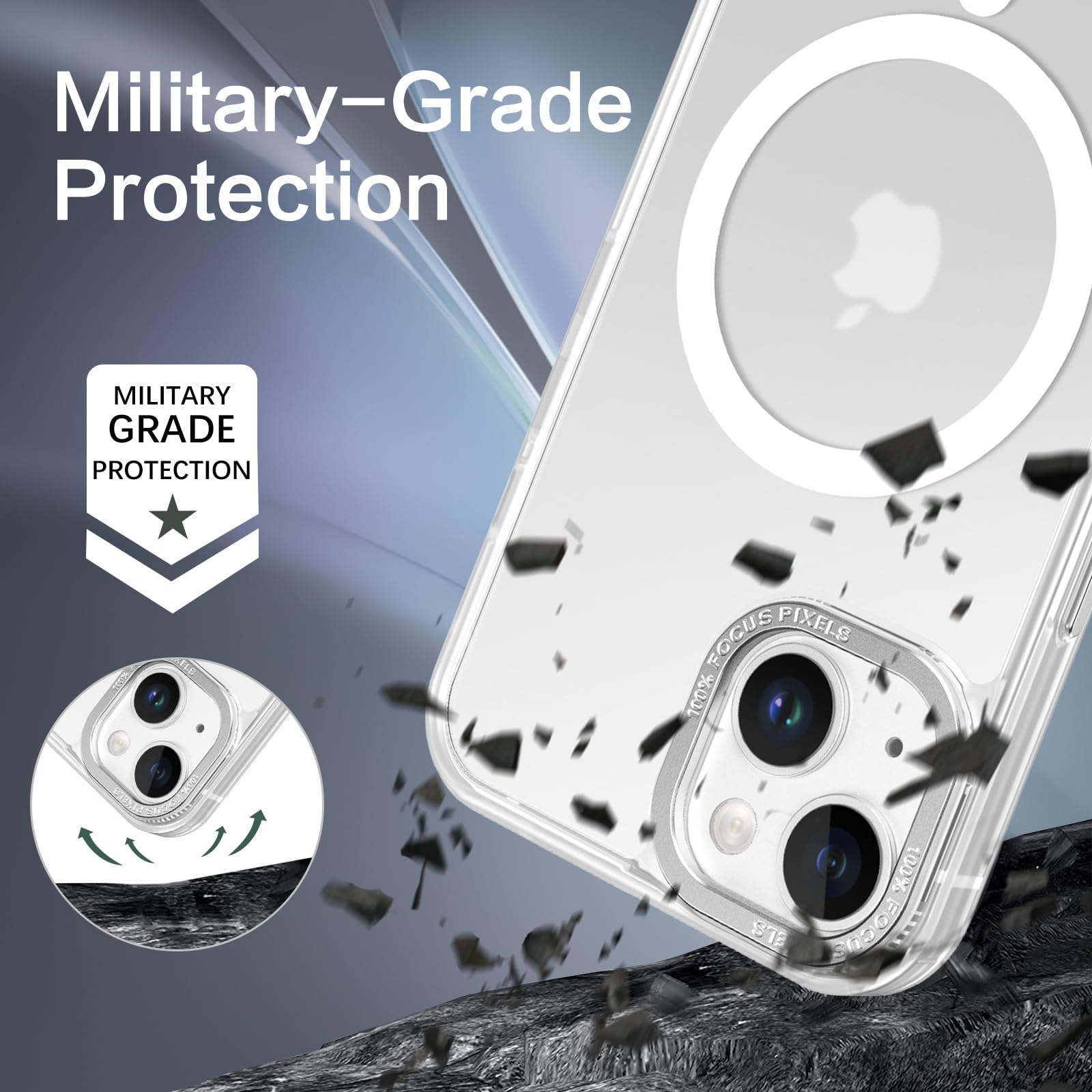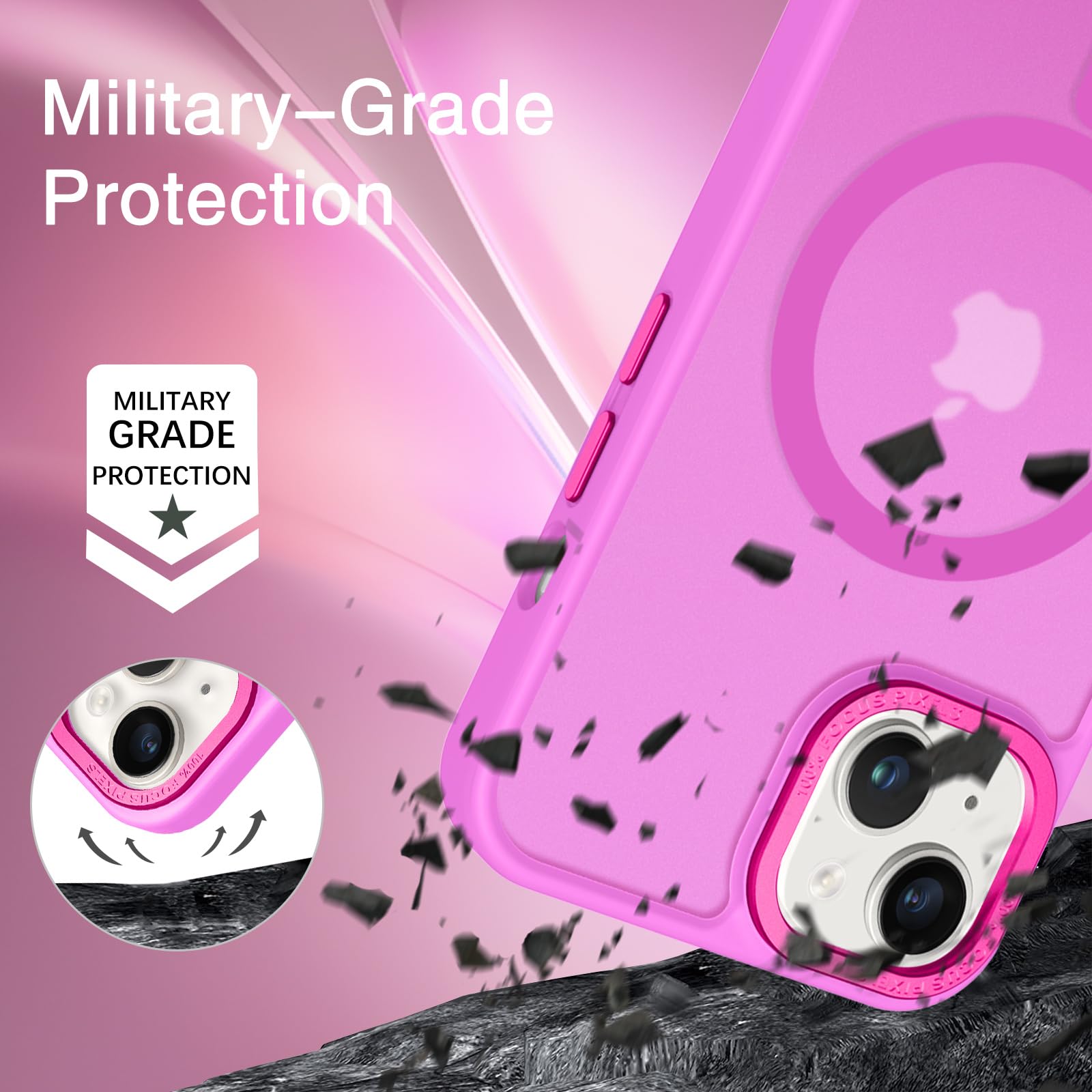 【Shock-Absorbent & Raised Lips Protection】The iPhone 13/14 Case is SGS&ROHS certified military-grade drop protection. On the inside edges, it has exclusive Shock 360° airbags and strong rubber bumpers on the outside edges for shock absorption if dropped on a hard surface. The internal air pad corners as bumpers are rounded and bubble out safely, giving extra room against corner shattering. What's more, there is a 3mm raised screen lip and a 3mm raised camera bezel to prevent scratches.