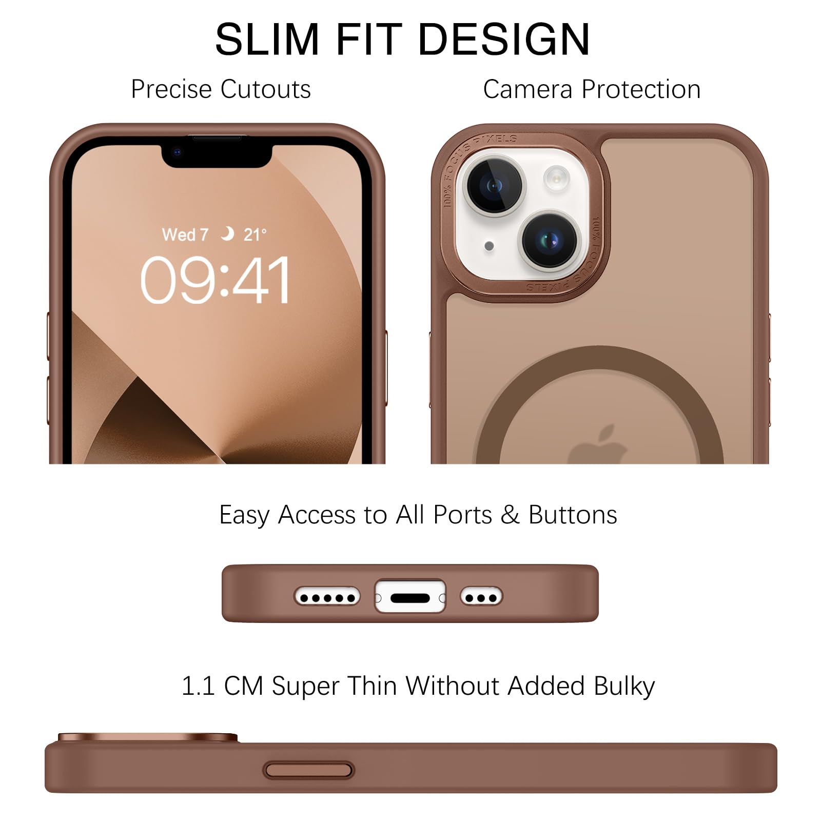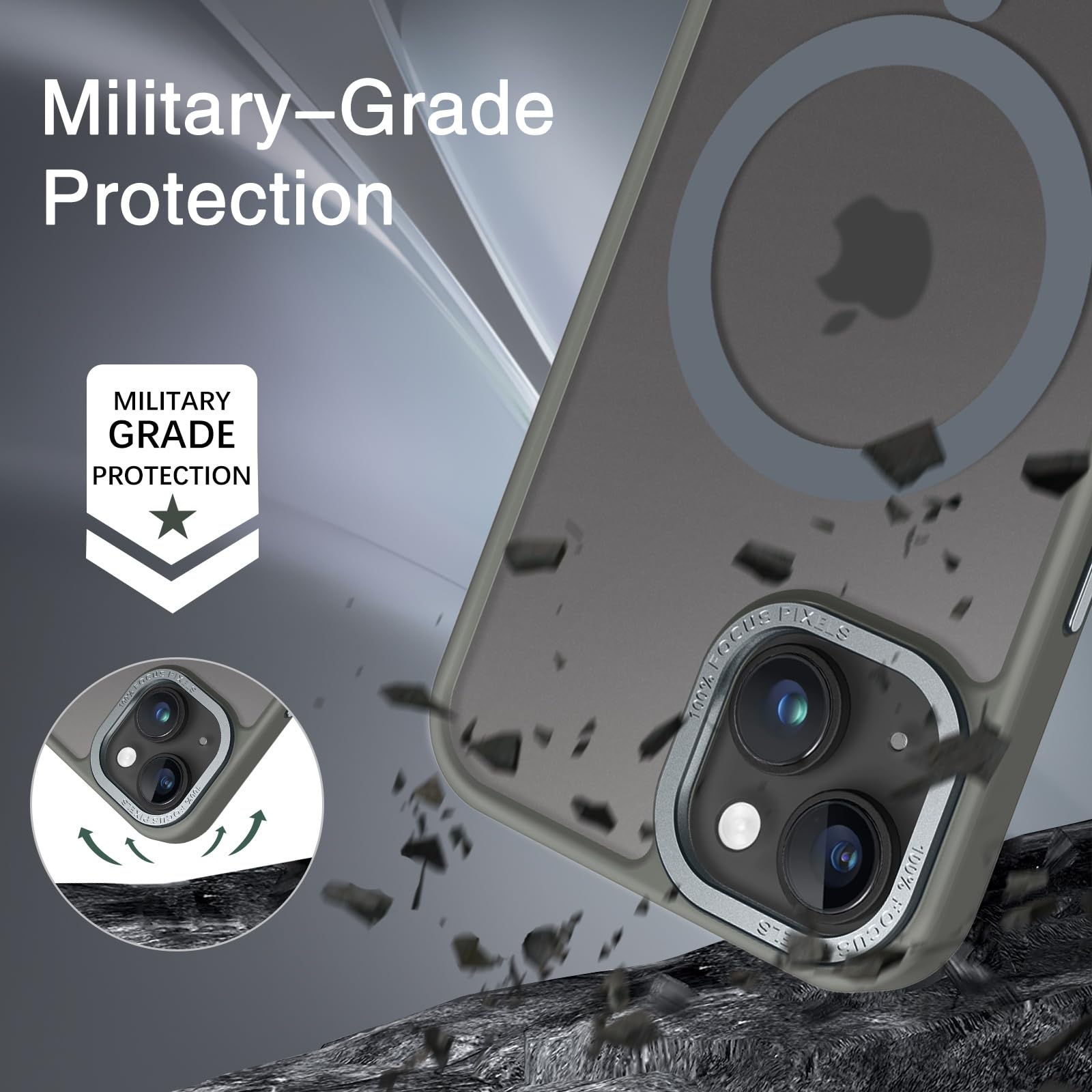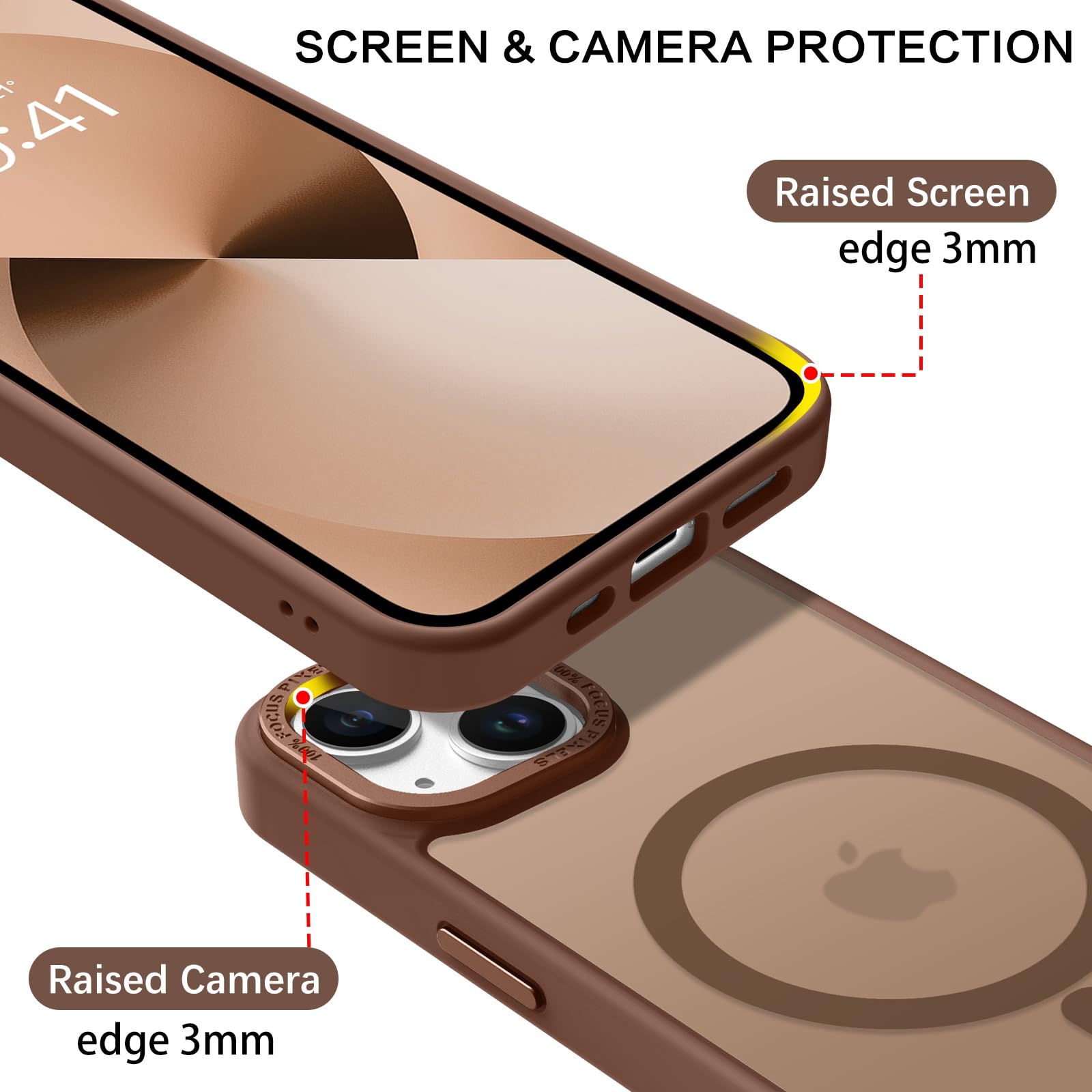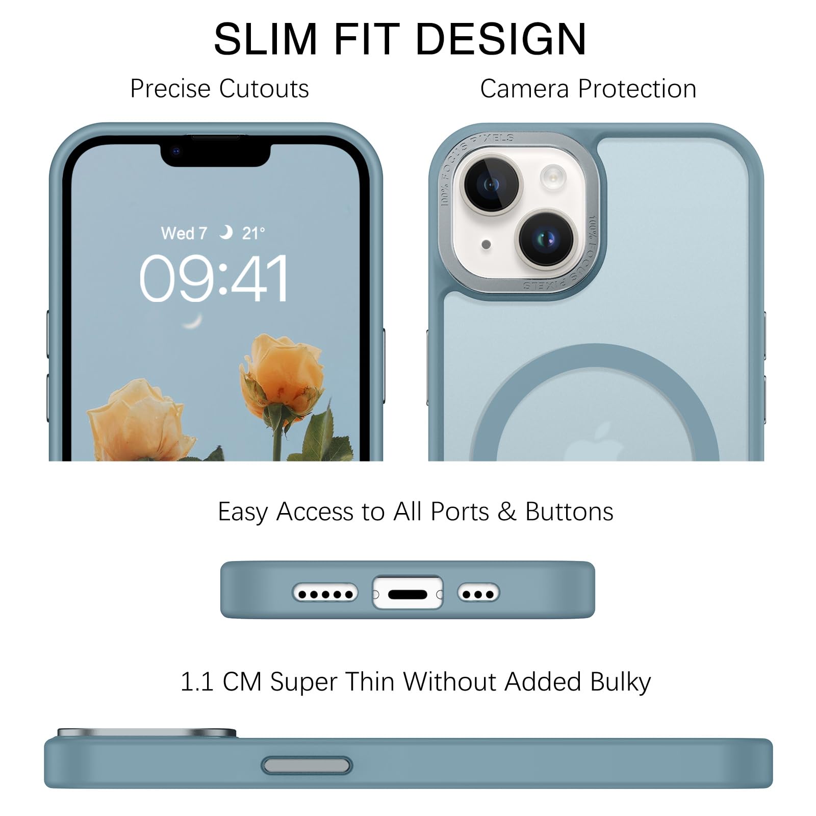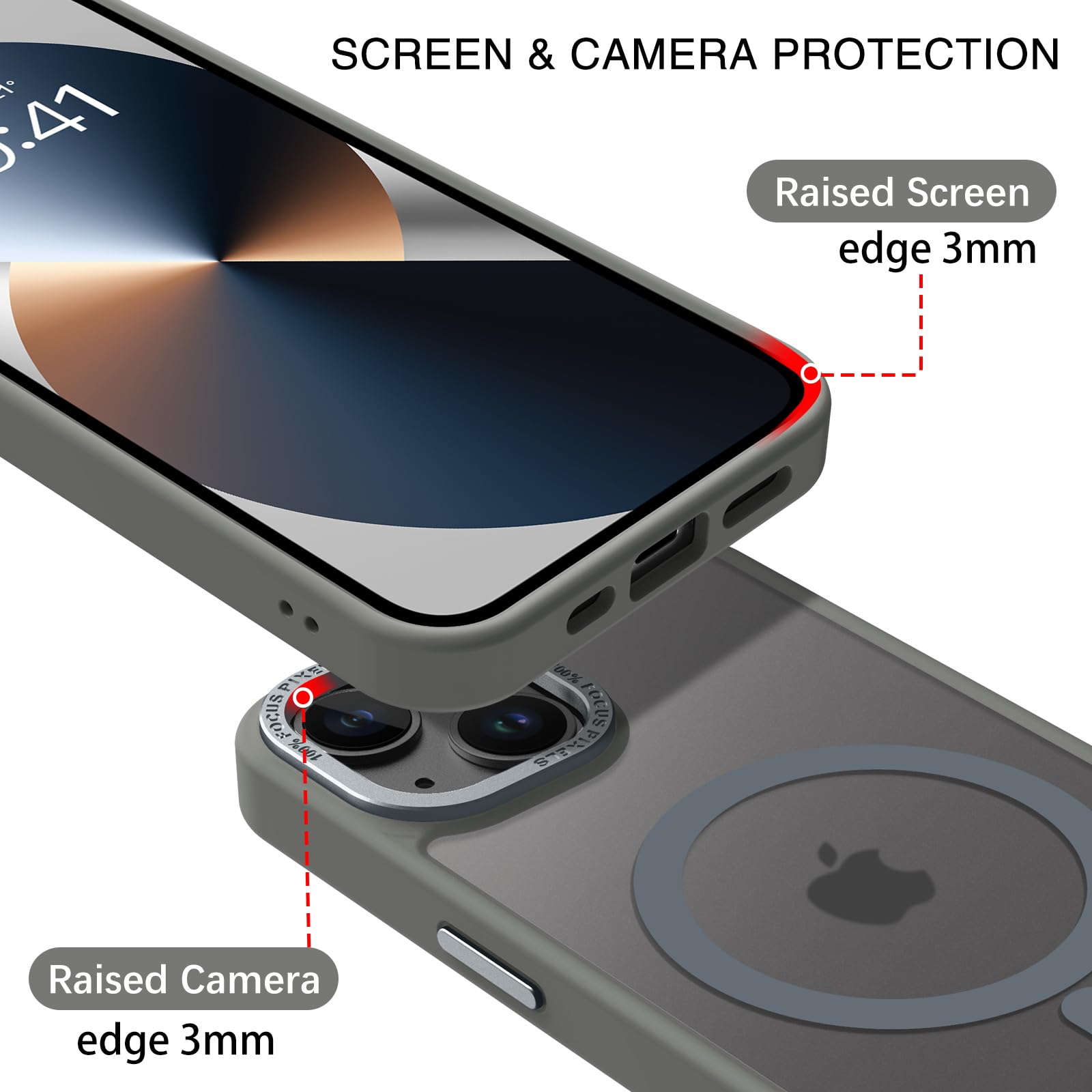 【Shock-Absorbent & Raised Lips Protection】The iPhone 13/14 Case is SGS&ROHS certified military-grade drop protection. On the inside edges, it has exclusive Shock 360° airbags and strong rubber bumpers on the outside edges for shock absorption if dropped on a hard surface. The internal air pad corners as bumpers are rounded and bubble out safely, giving extra room against corner shattering. What's more, there is a 3mm raised screen lip and a 3mm raised camera bezel to prevent scratches.