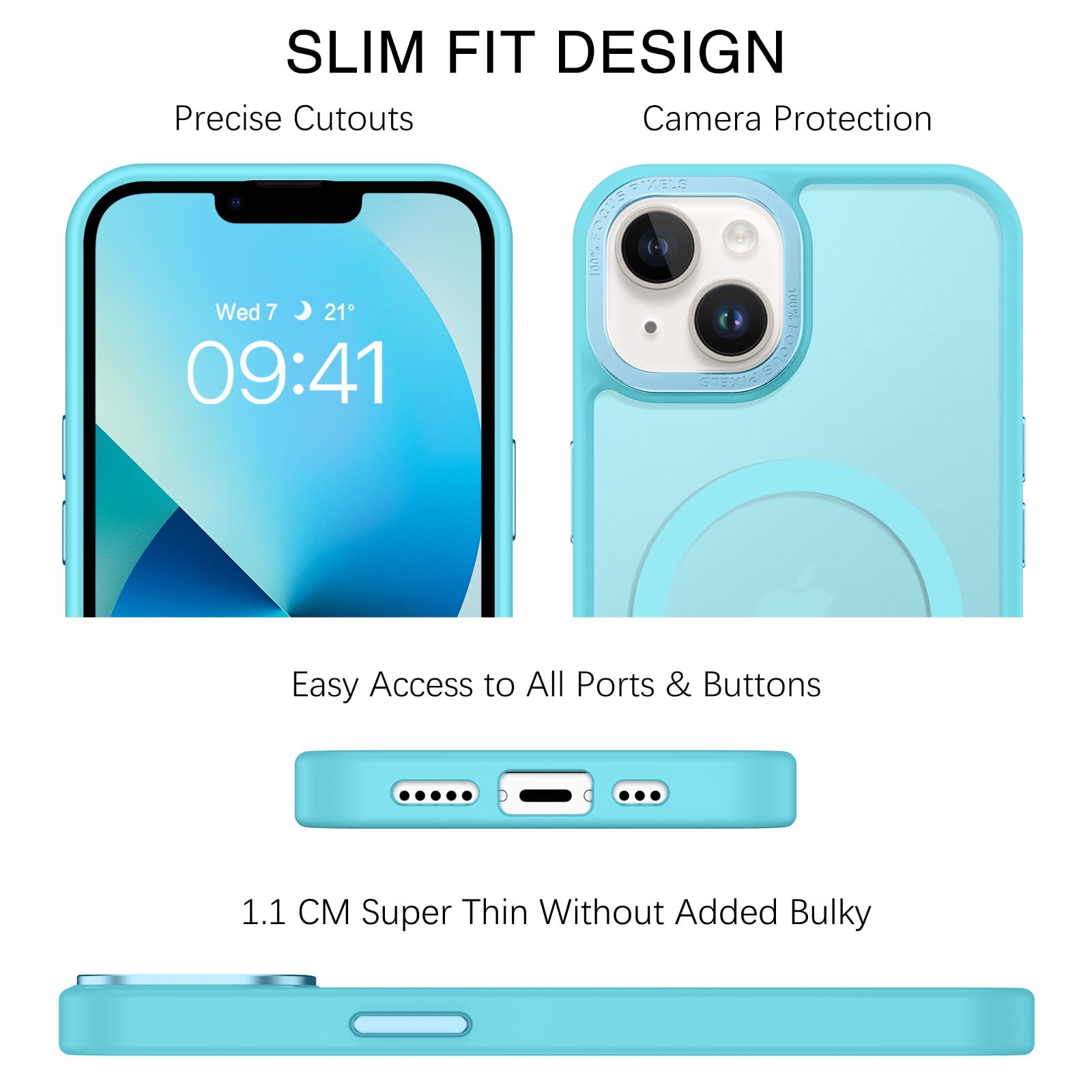 【Considerate Cutouts & Exquisite Tactile Buttons】Phone Case for iPhone 13/14 has a decent amount of lip which maximizes the protection of your lens from wear and tear and maintains the uniform color of your lens and the phone case. Accurate and precise ports allow easy access to all the functions of your phone. The tactile buttons covers bring you great responsive touch experience and marries up to the volume controls, port, and camera perfectly.