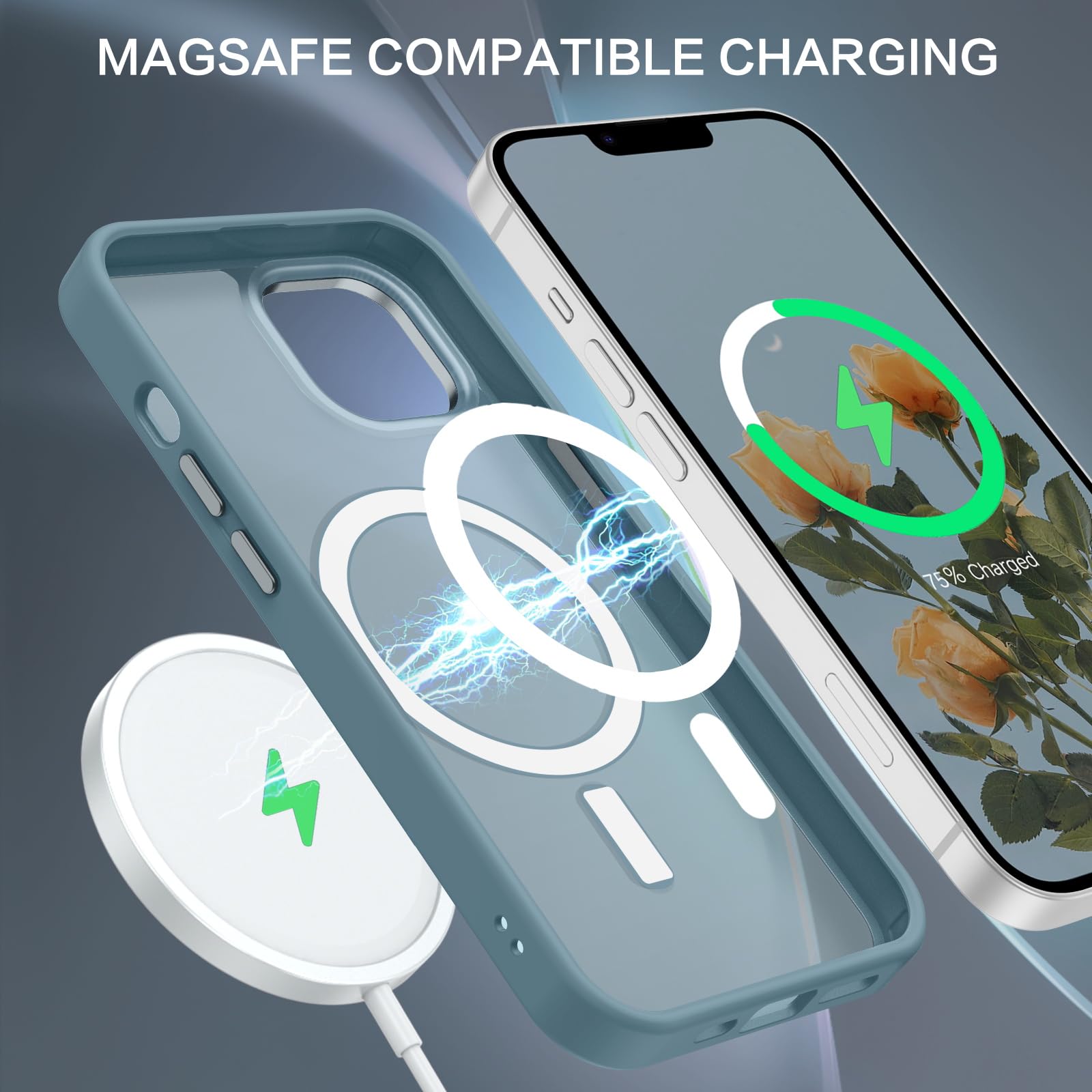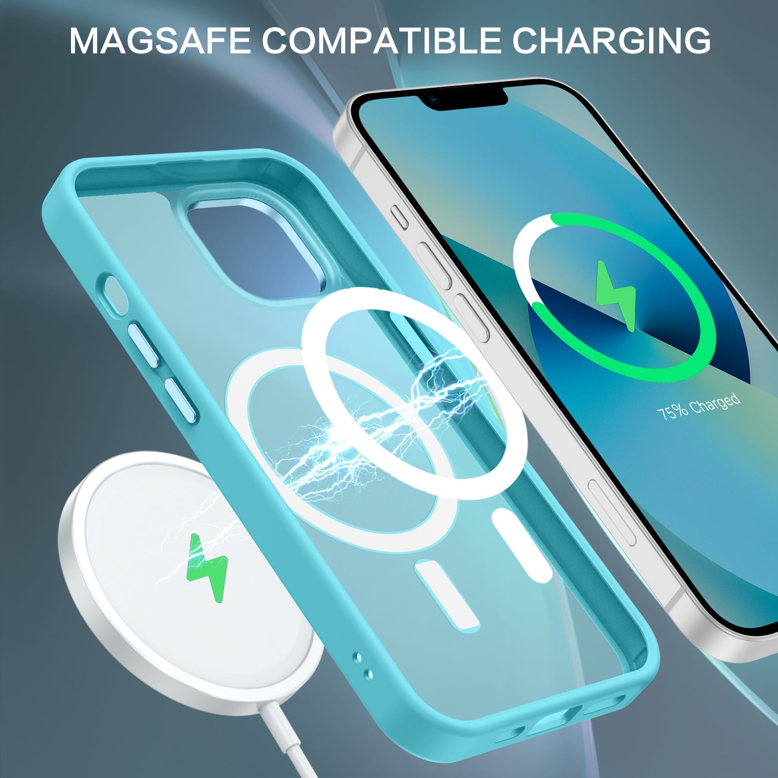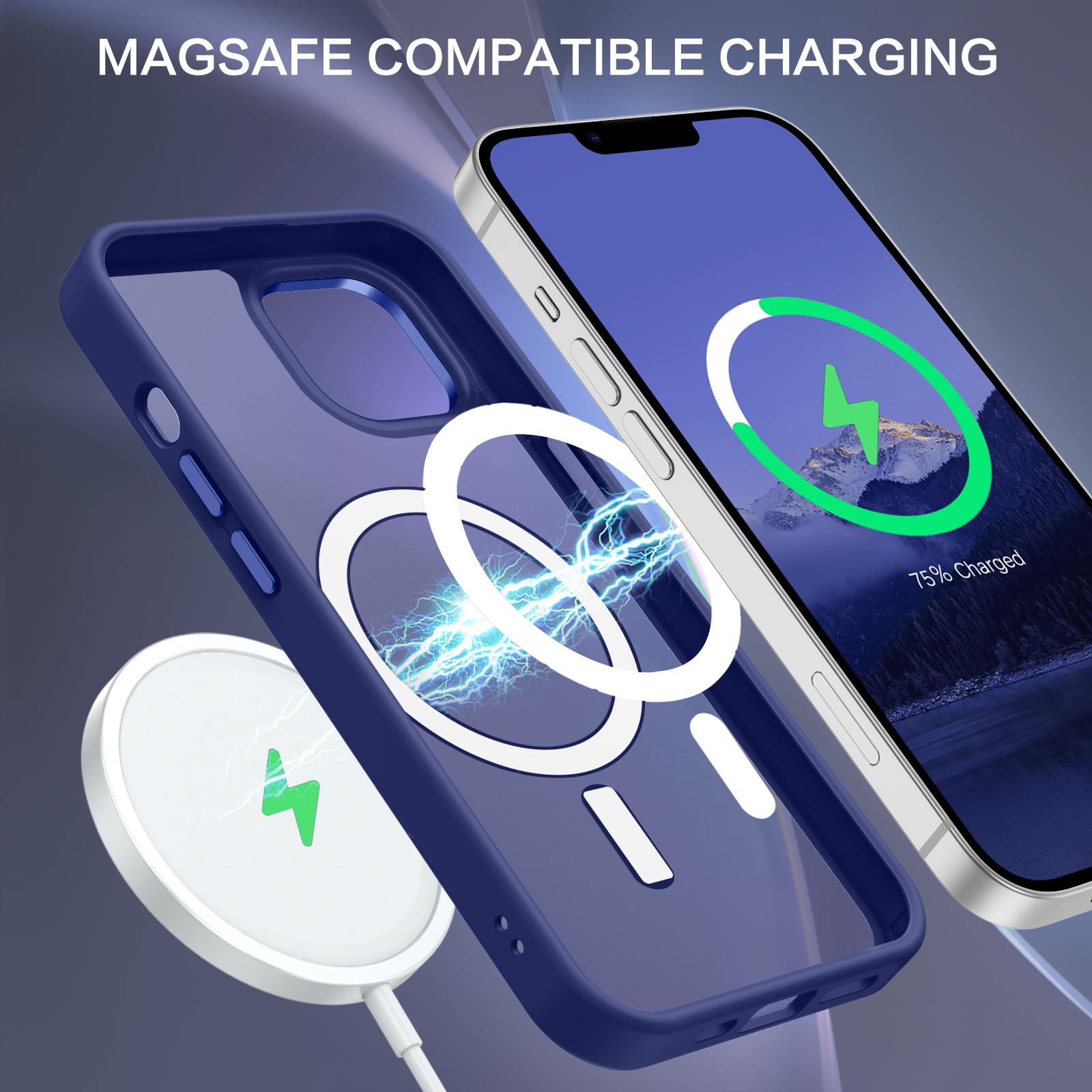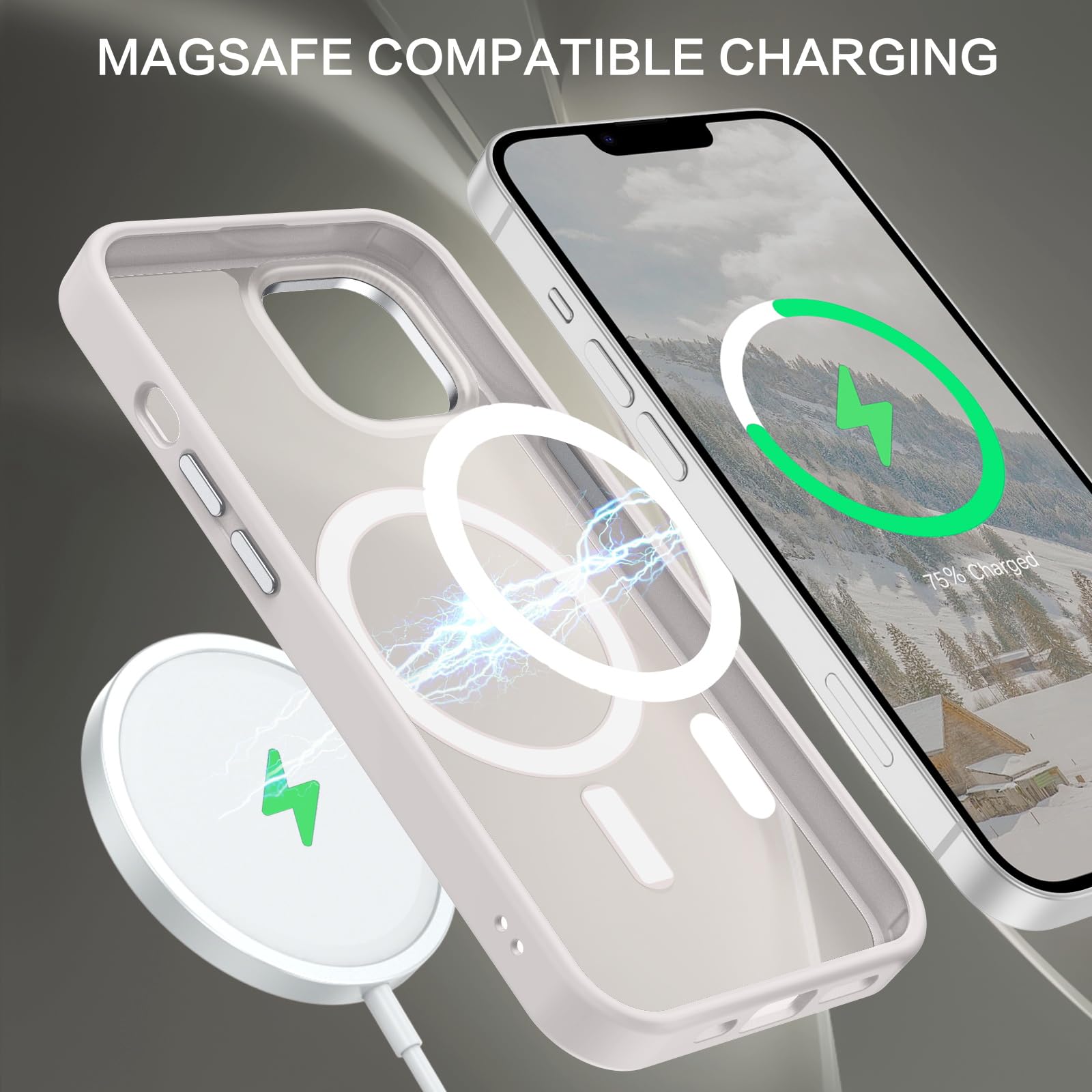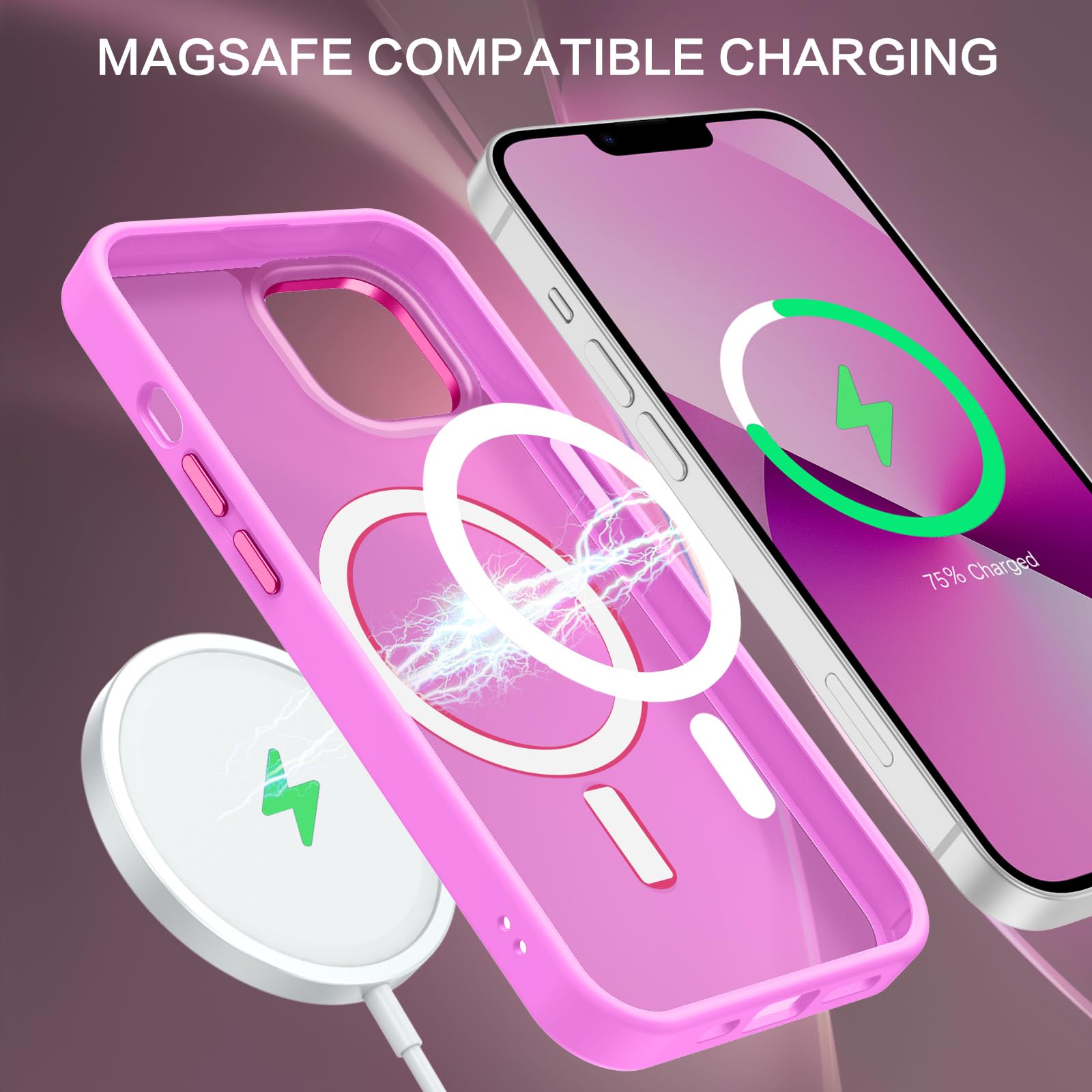 【Compatible with MagSafe Accessories】 This iPhone 13/14 Phone Case, with a built-in magnetic ring that aligns perfectly with MagSafe chargers and other Qi-certified chargers, offers a strong attach experience and faster wireless charging. This iPhone 13/14 Case magnetism is super strong, it can be firmly connected with all magnetic accessories such as Magnetice chargers, wallets, battery packs, car mounts, etc.,using chargers and other Qi wireless chargers and will not affect the signal.