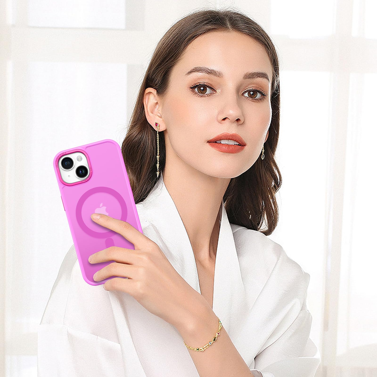 BENTOBEN Magnetic for iPhone 13 Case & iPhone 14 Case [Compatible with Magsafe] Translucent Matte Phone Case iPhone 13/14 Slim Thin Shockproof Women Men Protective Cover Cases, Hot Pink