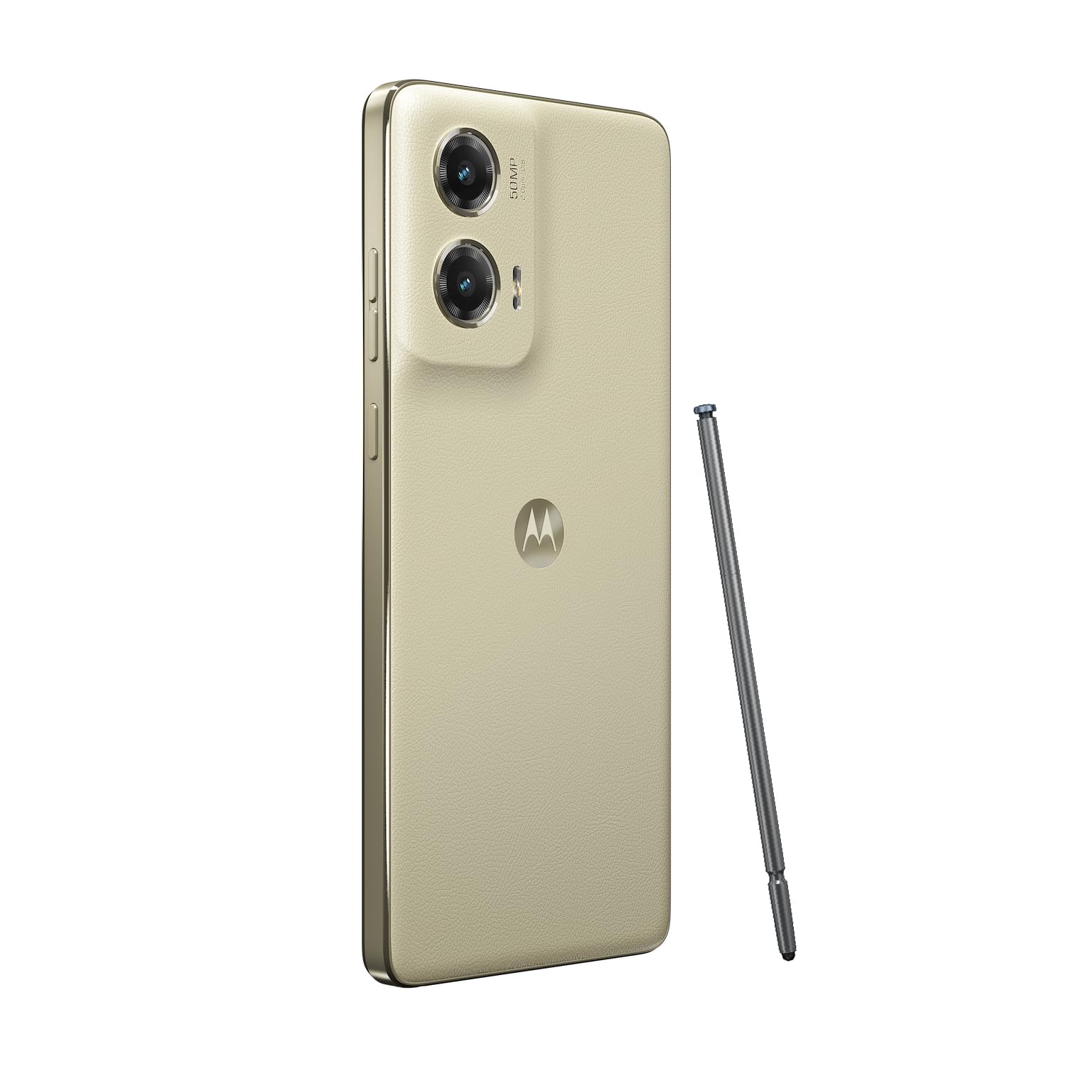 Introducing moto g stylus 5G - 2024, with a new stylus that takes expression to another level. Jot notes, edit photos, sketch artwork, and navigate effortlessly with even faster responsiveness. Experience cinema-quality entertainment on the 6.7" pOLED display backed by Dolby Atmos® sound. Capture sharper photos and smoother videos with the 50MP Ultra Pixel camera system featuring OIS. And have plenty of power when inspiration strikes thanks to a 5000mAh battery and ultra-fast TurboPower™ charging. Wherever you go, you’ll make a statement with a standout design featuring vegan leather. And with tons of storage, you’ll have room for all your favorite content and creations. Express yourself like never before with moto g stylus 5G.