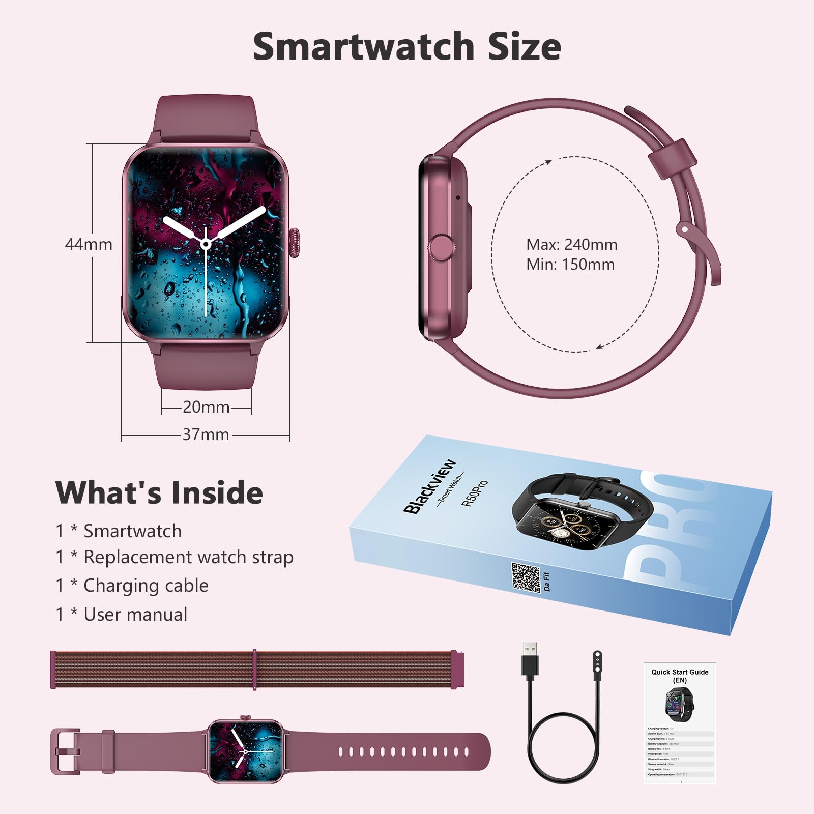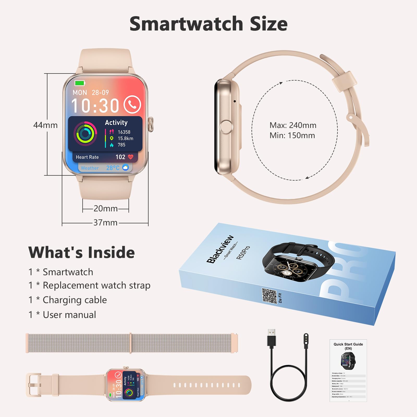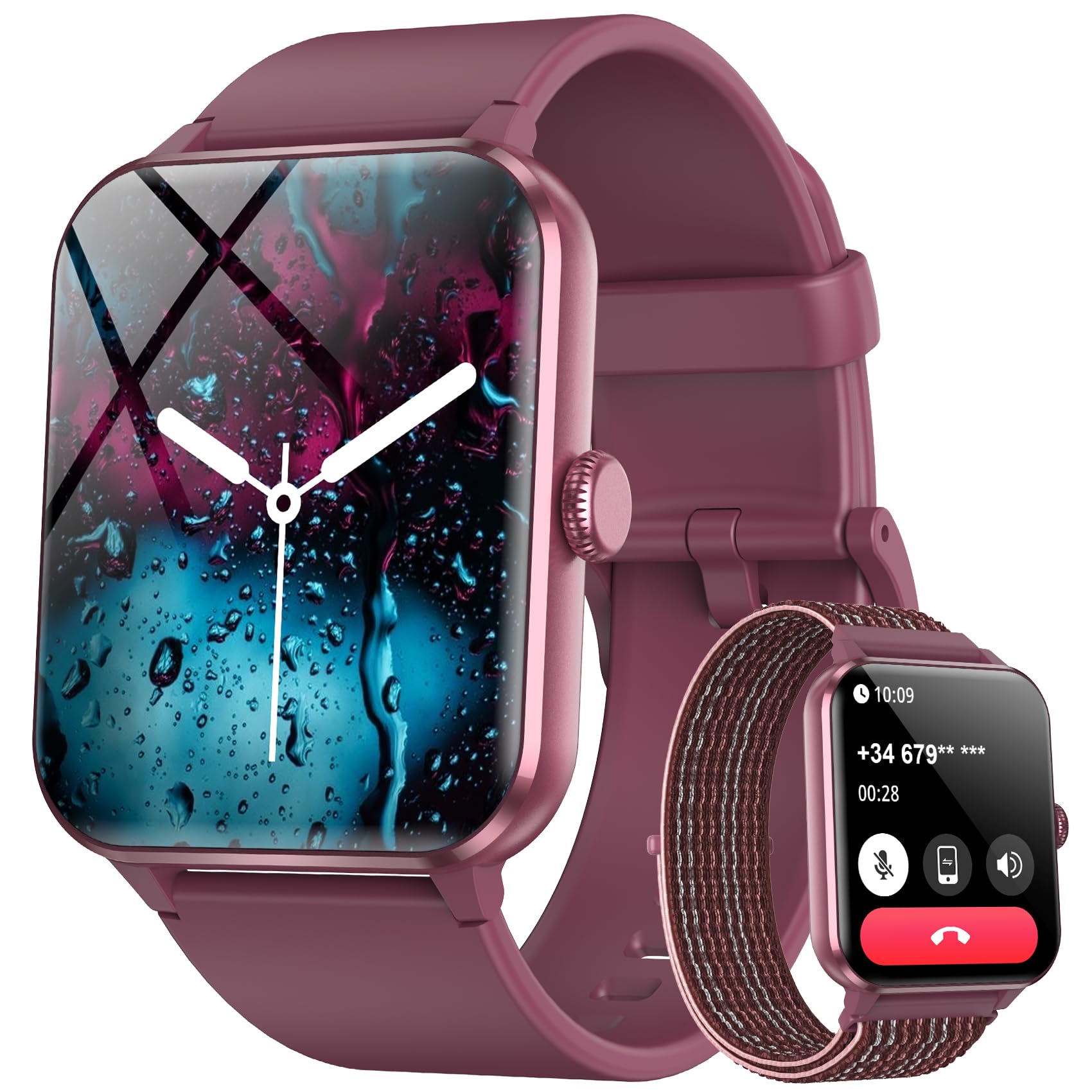 | Special Feature | Aluminum alloy case, 2Pack Watch Bands(Silicone+Nylon), Answer/Make calls/Quick Text Reply/AI Control, Notifications, IP68 Waterproof/100 Sports Modes/Heart Rate/SpO2/Stress/Sleep Monitor, weather, alarm, timer, stopwatch, calendar, calculator, games, menstrual cycle tracker, sedentary and drink water reminder, music control, remote control to take photos on your phone etc. See more |