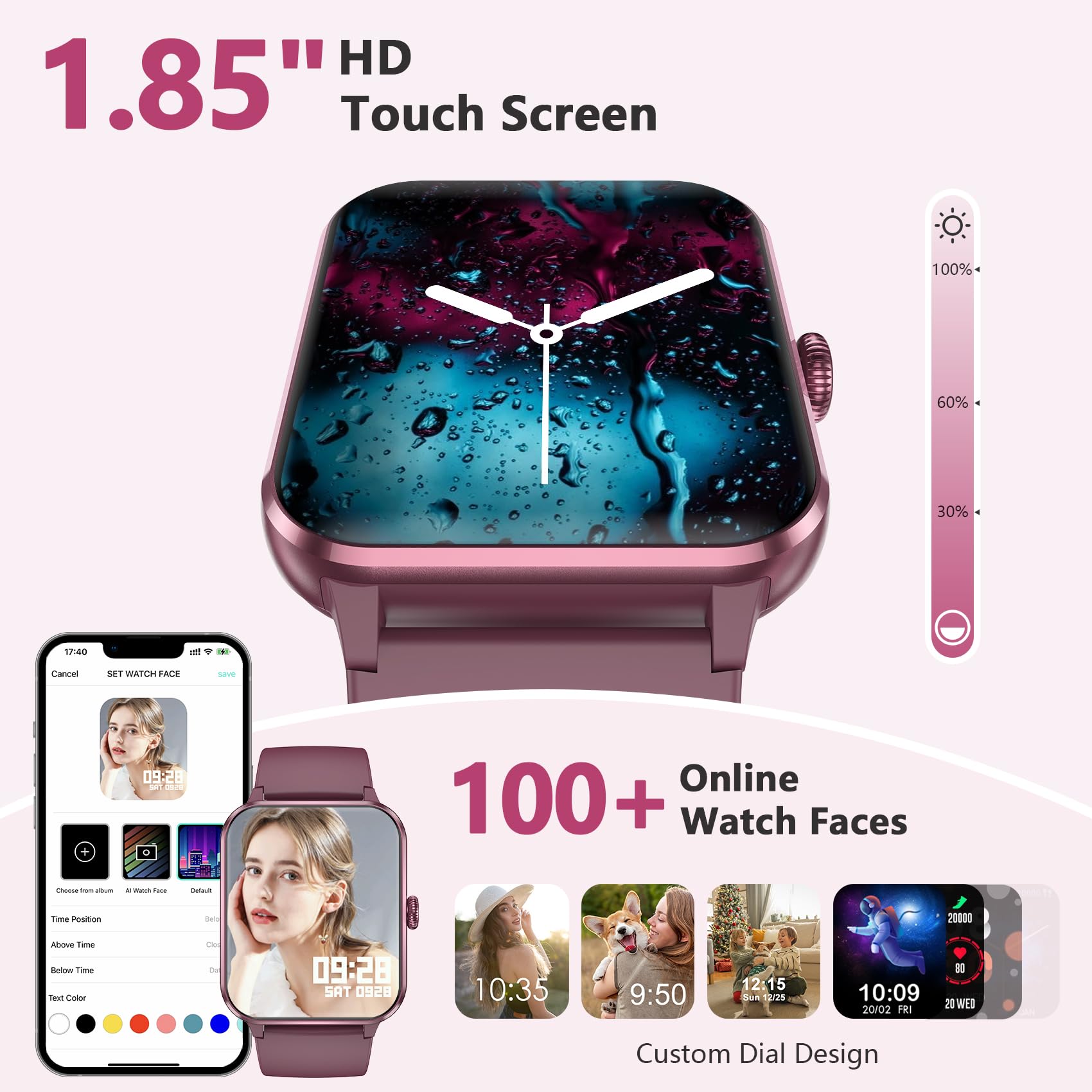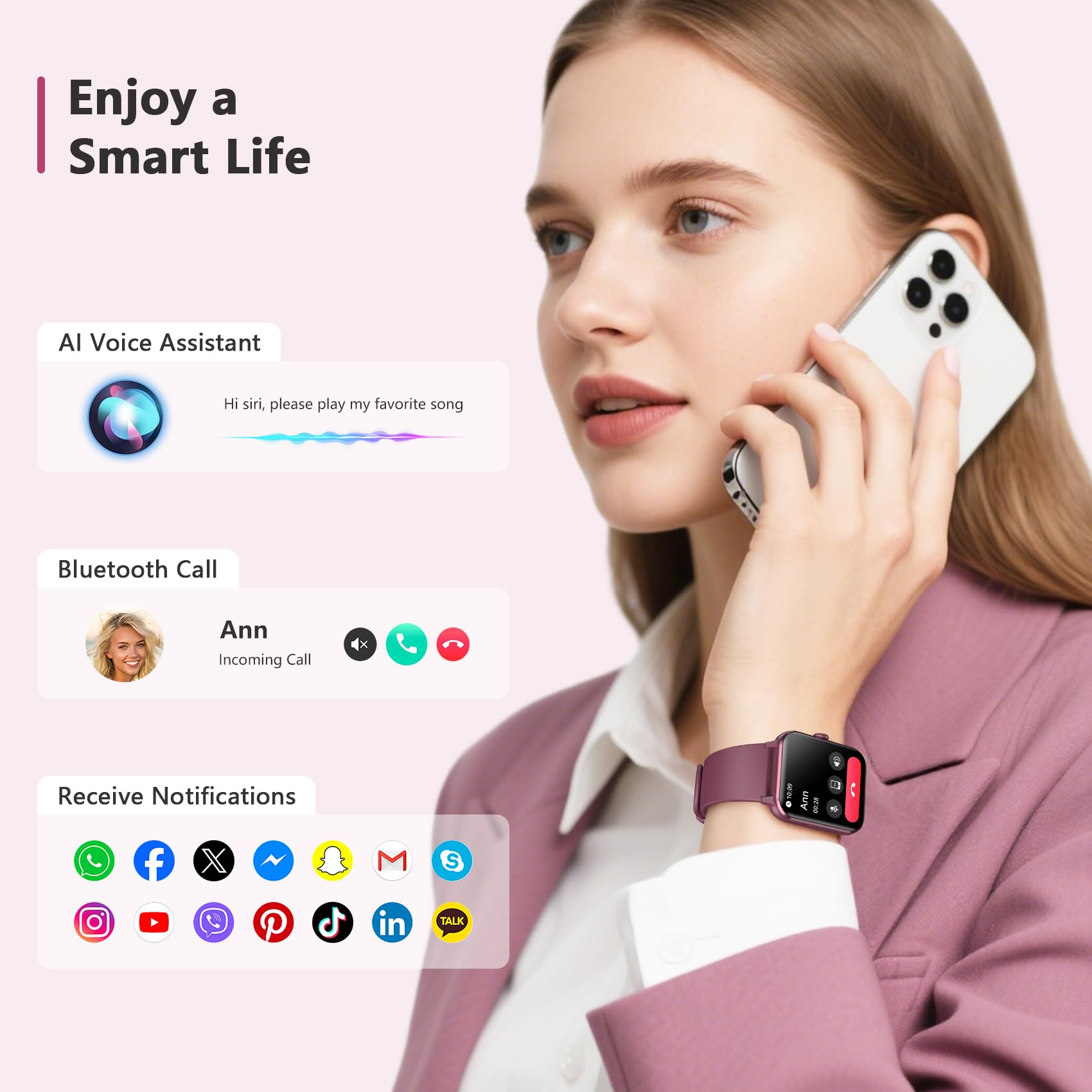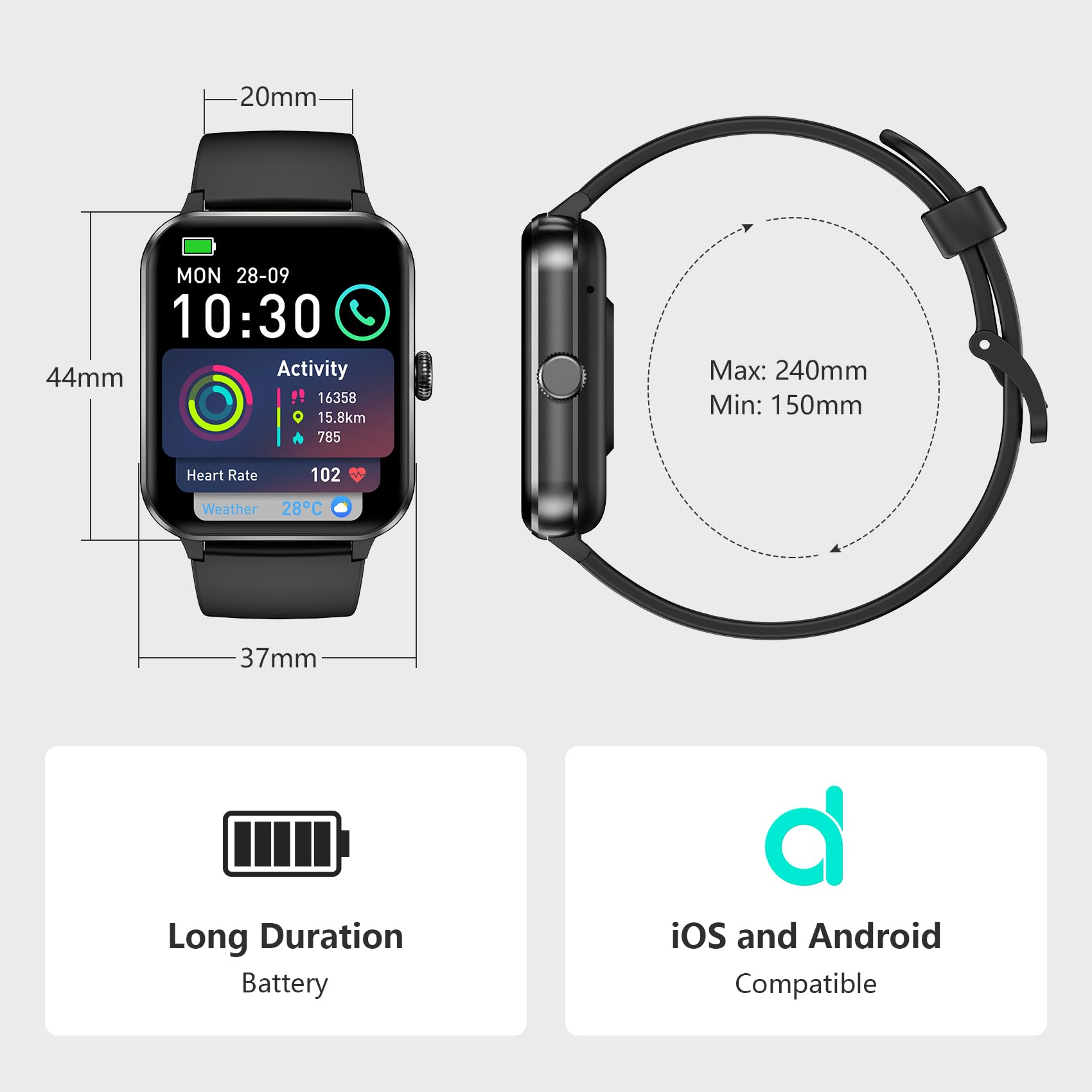 | Special Feature | Aluminum alloy case, 2Pack Watch Bands(Silicone+Nylon), Answer/Make calls/Quick Text Reply/AI Control, Notifications, IP68 Waterproof/100 Sports Modes/Heart Rate/SpO2/Stress/Sleep Monitor, weather, alarm, timer, stopwatch, calendar, calculator, games, menstrual cycle tracker, sedentary and drink water reminder, music control, remote control to take photos on your phone etc. See more |