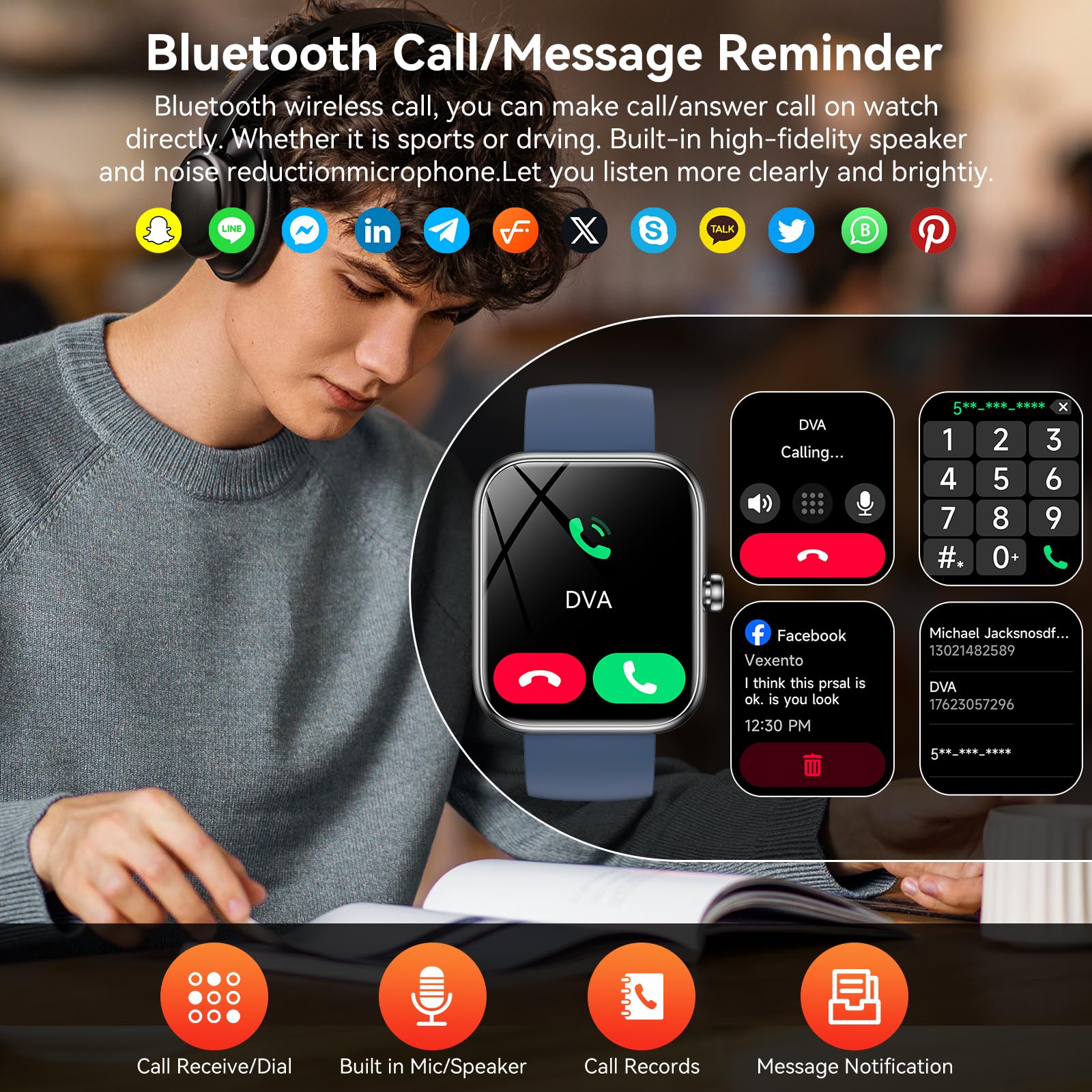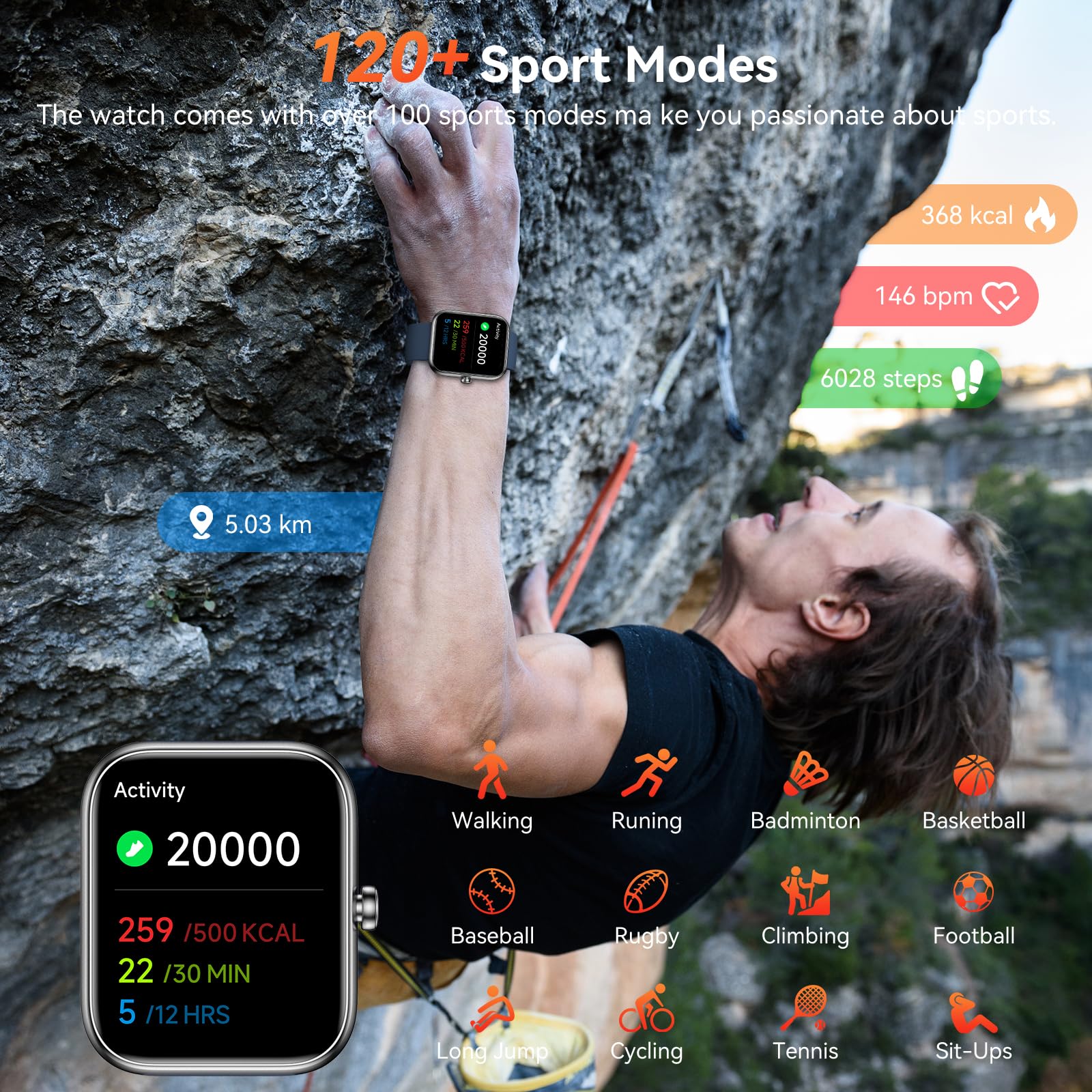 • Bluetooth Call & Messaging‌ Notification: Experience seamless Bluetooth 5.3 calling with HD speaker/mic on this smartwatch, receiving WhatsApp/Telegram/Facebook notifications on its 1.83" touchscreen. The auto-wake feature activates when lifting your wrist, reducing phone reliance (Note: Message replies not supported)
