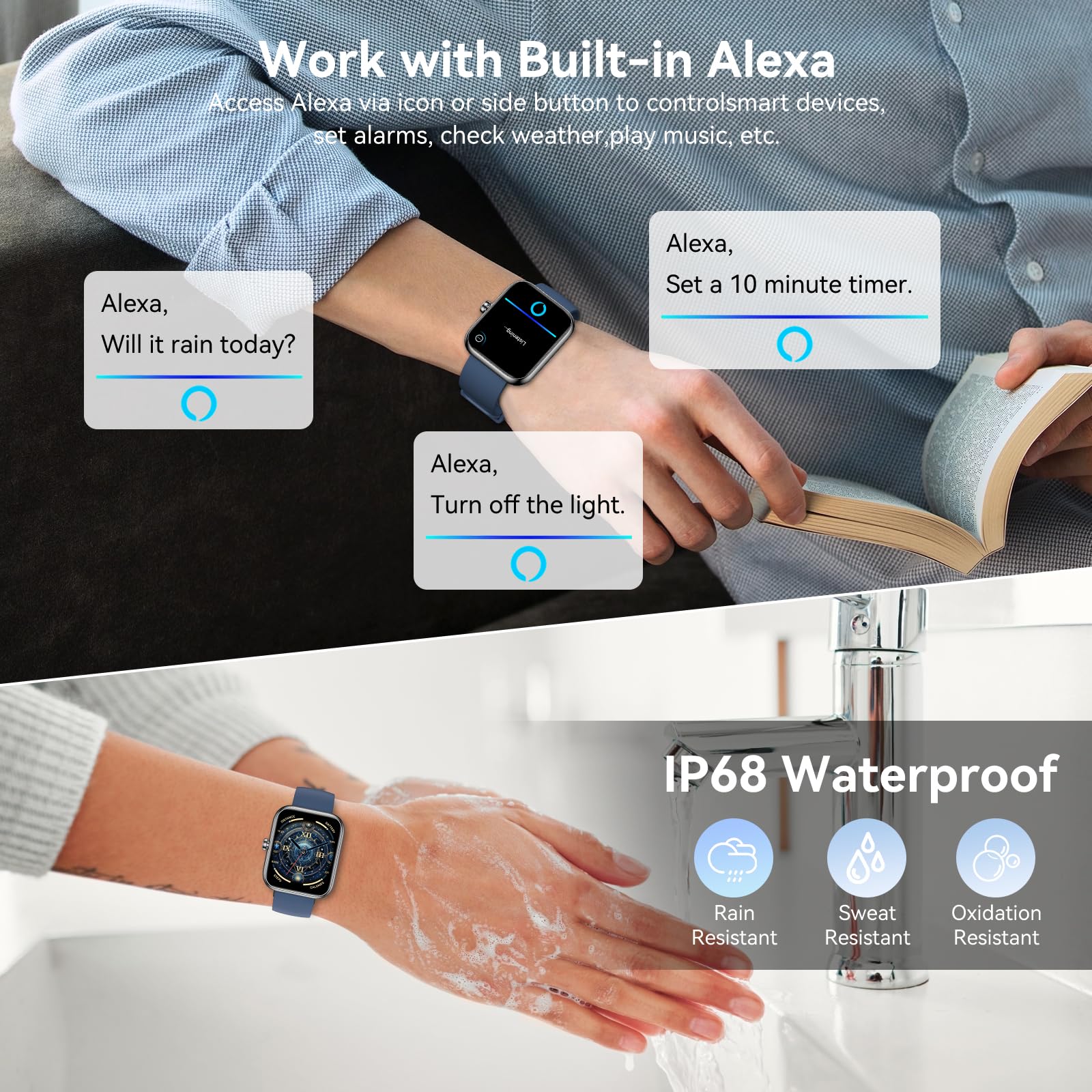 Smart Watch with Alexa Built-in, 1.83" HD Touchscreen Fitness Tracker, Bluetooth Notifications/Calls, IP68 Waterproof, 120+ Sport Modes, 24/7 Heart Rate & Sleep Monitor for iPhone Android iOS (Black)
