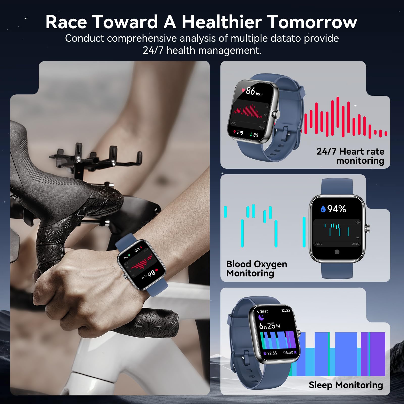 • Multi-functional Smartwatch: Fitness tracker is equipped with basic functions such as voice assistant, weather forecast, camera and music control, customized dials, with its multifunctionality, this watch makes your every day easier, and more productive