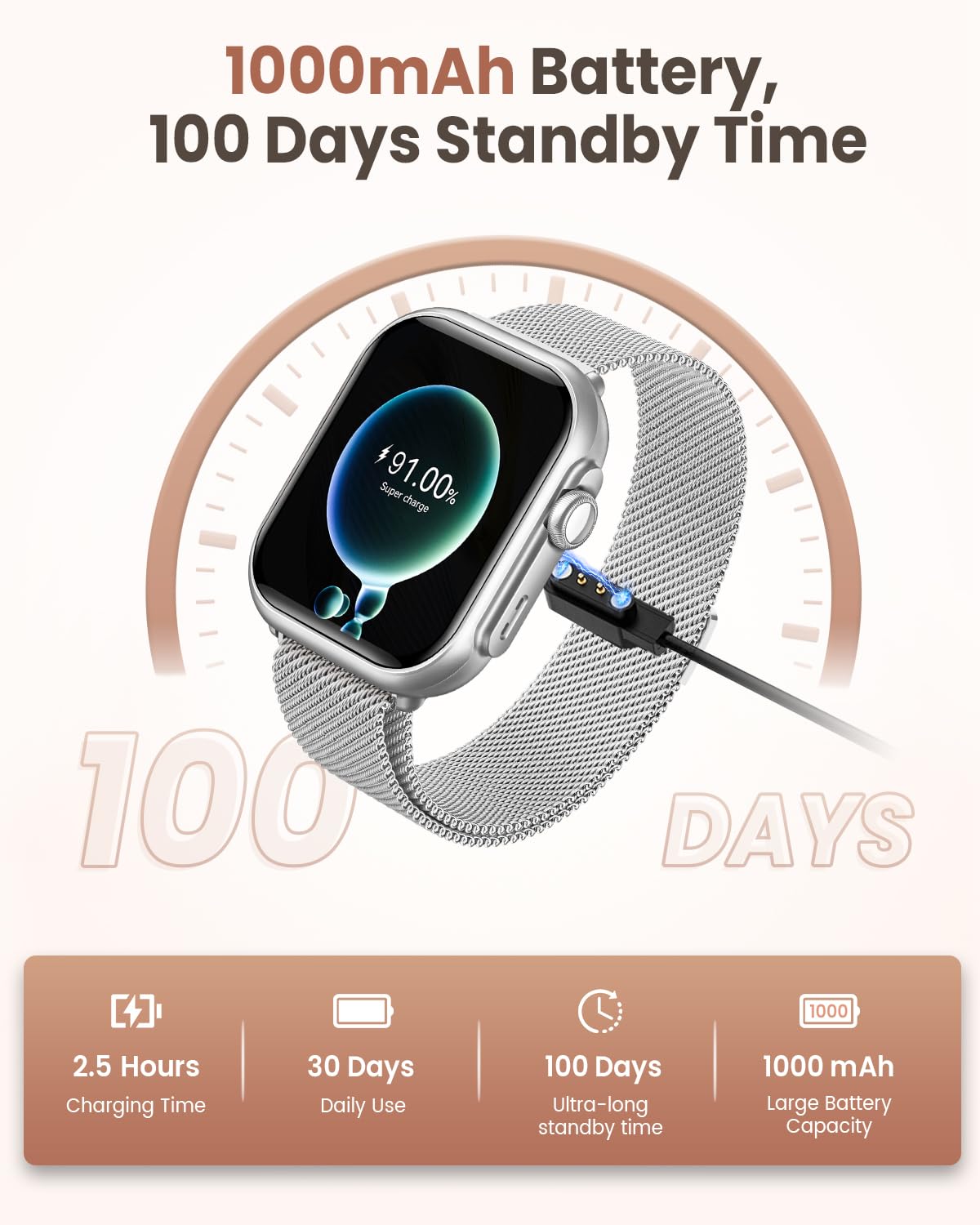 Smart Watches for Women (Android/iPhone), 1.83" HD Smart Watch with Calls/Messages/Notifications, Sleep/Heart Rate/SpO2/Blood Pressure Monitor, 110+ Sports Modes Fitness Tracker Watch, 1000mAh Battery