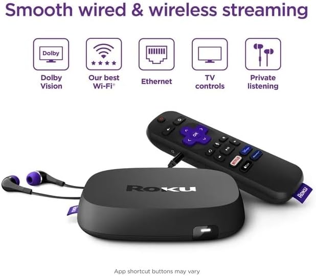 Product details With a lightning-fast interface and channels like Disney+, HBO Max, Apple TV+, Netflix, Sling, and Hulu that launch in a snap, this Roku player packs a ton of streaming power. Stunningly sharp 4K picture brings out the rich detail in your entertainment with 4x the resolution of HD and watch in awe as colors pop off your screen with lifelike clarity in spectacular Dolby Vision picture. A strong, steady Wi-Fi connection is important for streaming the highest picture quality, especially in rooms farther from your router. Power up your TV, adjust the volume, and control your Roku streaming device with the included Roku Voice Remote. Brand Roku Electronics Feature Built-in Voice Assistant Manufacturer Part Number Roku Ultra LT Streaming Assembled Product Weight 5.9 oz Native Resolution 3840 x 2160 Resolution 4K UHD Operating System Roku OS RAM Memory 2 GB Virtual Assistant Siri, Google Assistant Wireless Technology 802.11ac dual-band wireless, Wi-Fi Assembled Product Dimensions (L x W x H) 5.00 x 4.90 x 1.00 Inches