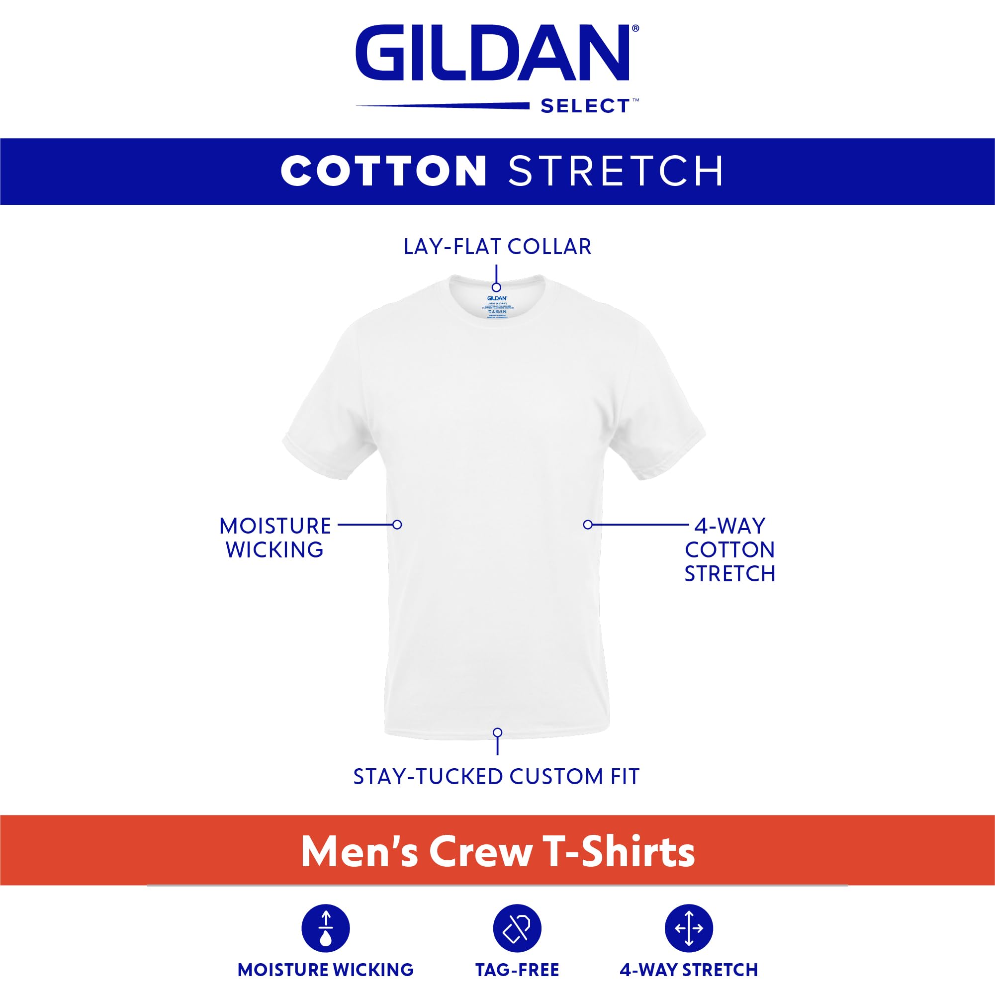 Knit with soft, breathable ring-spun Cotton and Spandex for a perfect stretch, these GILDAN Cotton Stretch Crew T-Shirts are engineered to move with you from day to night. Featuring moisture wicking technology and a classic silhouette that is fitted at the sleeves, these t-shirts are perfect for layering without the bulk or lounging.
