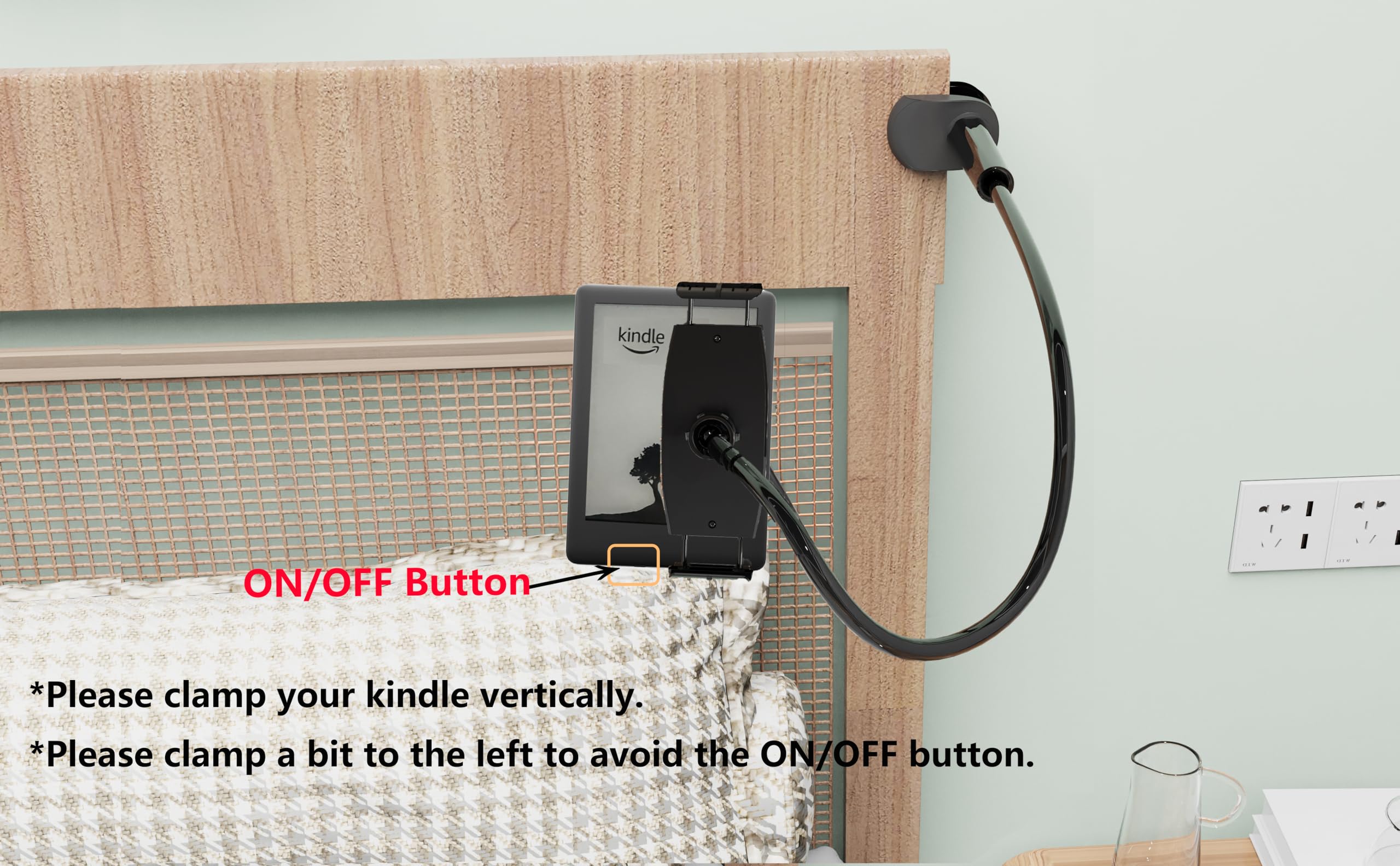 • ★ABOUT HOLDING KINDLE (OR OTHER SMALLER DEVICE) - Please clamp your kindle vertically. You can clamp the long side of the kindle so it will fit your device.
