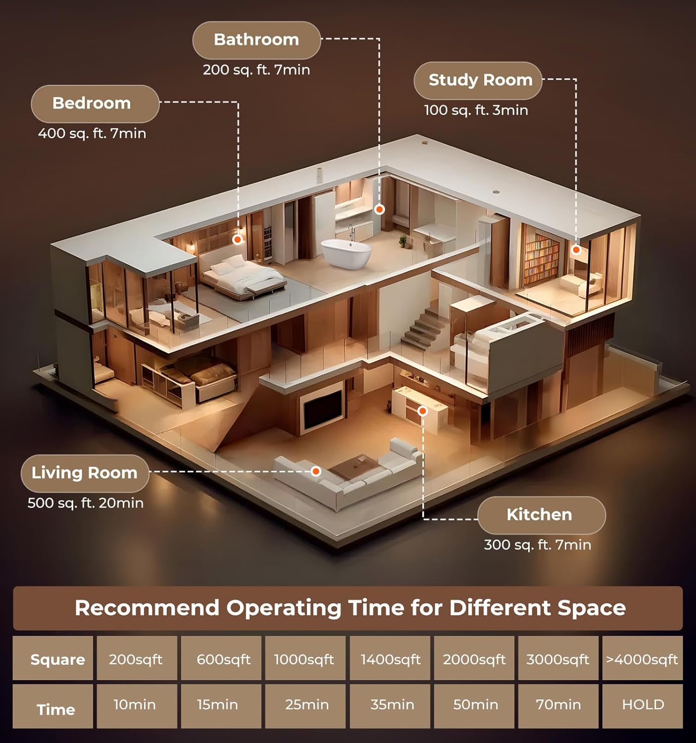 ใApplicationใOzone generators are highly suitable for various spaces, such as cars, boats, dumpsters, kitchens, bathrooms, basements, and so on. Please note that the machine needs to be used in an enclosed space and people, animals, and plants must be kept away when the machine is working