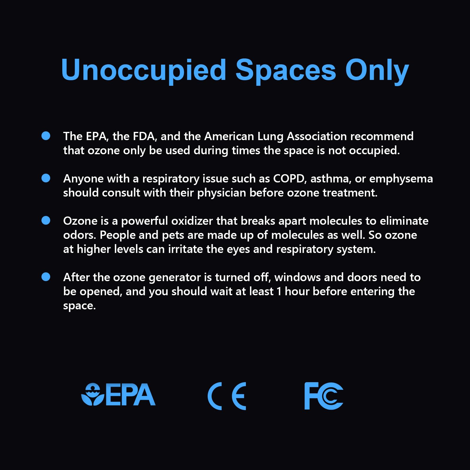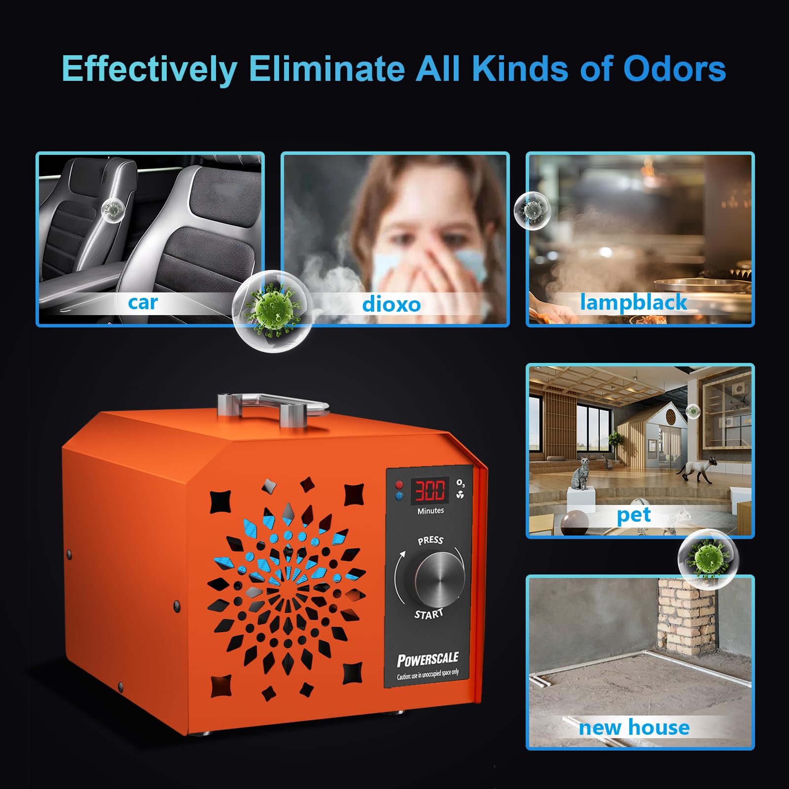 Versatile Application: The ozone odor eliminator is perfect for a wide range of spaces, including homes, offices, large commercial areas, boats, pet zones, basements, and even your car. This ozone machine provides a reliable solution for improving air quality