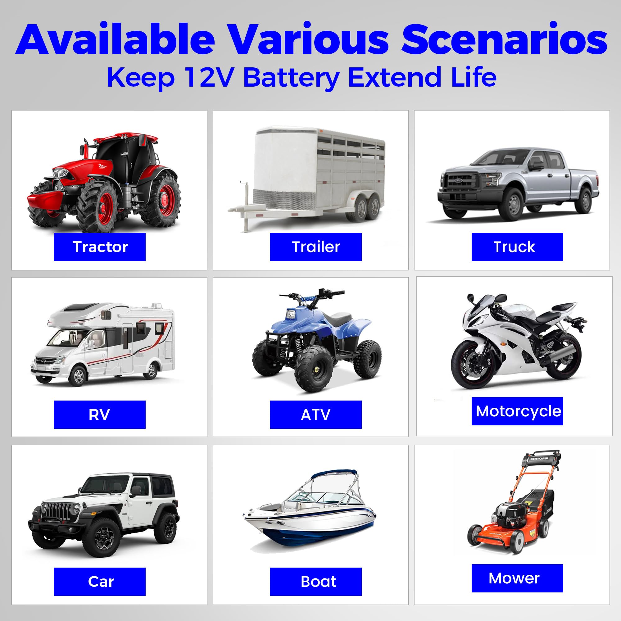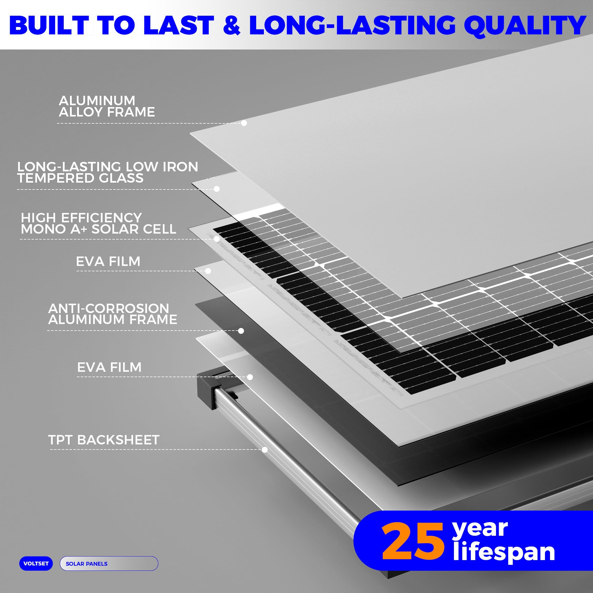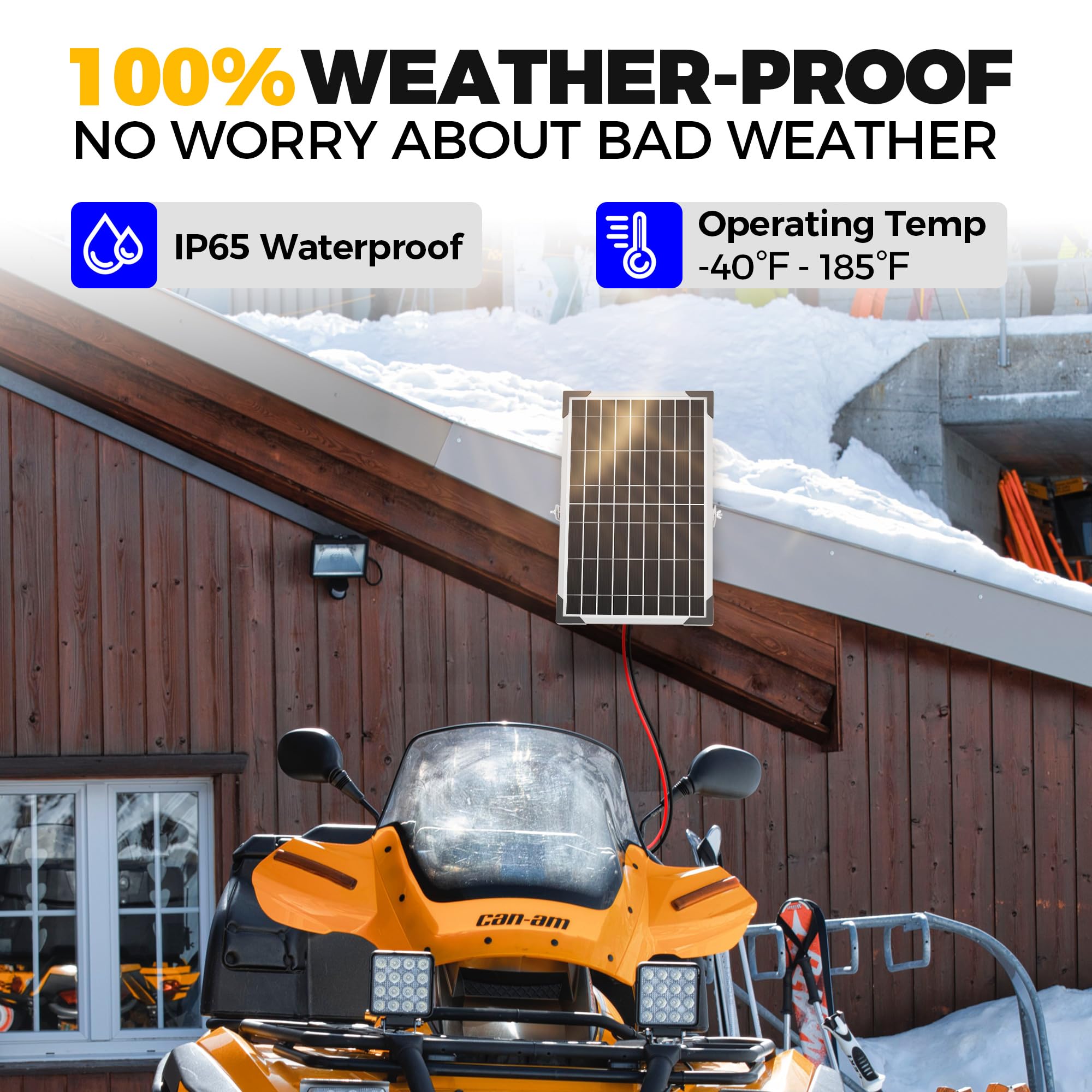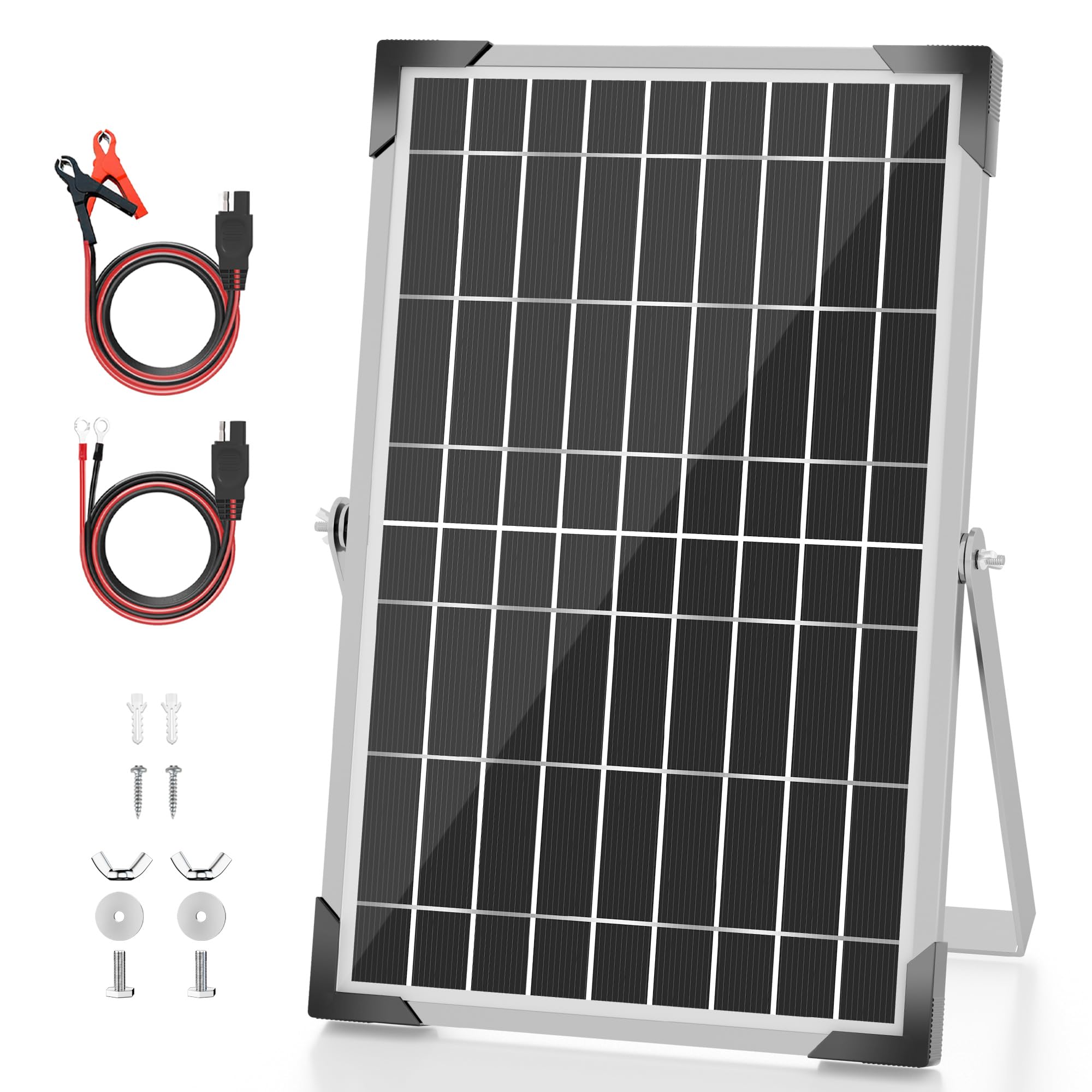 Quality Assurance: VOLTSET offers 24/7 professional customer service and a 12-month warranty. The package includes 1 solar panel; 1 charging controller; 1 mounting bracket; 1 set of alligator clips; and 1 set of O-rings with installation screws
