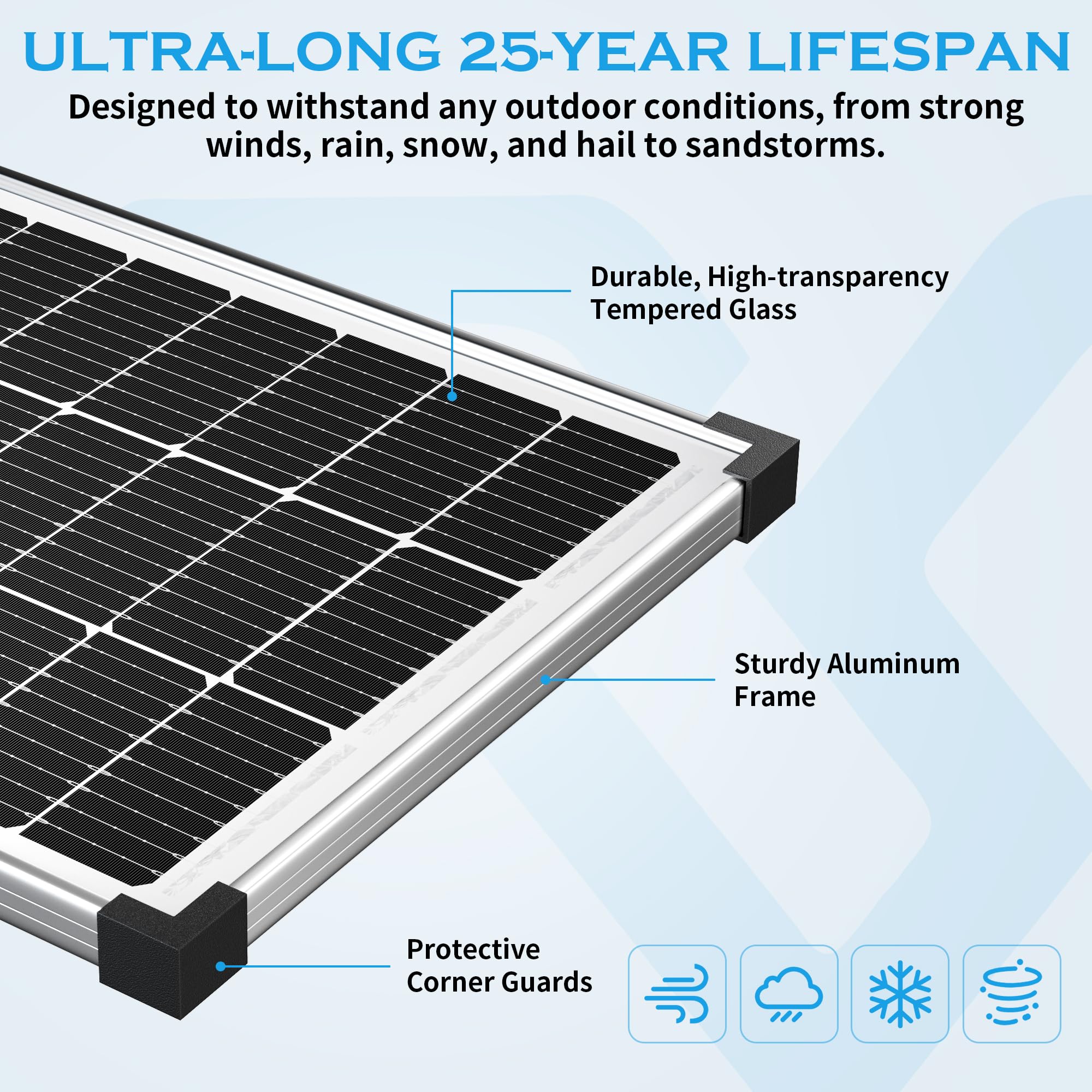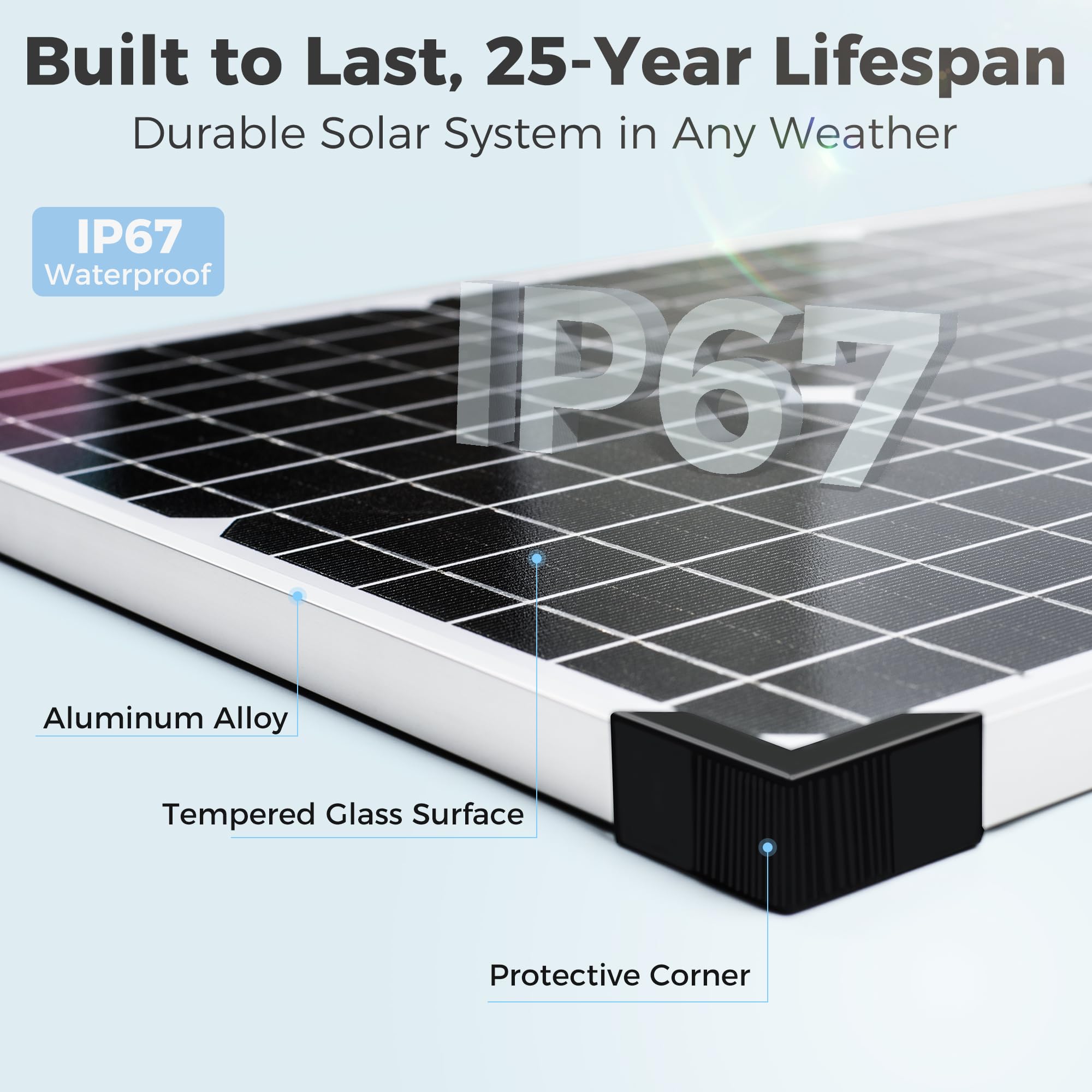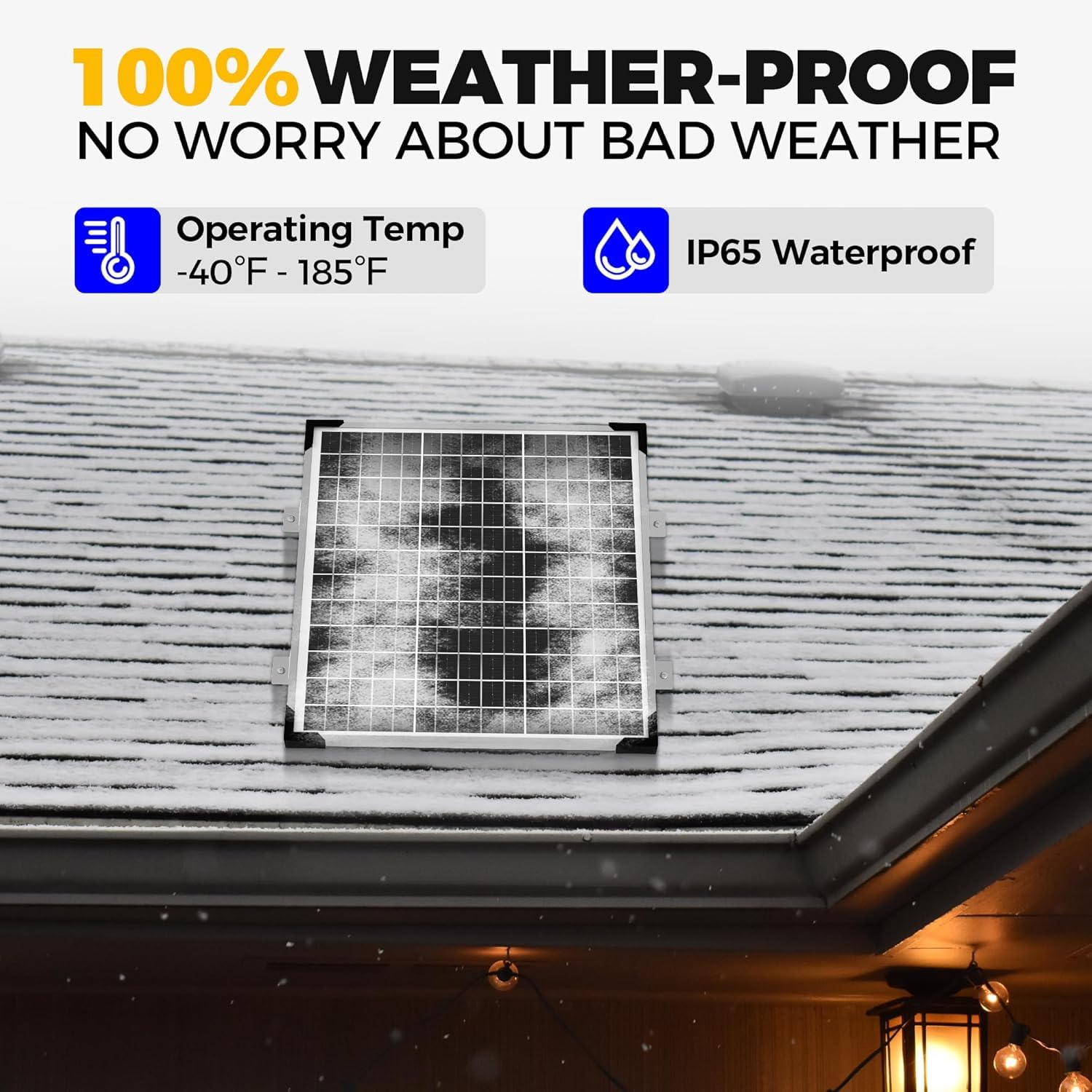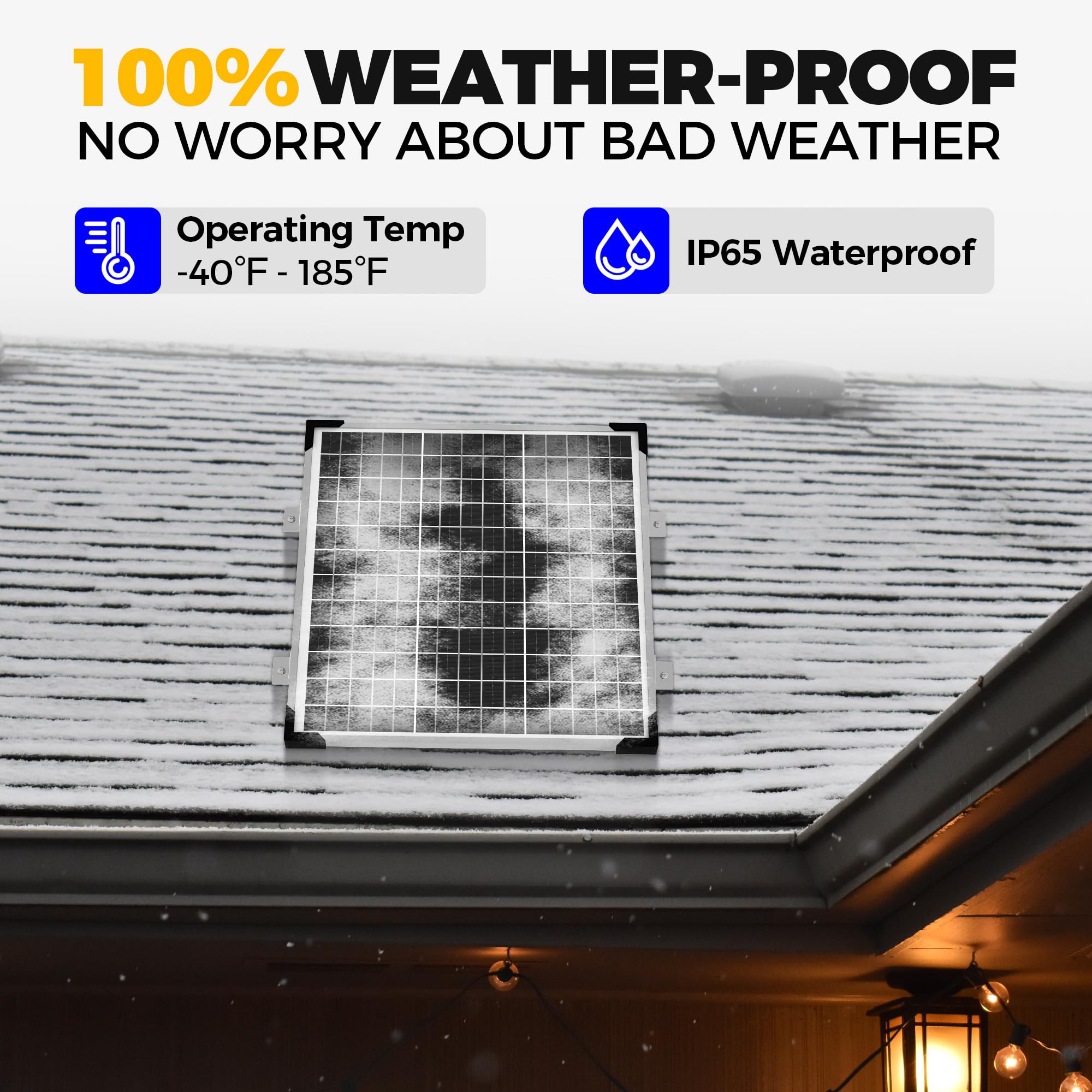 Sun Tracking Flexibility: Our 12V monocrystalline solar panel+ 360° adjustable aluminum bracket allows for precise angle optimization to maximize sunlight absorption throughout the year, The bracket can be rotated ±15° to follow the sun, increasing the average daily sunlight absorption by 12%