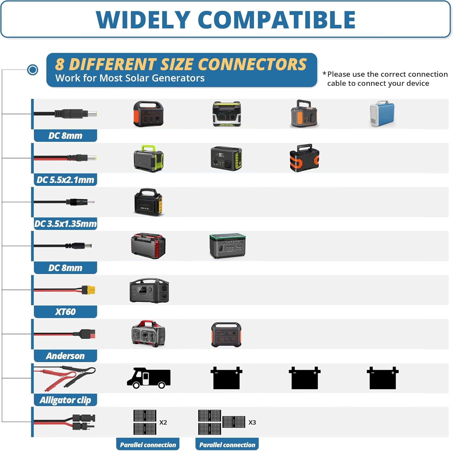 Versatile Applications: Solar panel kit includes alligator clips and O-rings, convenient for plug and play. Collapsible design reduces storage volume by 20%. Suitable for cars, RVs, boats, motorcycles, trailers, camping, garden lighting, surveillance systems, outdoor activities and other scenarios to meet your diverse needs