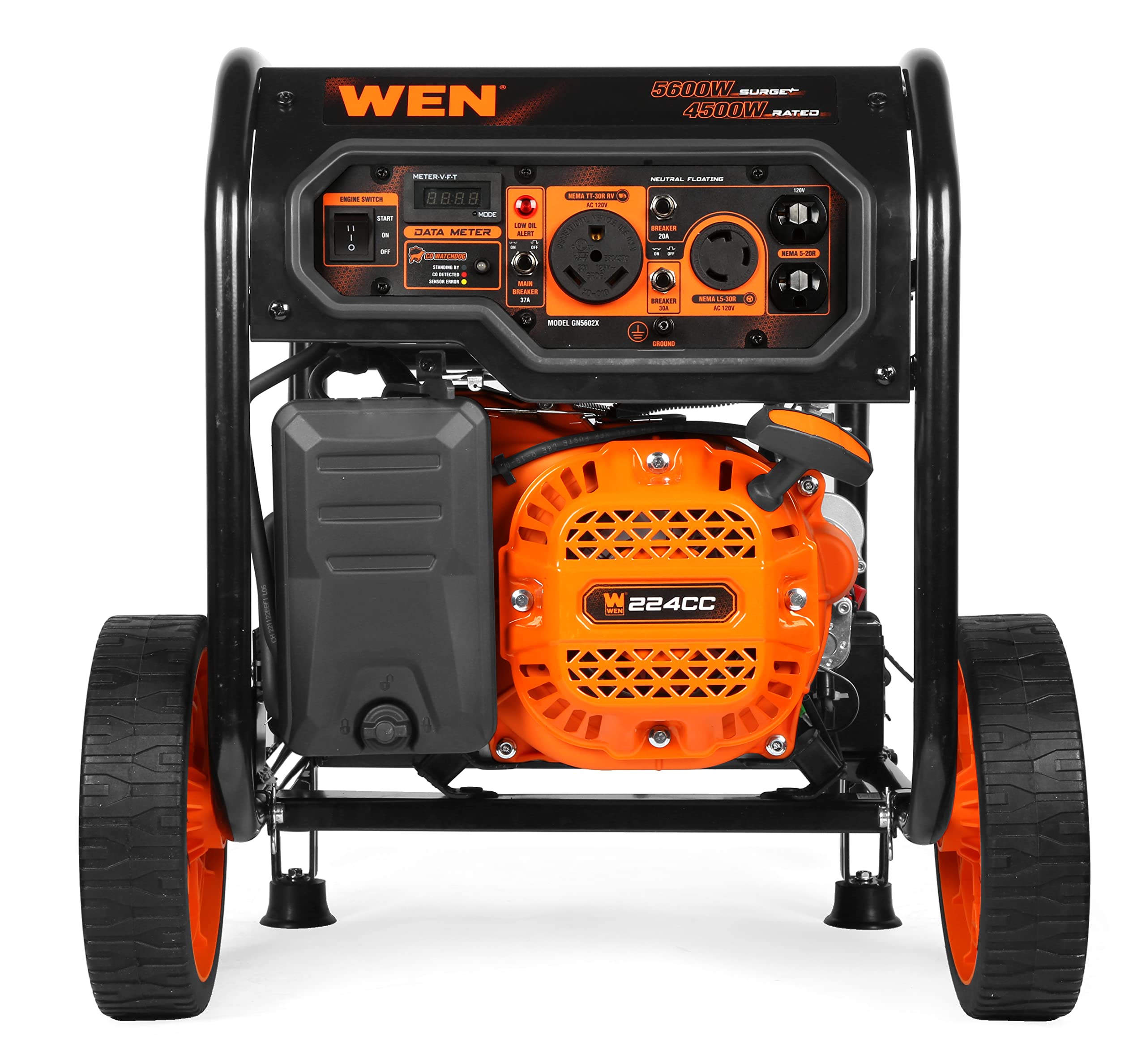 Remember when you kept the lights on? Whether we're providing your home electricity during a crisis or charging your family's cellphones at the campgrounds, WEN has been reliably lighting up lives since 1951. With 5600 starting watts and 4500 running watts, the WEN RV and Transfer-Switch-Ready Electric Start Portable Generator is durable enough for the jobsite and compact enough for easy transport. Run your lights, TV, refrigerator, sump pump, heating, air conditioning, microwaves, power tools, and other essentials with ease. Electric start provides quick ignition with a backup recoil starter if needed. The fully packed panel comes equipped with one RV-ready 30-amp TT-30R outlet, one transfer-switch-ready 30-amp 120V L5-30R outlet, and two standard 120V 20-amp 5-20R outlets. The WEN Watchdog CO Shutdown Sensor helps protect both you and your family by automatically turning off the generator if dangerous levels of carbon monoxide are detected. The wheel and handle kit makes transportation easier than ever while the 4.3-gallon gas tank provides up to 12.5 hours of half-load run time. The onboard data meter digitally displays voltage, frequency, total runtime, and session runtime. And because it’s a WEN product, your generator comes backed by a nationwide network of skilled service technicians, a friendly customer support phone line, and a three-year limited warranty. Remember when you didn’t have to worry about the power going out? Remember WEN.