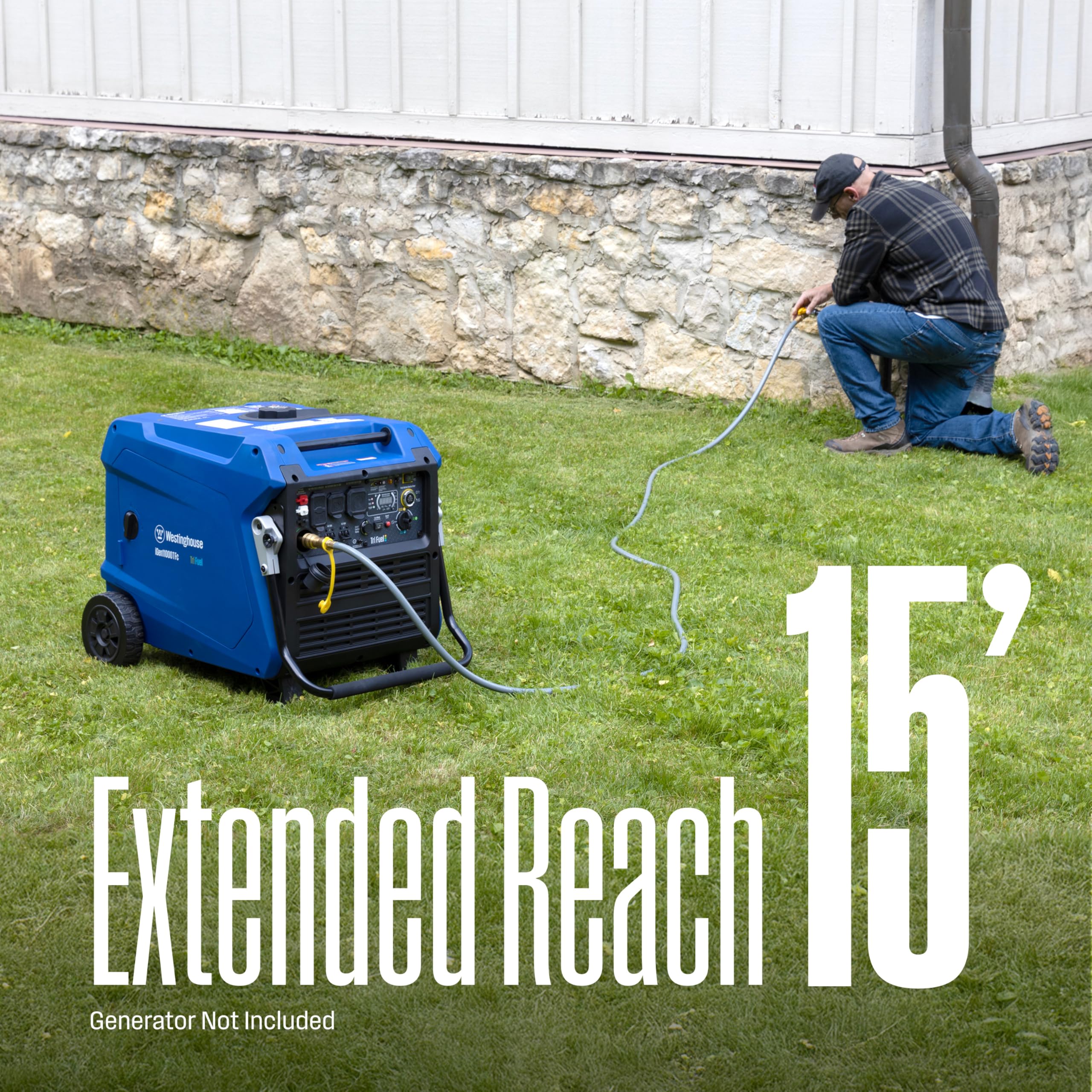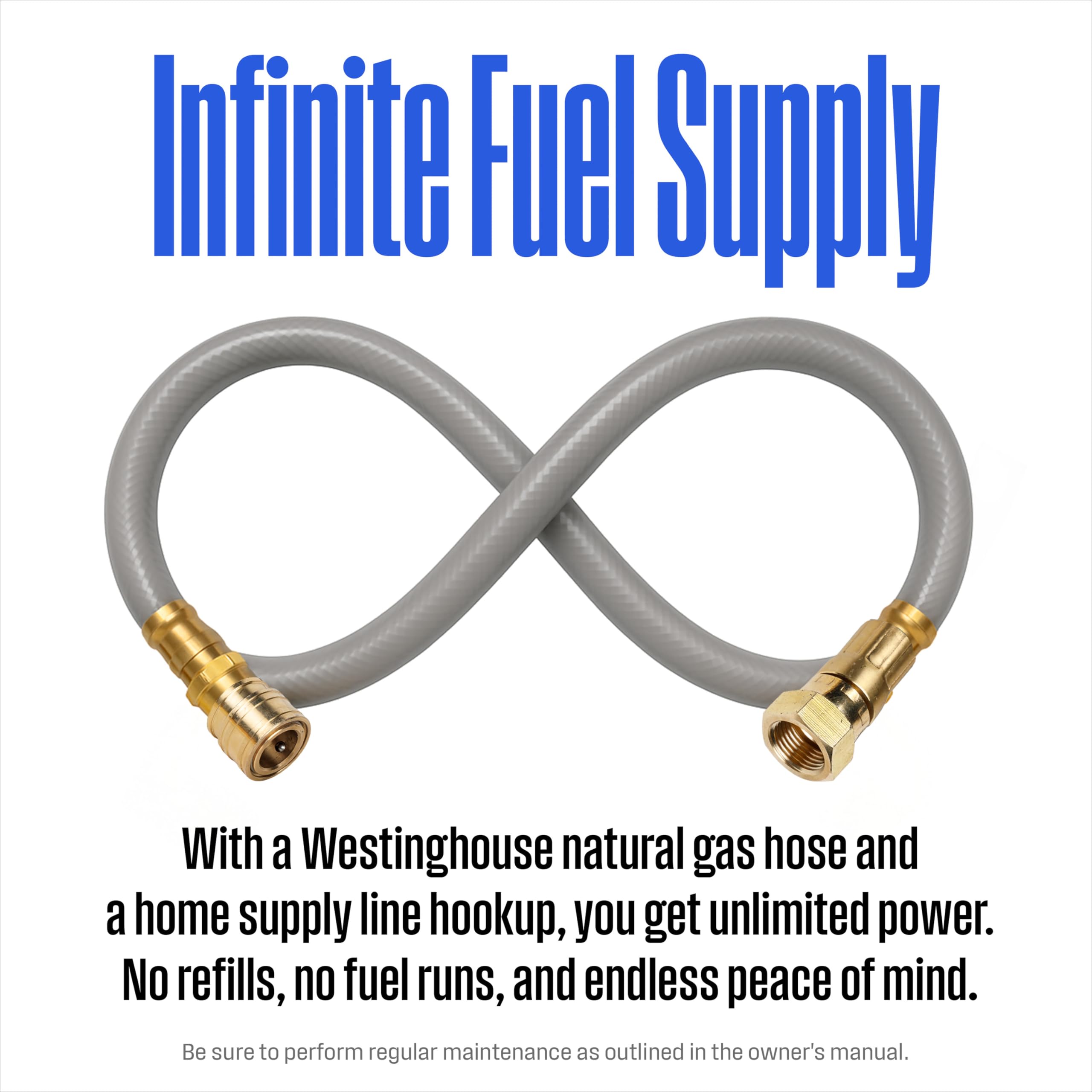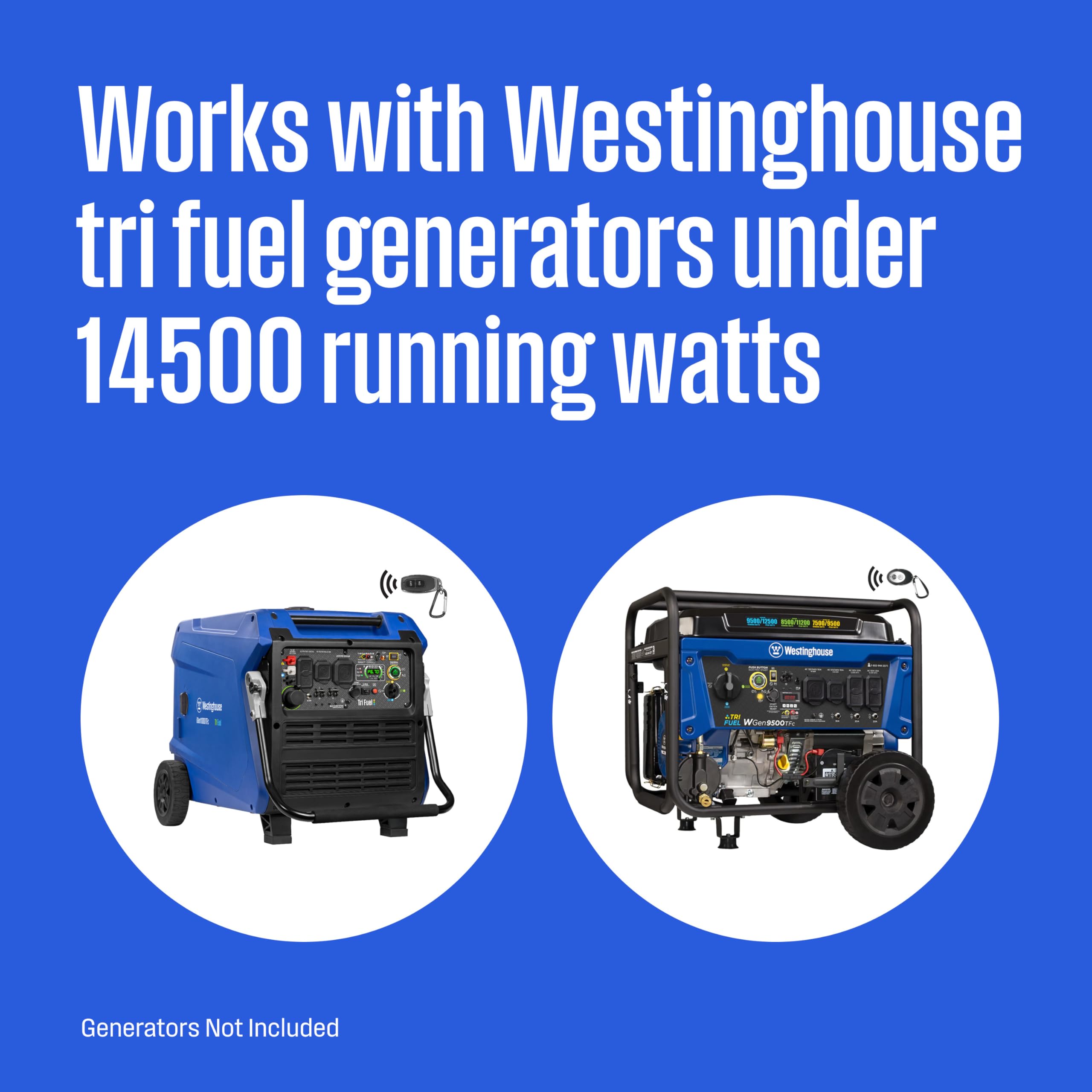 The Westinghouse WGen10500TFc Tri-Fuel Portable Generator with CO Sensor produces up to 13,500 peak watts and 10,500 running watts, the WGen10500TFc is a tri fuel generator that operates on gasoline, propane (LPG), or natural gas. The heavy duty 500cc 4-Stroke OHV Westinghouse Engine is constructed of a durable cast iron sleeve and runs for up to 19 hours on a 9.5 gallon (36 L) gas tank, keeping you powered through the day with built-in fuel gauge, automatic low oil shutdown and GFCI outlets. Push-Button Electric Start makes starting the WGen10500TFc effortless while the remote start key fob offers ease from a distance. Its intuitive control panel features the Transfer Switch and Interlock Kit ready L14-30R 30A and larger 14-50R 50A to power your major appliances like the air conditioner, refrigerator, and sump pump as well as any lights or entertainment centers all at the same time with a single cord hookup. VFT Data Center displays volt output, frequency, and lifetime hours to keep you up to date with real-time information and regular maintenance. Conveniently portable with included heavy duty never-flat wheels, handle and lift bracket, it'll have your house, travel trailer or jobsite powered in seconds. The WGen10500TFc is complete with a 3-Year Limited Warranty and Lifetime Technical Support backed by our nationwide customer service and support network.