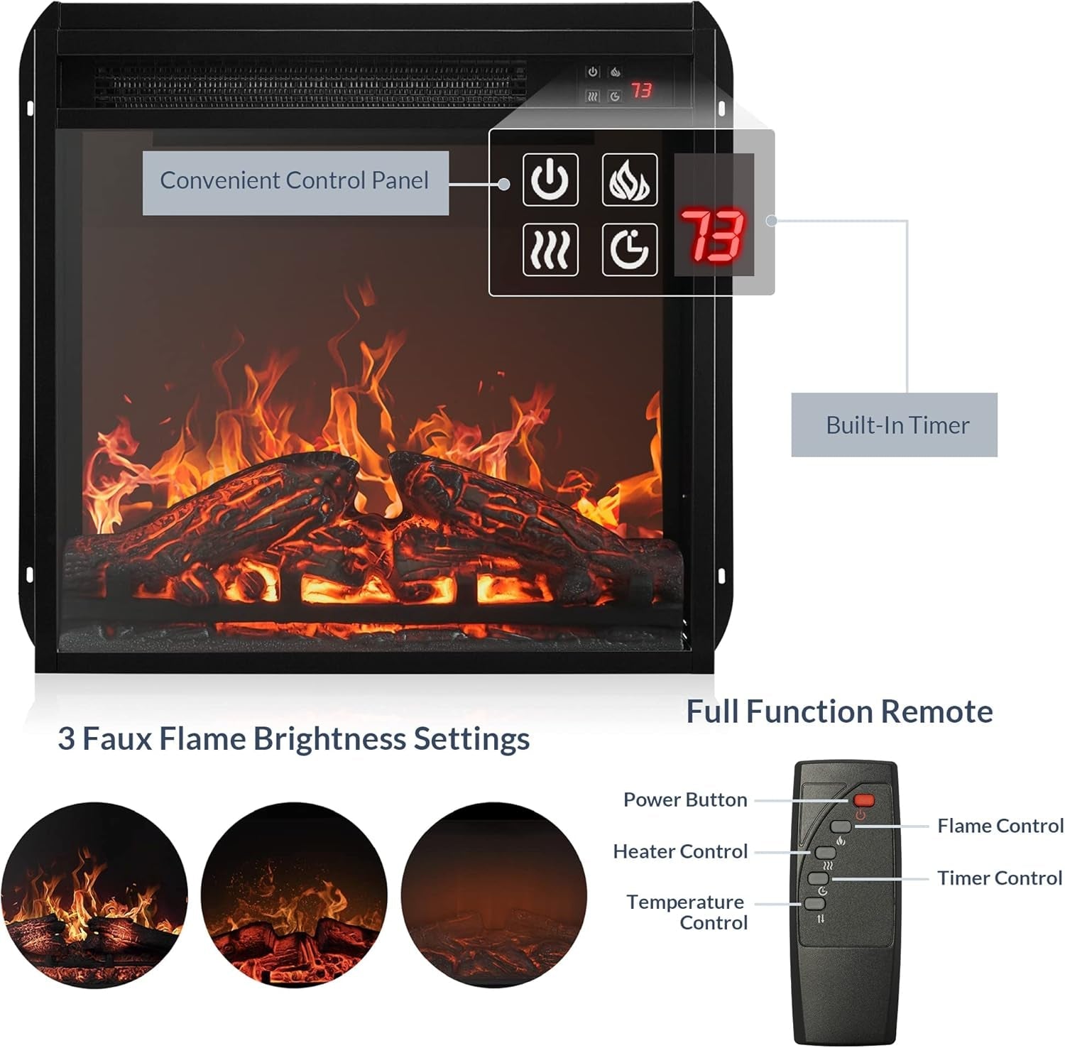 • Electric Fireplace: The 18" electric fireplace provides cozy warmth for up to 400 square feet, allowing you to enjoy a comfortable atmosphere without smoke or ash.