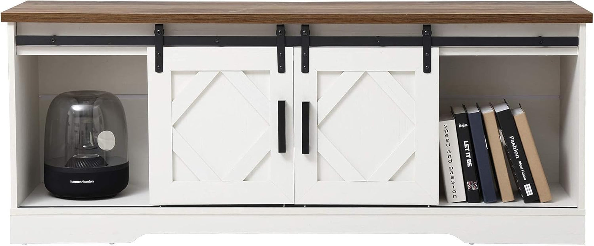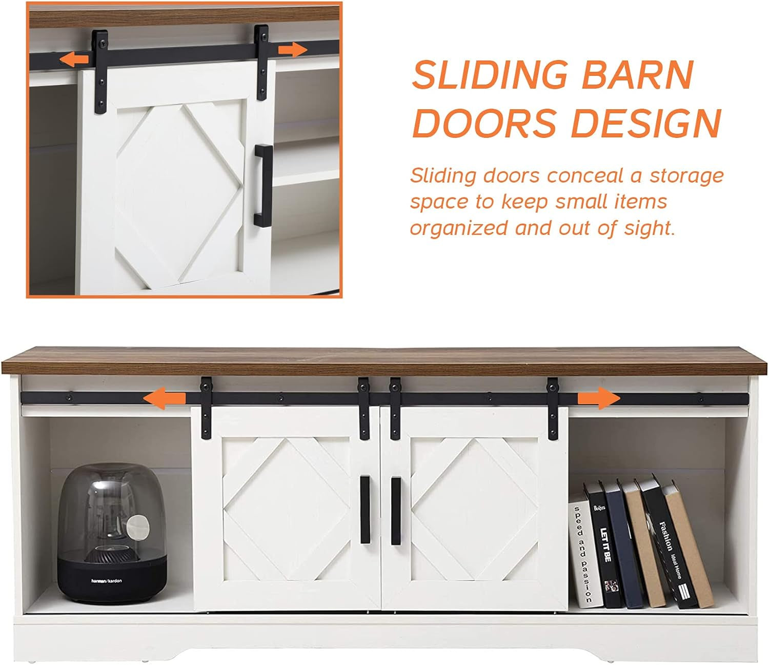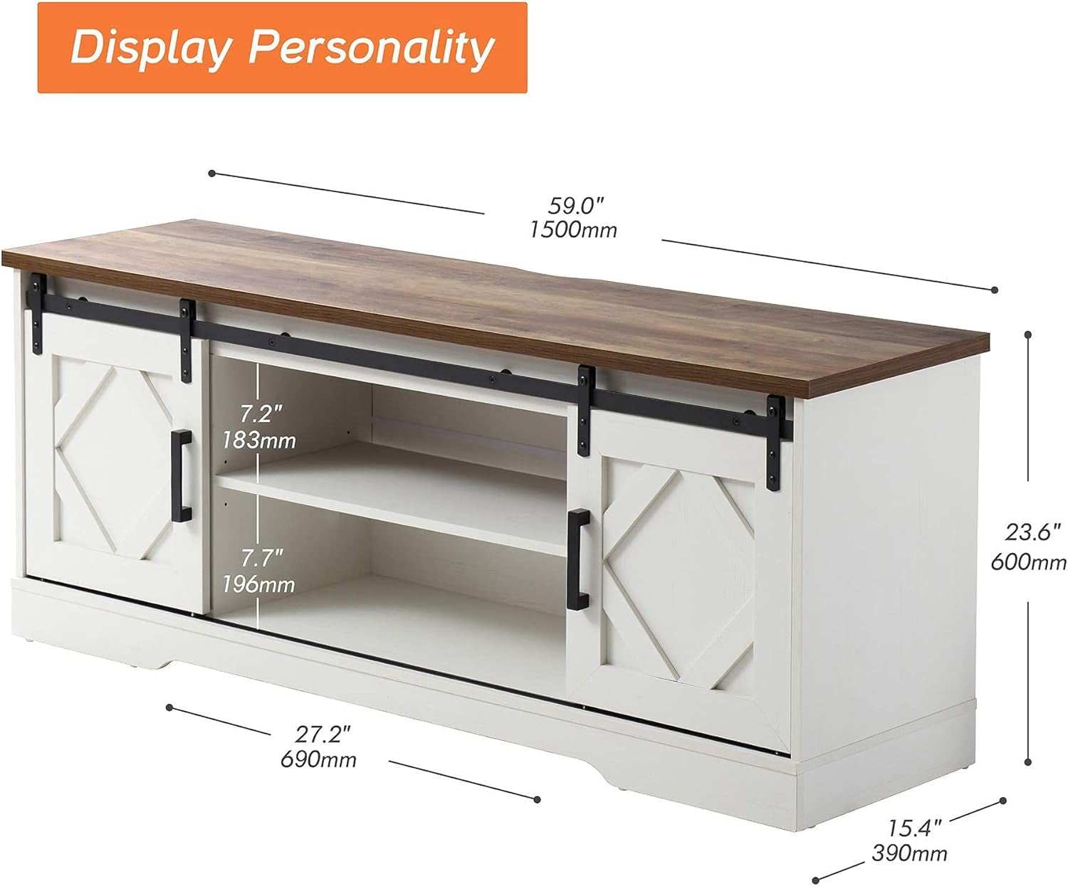 With dimensions of 59"L x 15.4"W x 23.6"H, this TV stand supports TVs ranging from 40 to 65 inches, making it the perfect addition to any living room. Transform your space into a stylish and functional area with this beautiful Sliding Barn Door TV Stand.