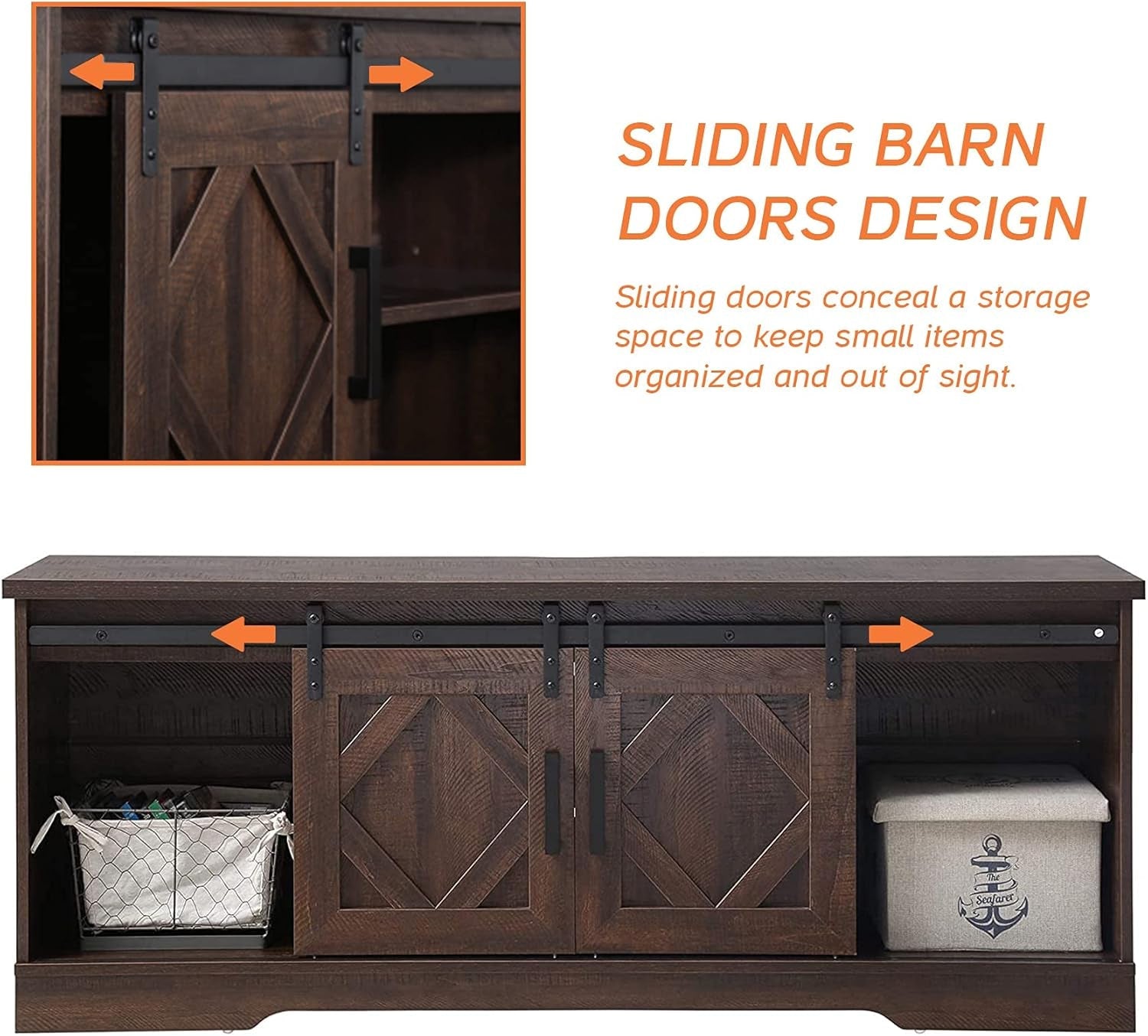 • Farmhouse Barn-Door Design: Crafted from high-quality wood grain, featuring sliding barn doors for easy access to your media.