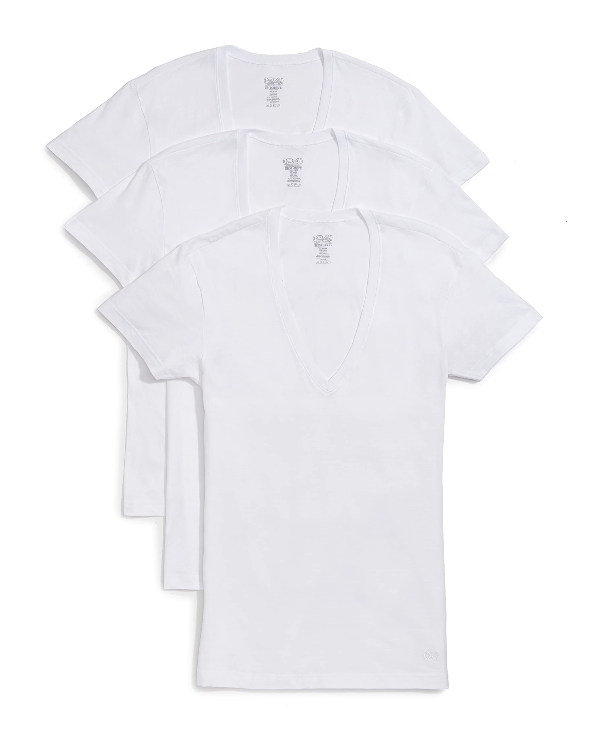 Keep it simple with a timeless V-neck tee rendered in ultra soft cotton. It's designed to fit close to the body for a more contemporary shape. 2(X)IST Men's Essential Cotton Slim Fit Deep V-Neck T-Shirt featuring a slim, modern fit with a deep V-neckline and short sleeves. Our Essential Cotton is soft, durable, and made only of natural fibers making this a classic that has been trusted to provide all-day comfort. Because it's 100% cotton, the material will naturally stretch, but one quick wash-n-dry and it will reform its shape. Essential Cotton Slim Fit Deep V-Neck Tee in a convenient 3-Pack.