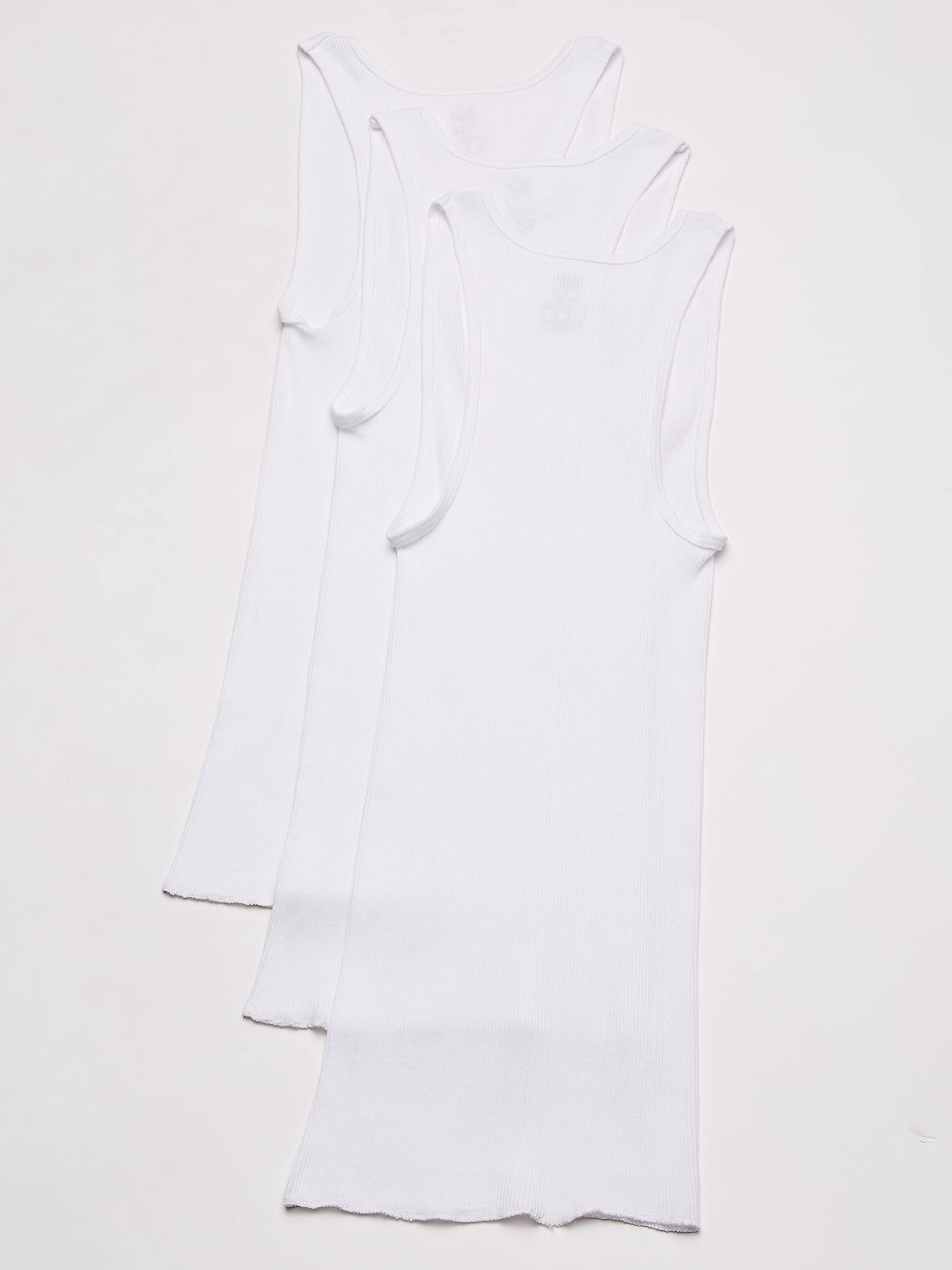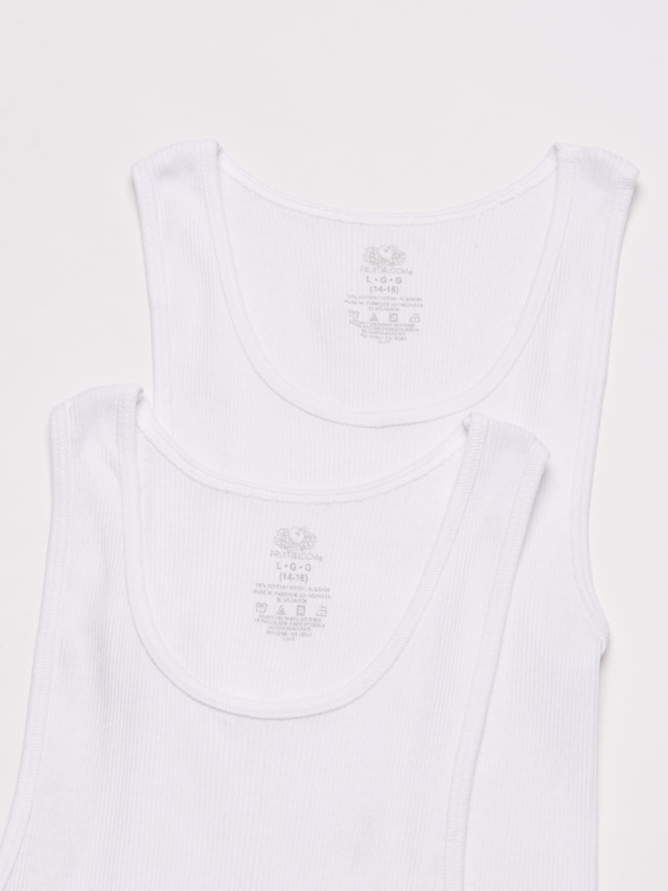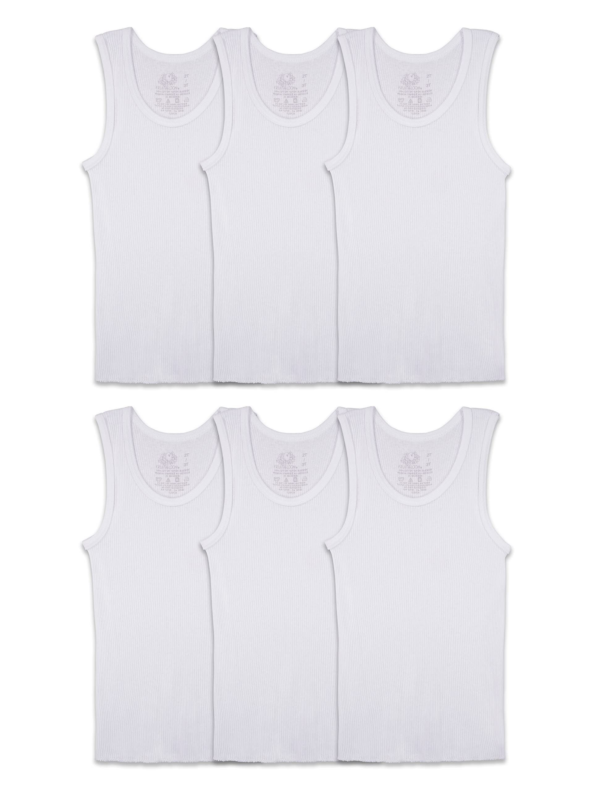 Add style and comfort to your little one's wardrobe with these Fruit of the Loom Tank Undershirts. Designed with a flexible fit, they are made of a soft, rib knit fabric that is wonderful for layering. Each cotton a-shirt is made tag free and offers a flexible fit. Our sleeveless tanks provide a cooler, more comfortable alternative for an undershirt in warmer weather.