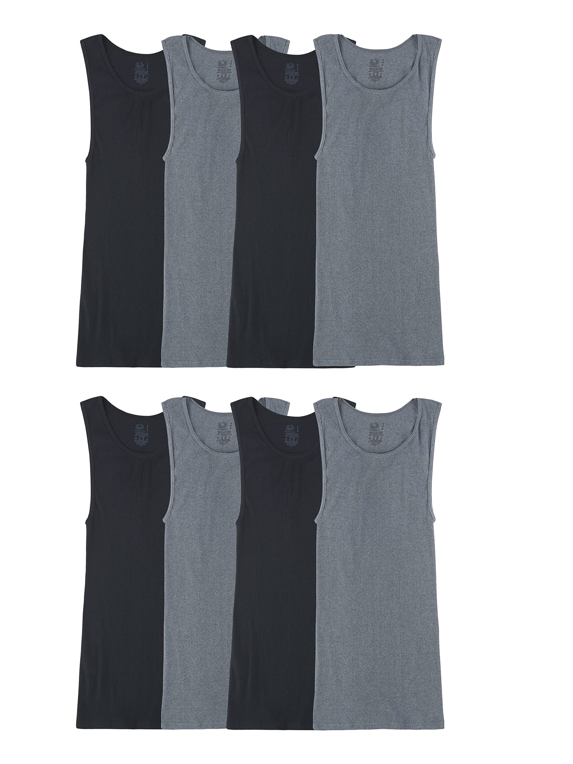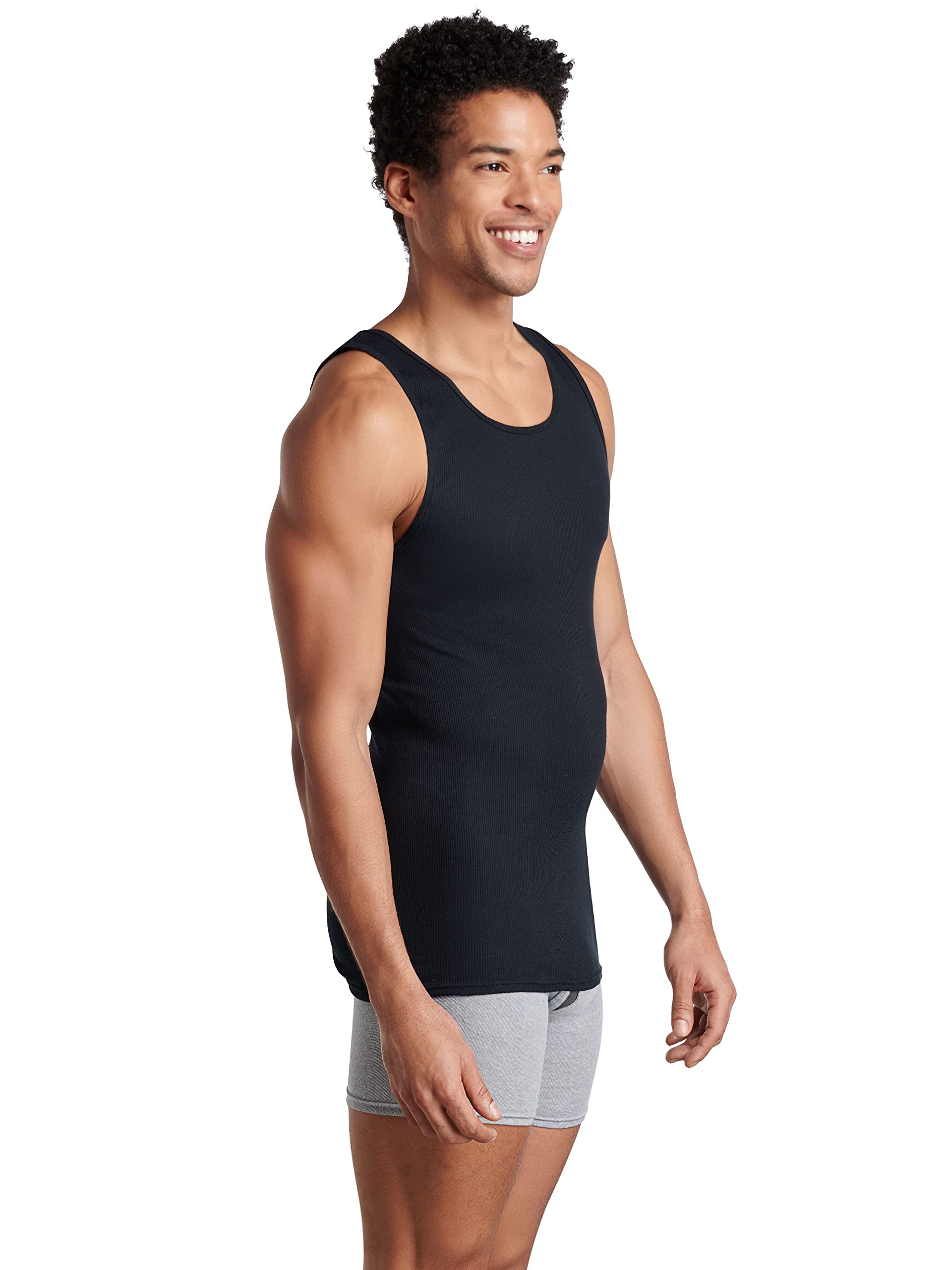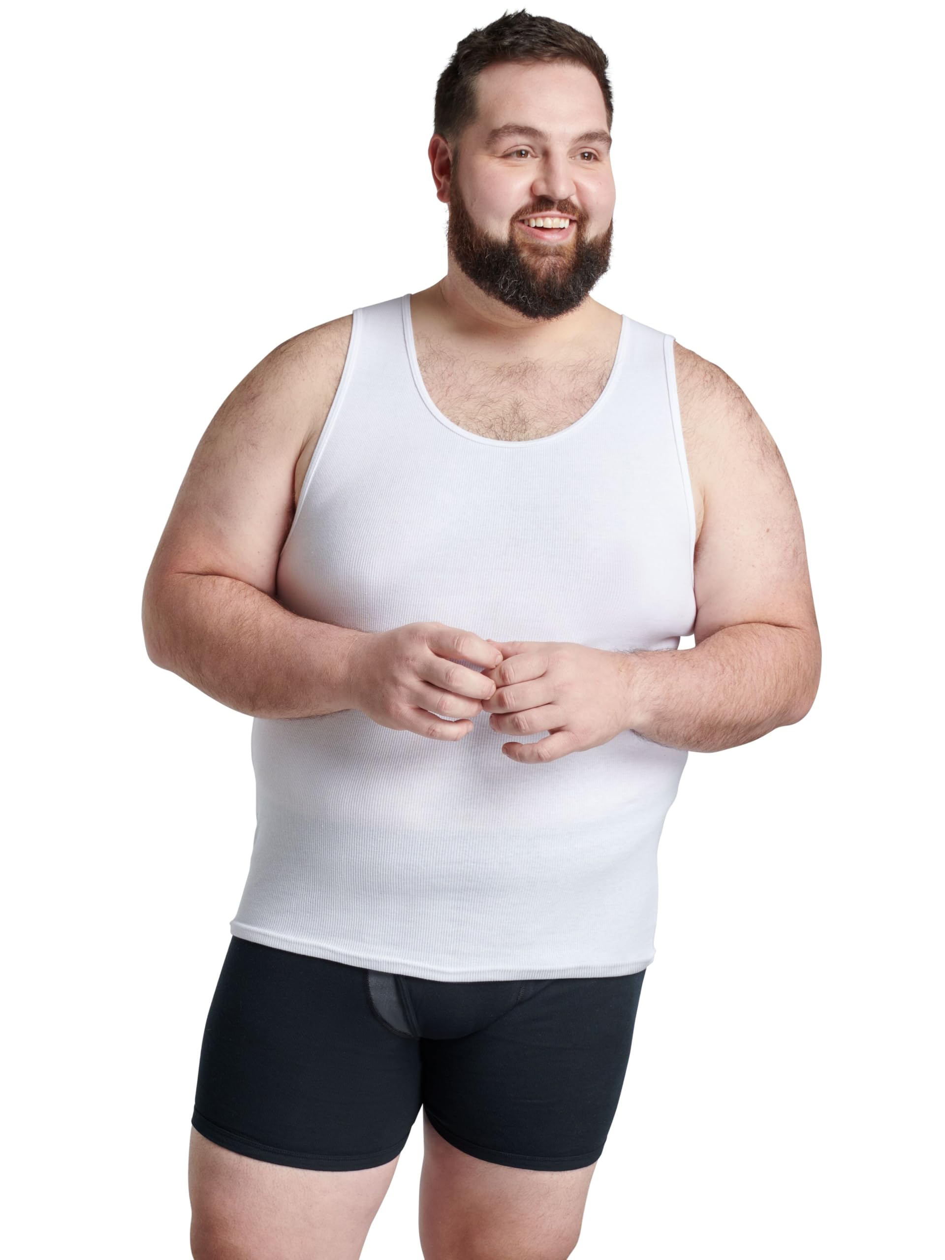 Fruit of the Loom Men's Classic White Tanks are comfortable and versatile as an every day undershirt. They are made with super-soft, 100% cotton ribbed fabric, providing a cool and comfortable fit that forms to your shape. These a-shirts have generous length that stay tucked in all day and keep you comfortable in every situation. These sleeveless undershirts are comfortable and light enough to be worn as an extra layer without adding extra warmth to an outfit. Each undershirt wicks away moisture so you can stay cool and dry.