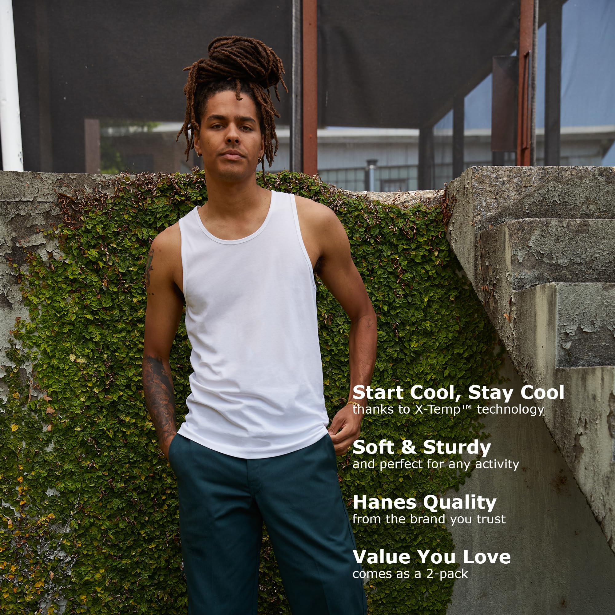 Made for the guy on the go, this Hanes® men’s performance tank is designed to keep you feeling cool and dry even during your most active days - thanks to X-Temp™ technology that adapts to your body temperature and activity level. The innovative moisture-wicking fabric features dynamic vapor control so that you can work up a sweat without worry. Available in an assortment of solid colors, this comfy men's tank top is crafted from a cotton-rich blended fabric and comes in a convenient 2-pack for one-and-done shopping.