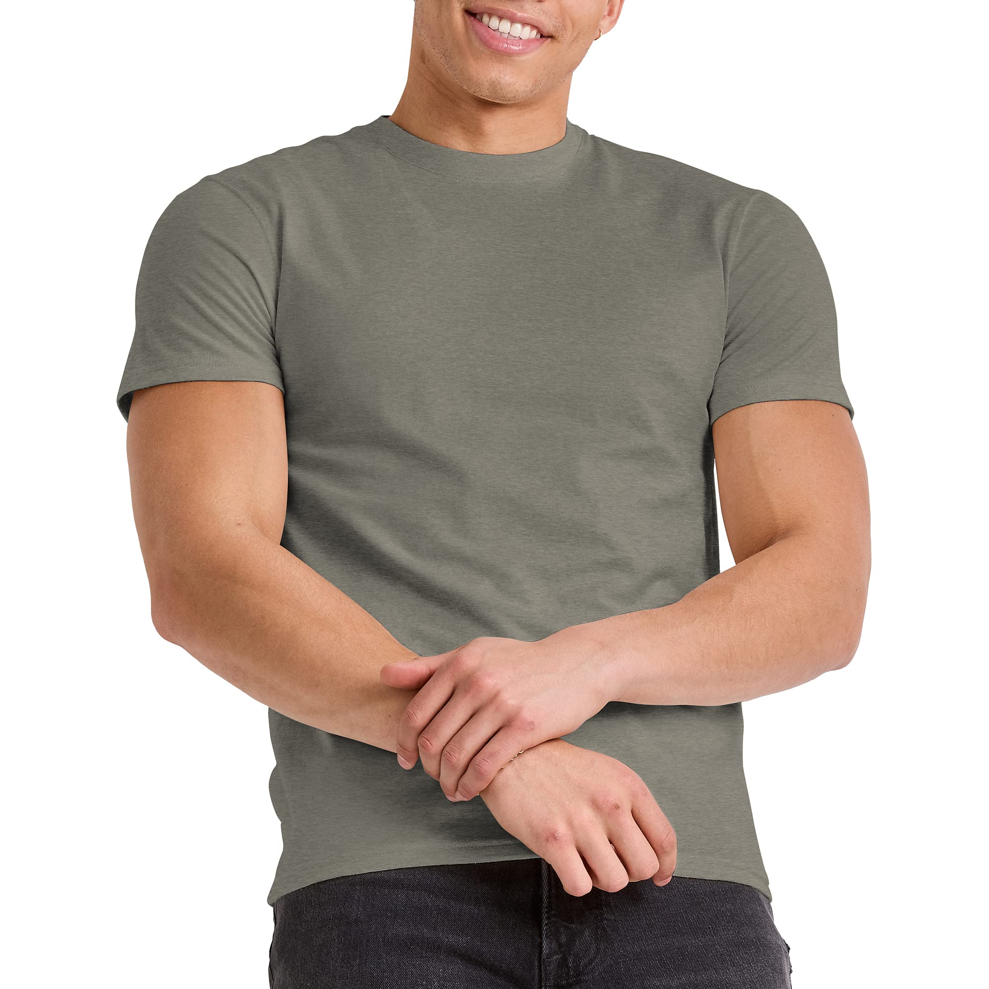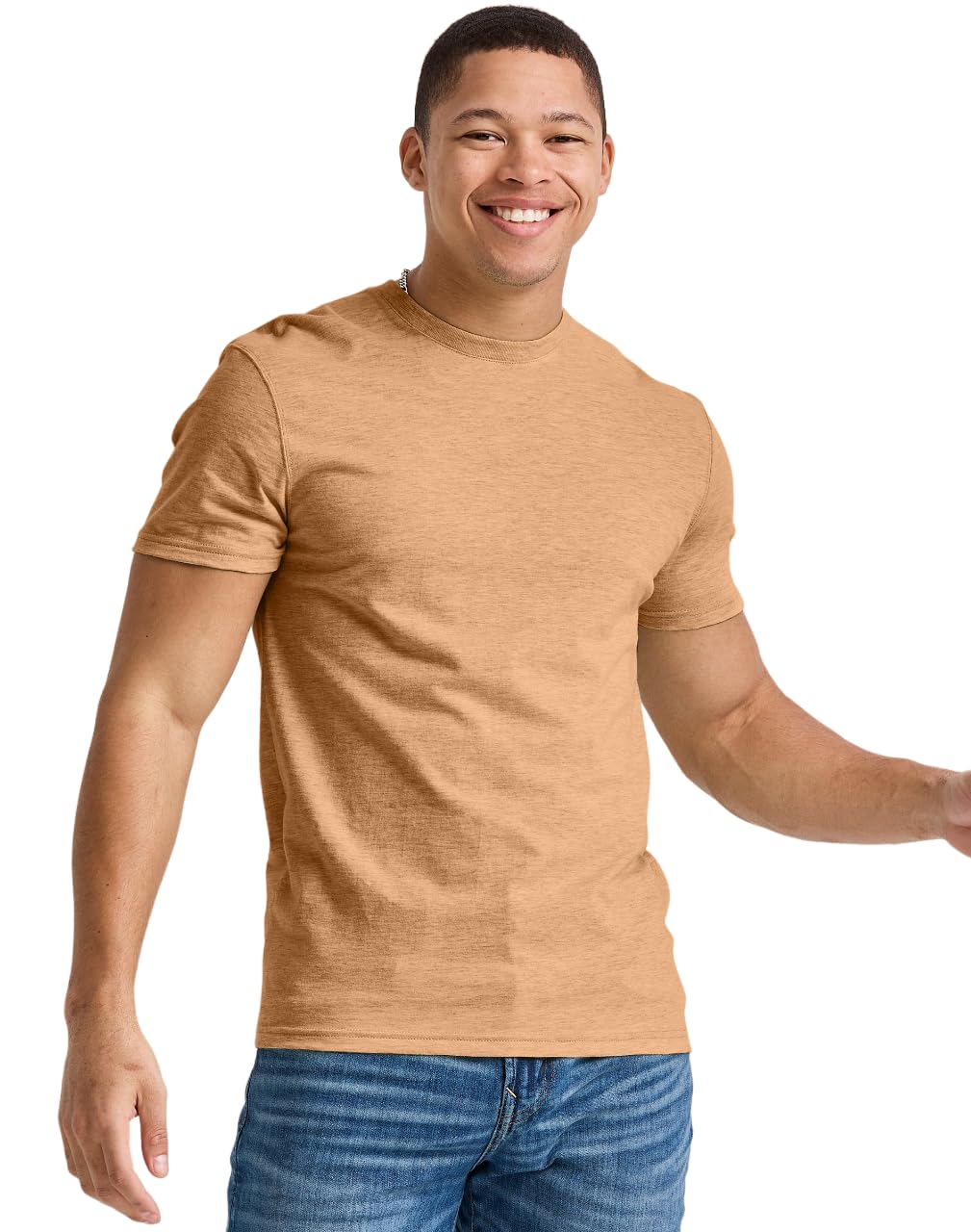 Tried and true, this classic tall men's t-shirt showcases the best of Hanes® quality! A ribbed crewneck collar and robust double needle-stitched armholes make it the perfect go-to tee. Crafted from a knit poly/cotton/ rayon blend that features recycled polyester fibers, this classic tee delivers lightweight softness for a buttery feel you're going to love Delivering total comfort, Hanes men's short-sleeve tee is sure to become your new favorite style. Gym, track, or rest day—Hanes Originals has your back. Layer it under your favorite hoodie or wear it alone for easy styling.