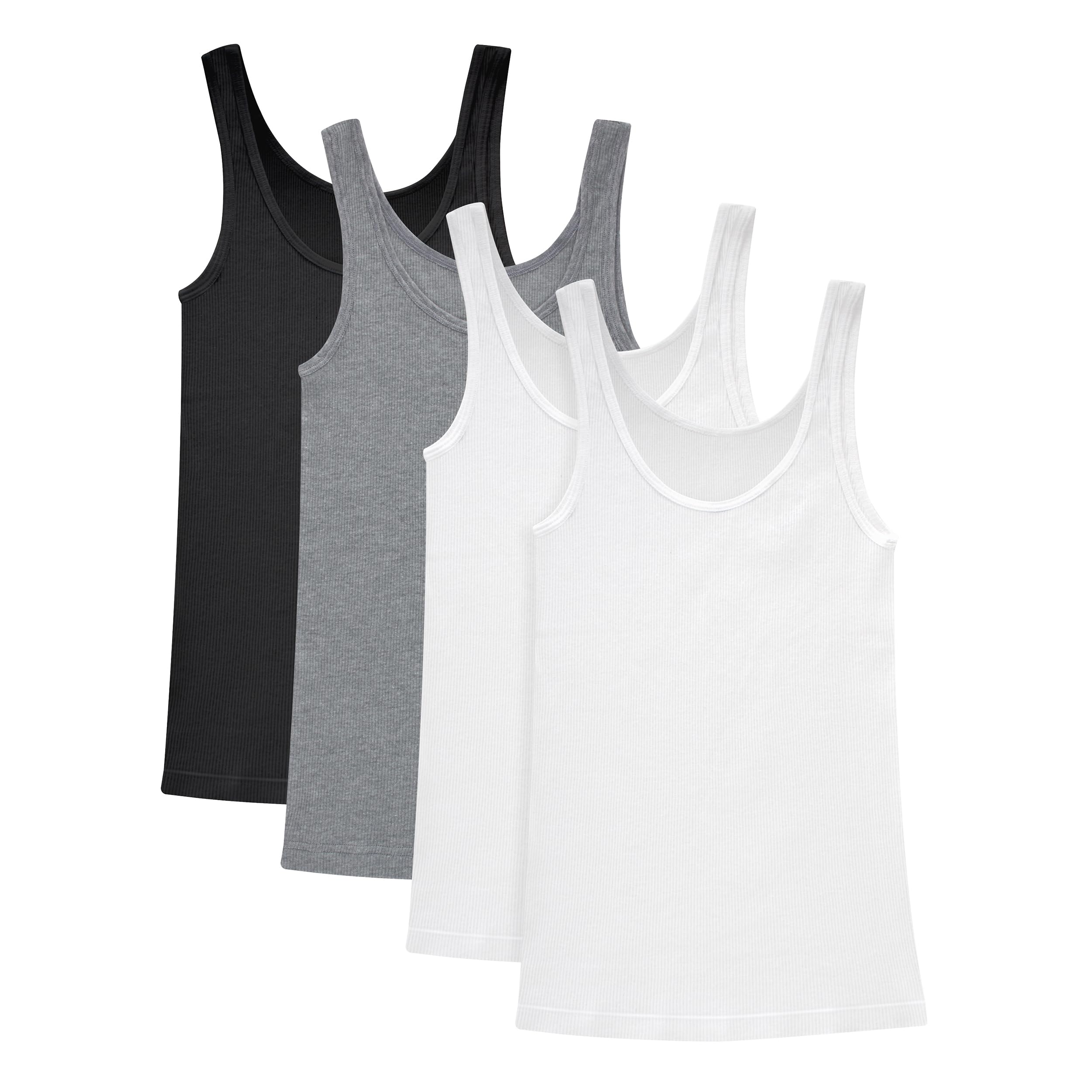 Perfect for layering but cute on its own, this ribbed tank top from the Hanes® Originals collection is a wardrobe essential. This comfy women's tank is crafted from a soft cotton-rich blend and boasts a just-right fit - not too loose and not too tight. A classic tank top silhouette features a scoop neck and distinctive, textured ribbing. You won't have to worry about the itch caused by tags, thanks to the smooth, Tagless® interior. And the best part? It's now available in a convenient pack of four so you can always keep a clean Hanes tank on hand.