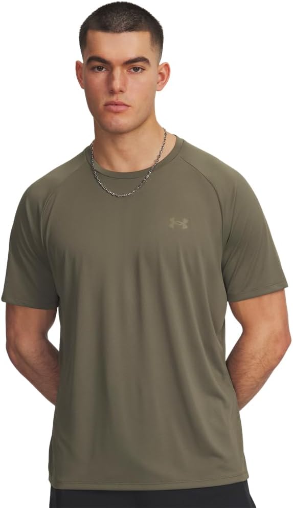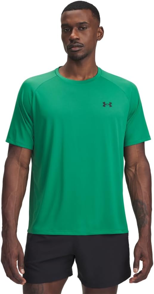 UA Tech fabric is quick-drying, ultra-soft & has a more natural feel. Material wicks sweat & dries really fast. New, streamlined fit & shaped hem. UA Tech™ is our original go-to training gear: loose, light, and it keeps you cool. That's why this men's training T-shirt is everything you need. Loose: Fuller cut for complete comfort. TALL Sizes: All tall sizes are 2”/ 5 cm longer than regular sizes. Sleeve lengths are adjusted proportionately depending on silhouette.Stretchy, anti-odor fabric is built to last.