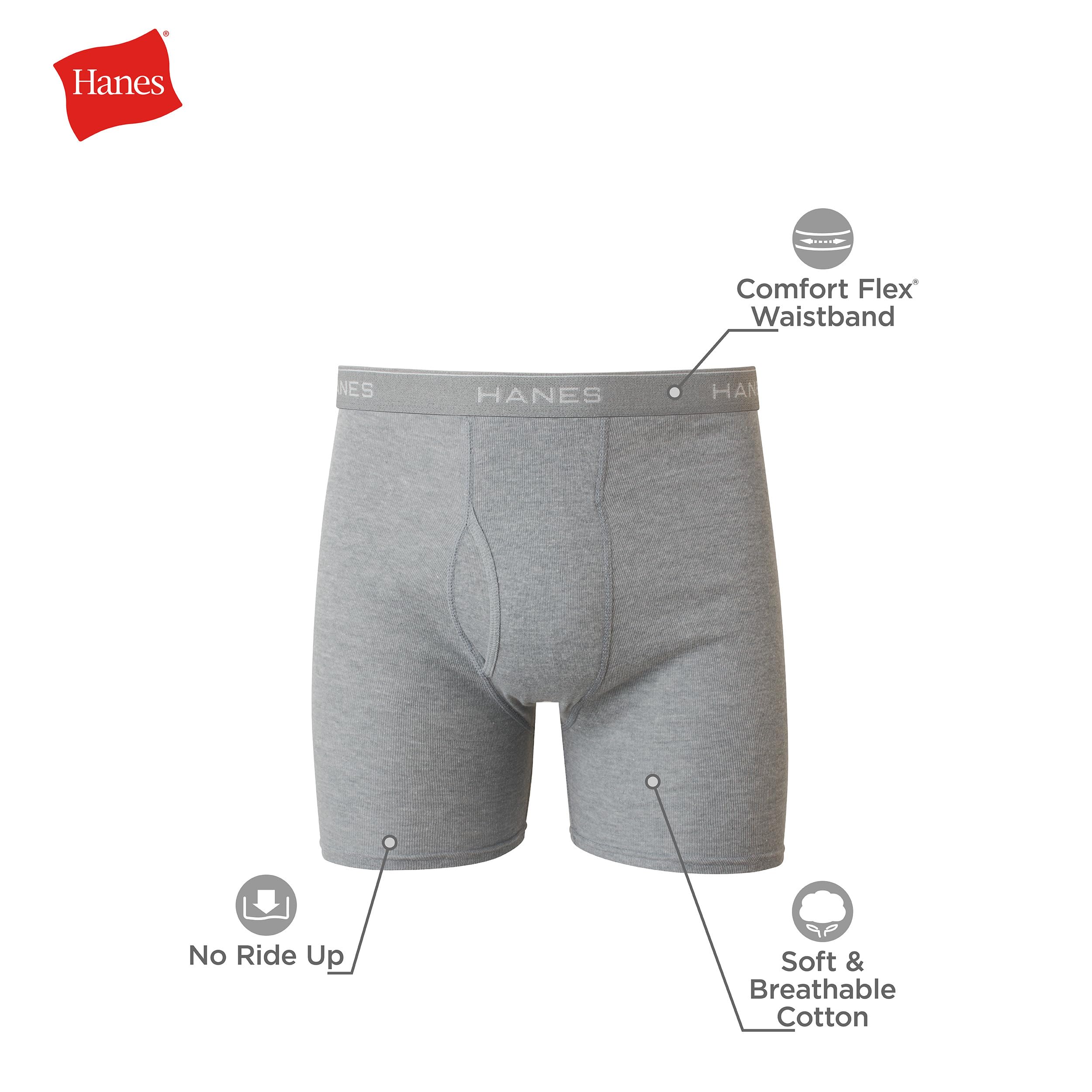 This men's boxer briefs multipack is made from 100% cotton that's soft and breathable for everyday comfort (heathered styles are a cotton-rich blend). Our moisture-wicking underwear is designed with Cool Comfort® fabric that helps keep you cool no matter what your day brings. Our experts also designed these men's underwear with no-ride-up construction and a Comfort Flex® waistband that stretches and moves with you. Plus, you can throw them right in the washer on laundry day. We also love how these tagless boxer brief underwear sets are available in multiple color and pack options, so you can choose the one that works best for you.