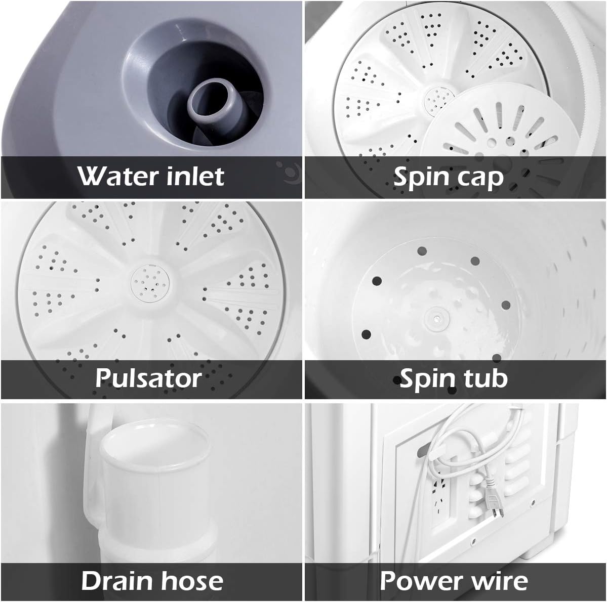 • 【Portable Washing Machine】: Giantex washing machine design has separate wash timer, wash selection and spin timer. You can decide the washing time, washing mode and spin time based on the clothes you need to wash. The humanized design helps you save water, power and soap. Your clothes will be washed cleaner than other washers.