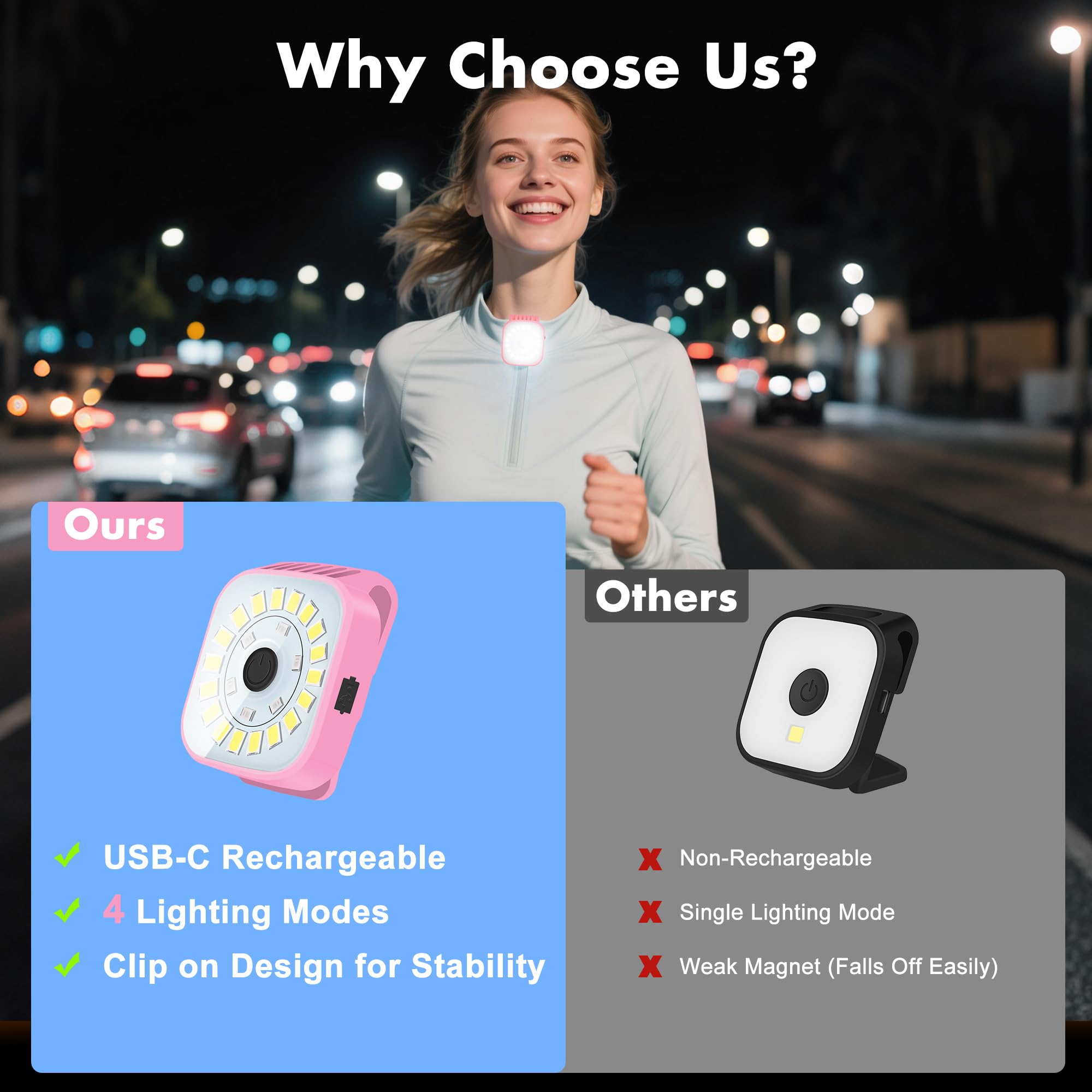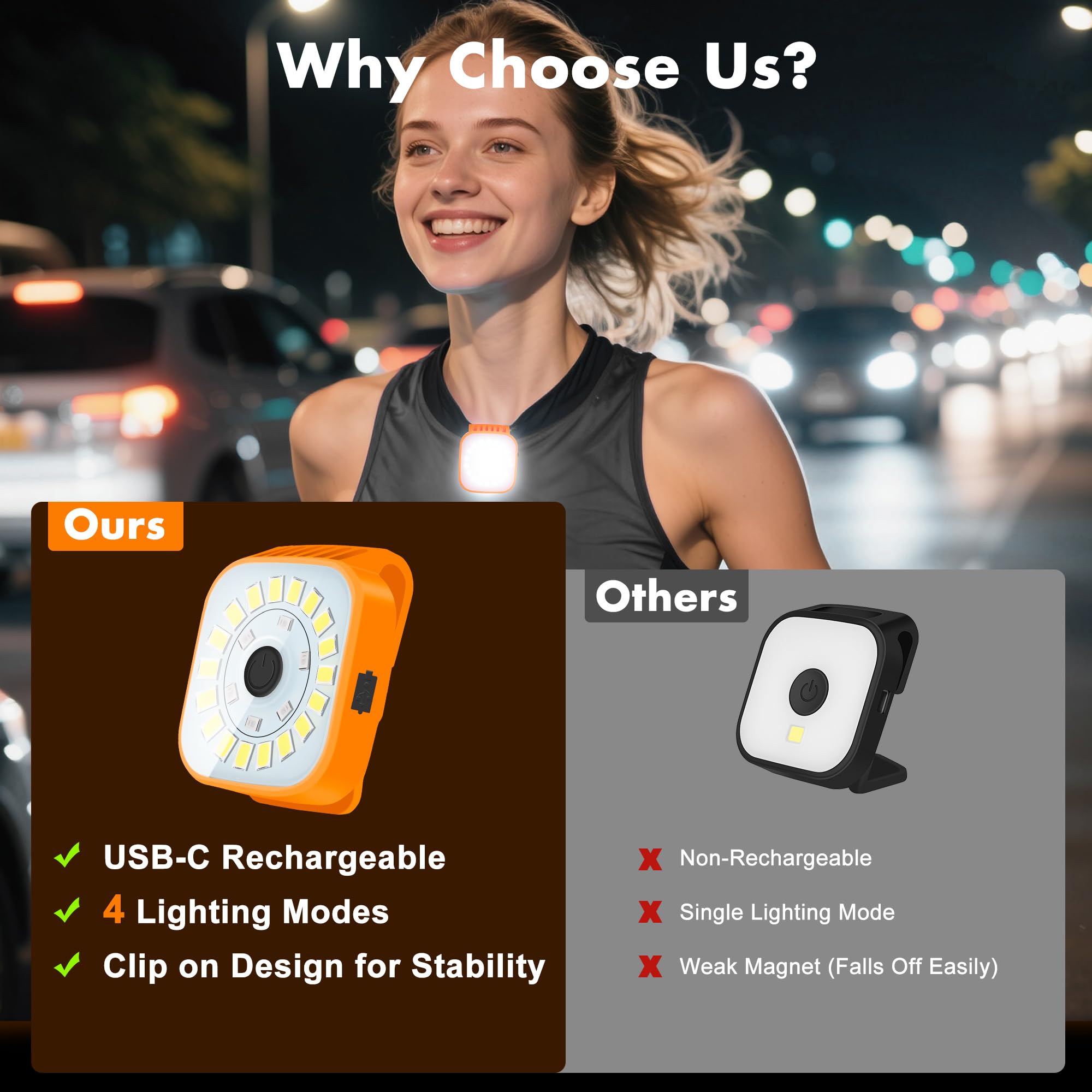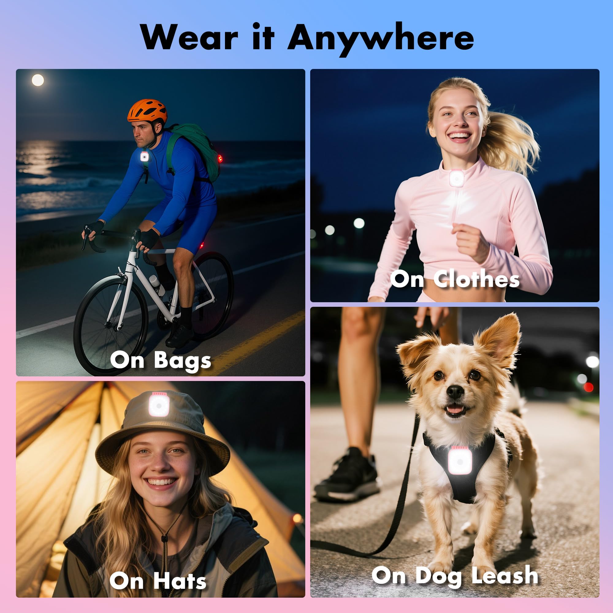 • Hands-Free Flashlight: This running light securely clips onto collars, hats, backpacks, pet collars or pockets in just one second - no struggling needed! The sturdy clip design keeps your hands completely free for running, walking or any outdoor adventure.Allows you to focus more on the exercise itself during your night run or walk