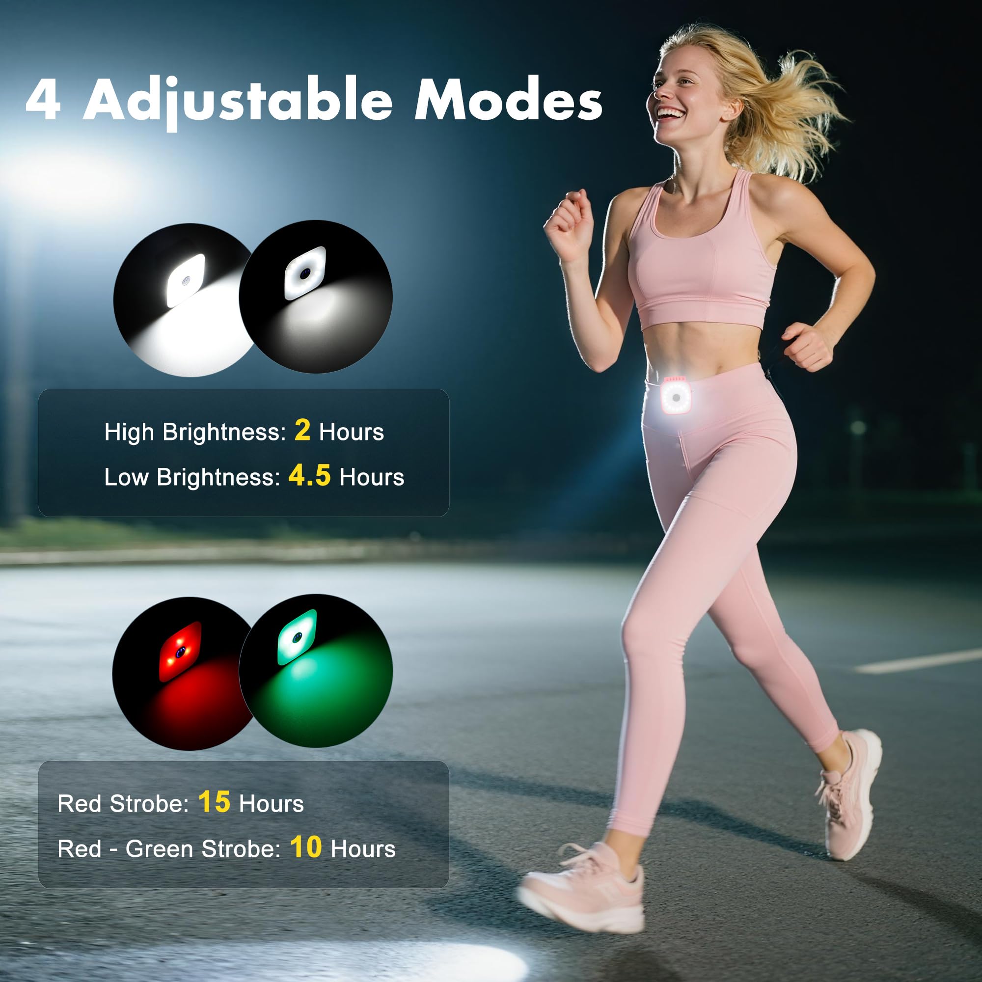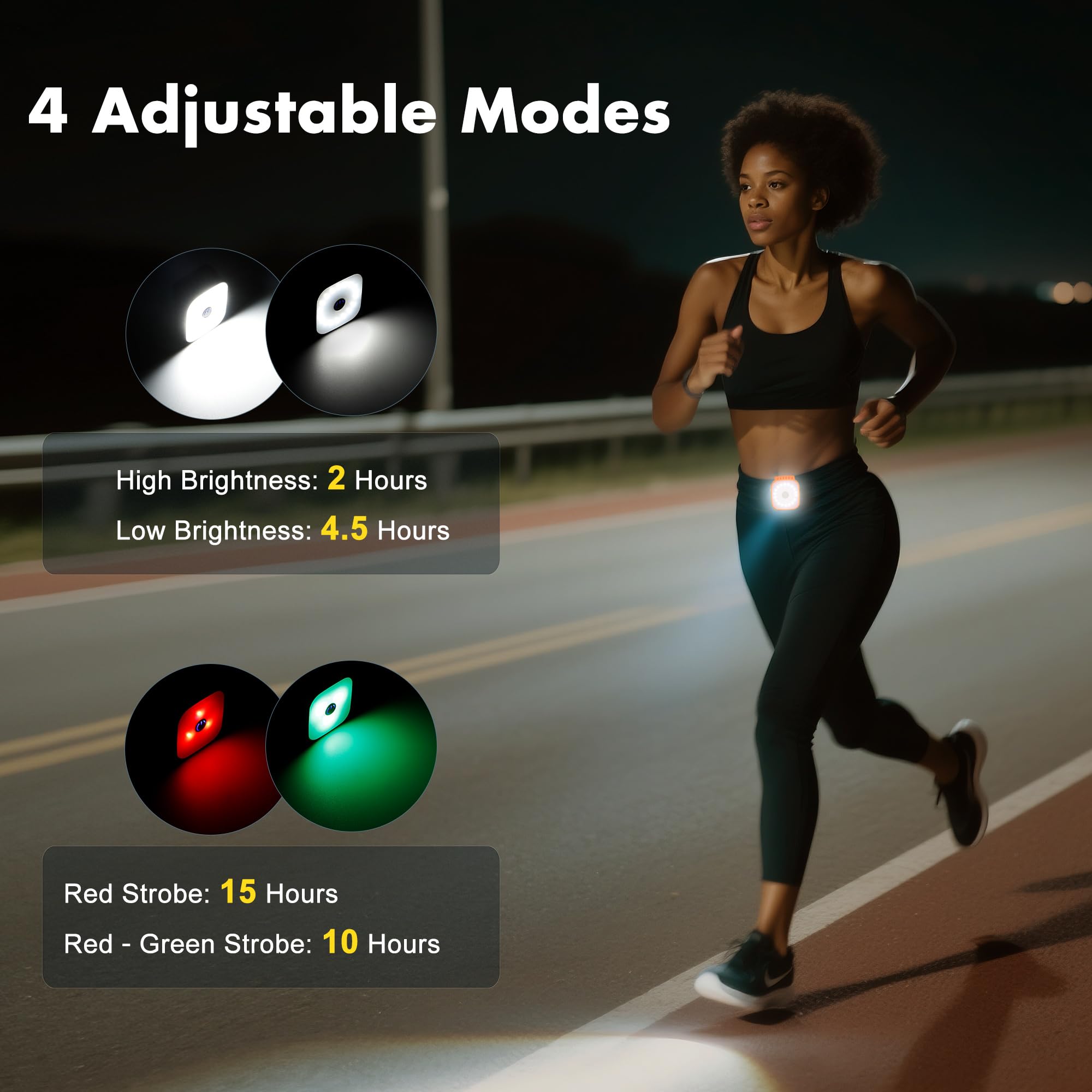 • Multi-Mode: Features 4 settings - hight/low white light for illumination, plus red flash and red-green pulse for visibility. This compact running light for runners doubles as a red light flashlight and flashlight for walker light, with one-tap mode switching. Perfect for urban streets, park trails, or extreme weather conditions