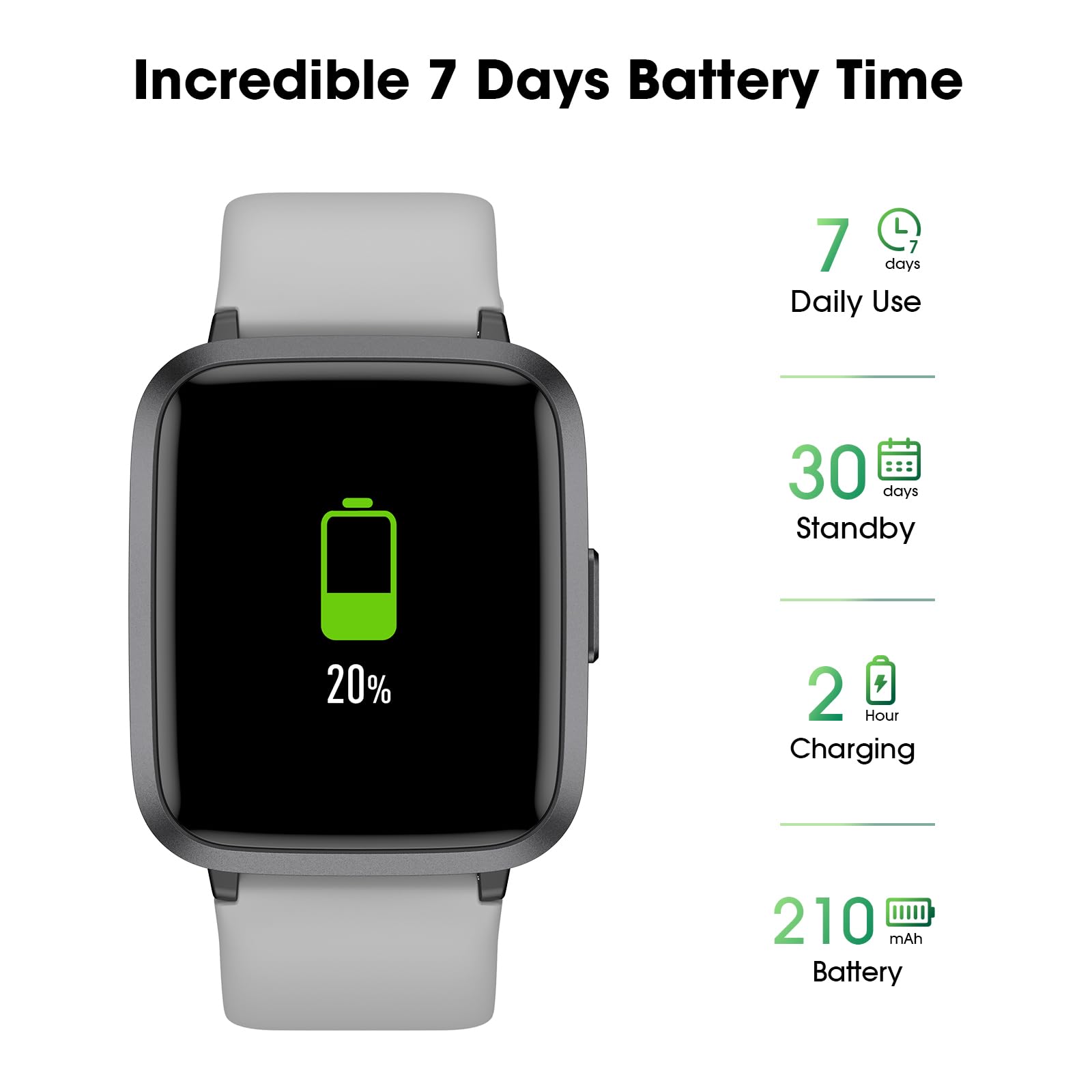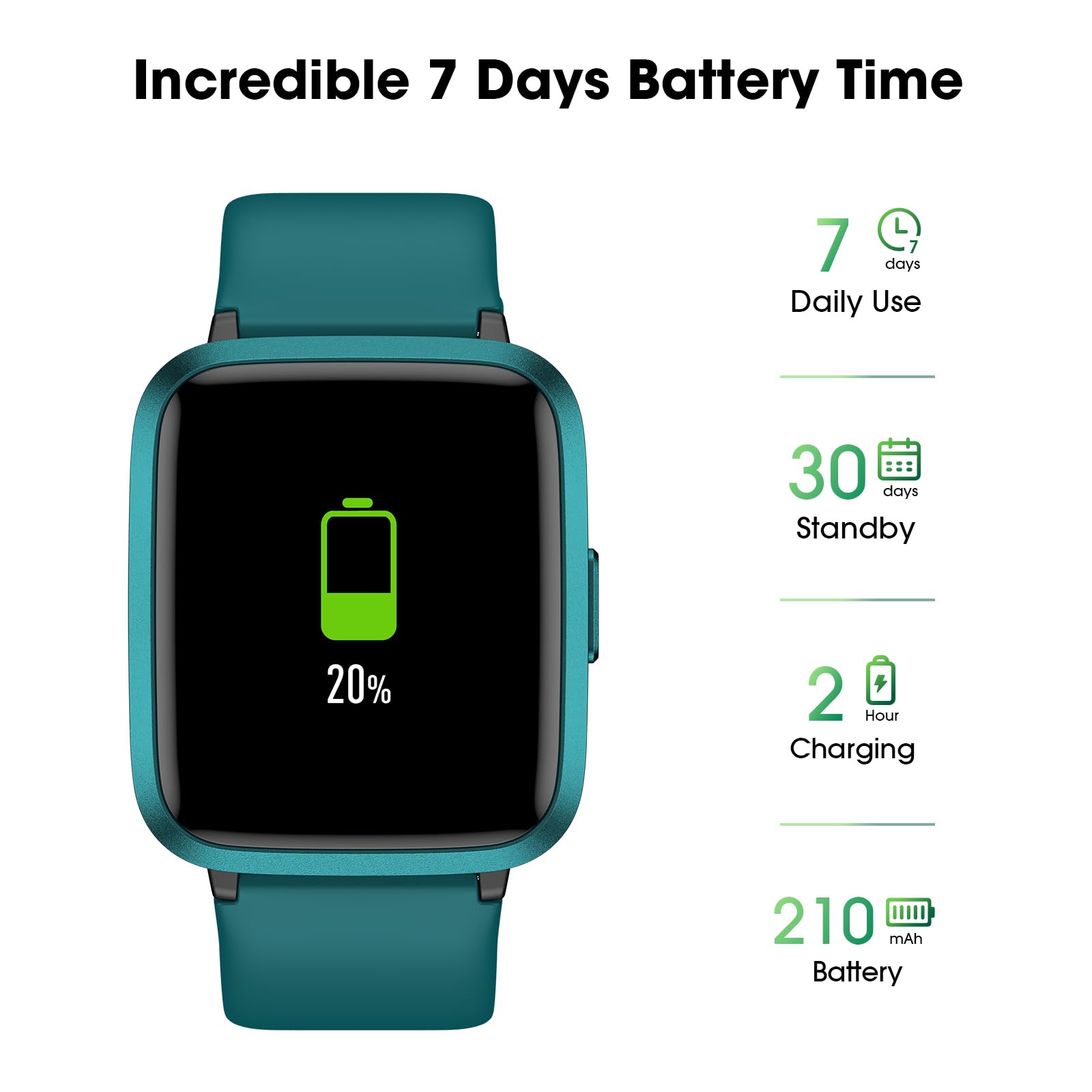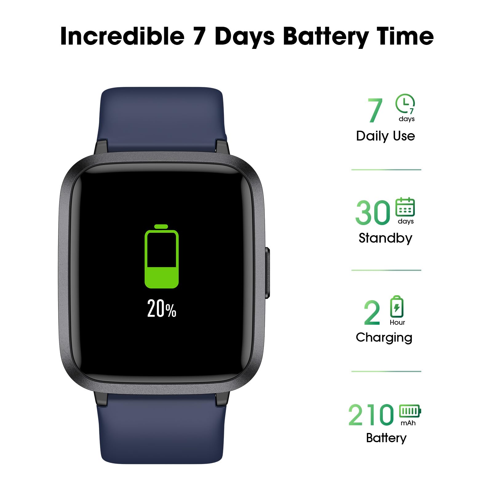 • Long Battery Life and 5ATM Waterproof: This smart watch only requires 2 hours of charging and can be used for 5-7 days continuously. 5ATM waterproof rating can withstand daily sweat, washing hands and rainy day, allowing you to fully enjoy your workouts.