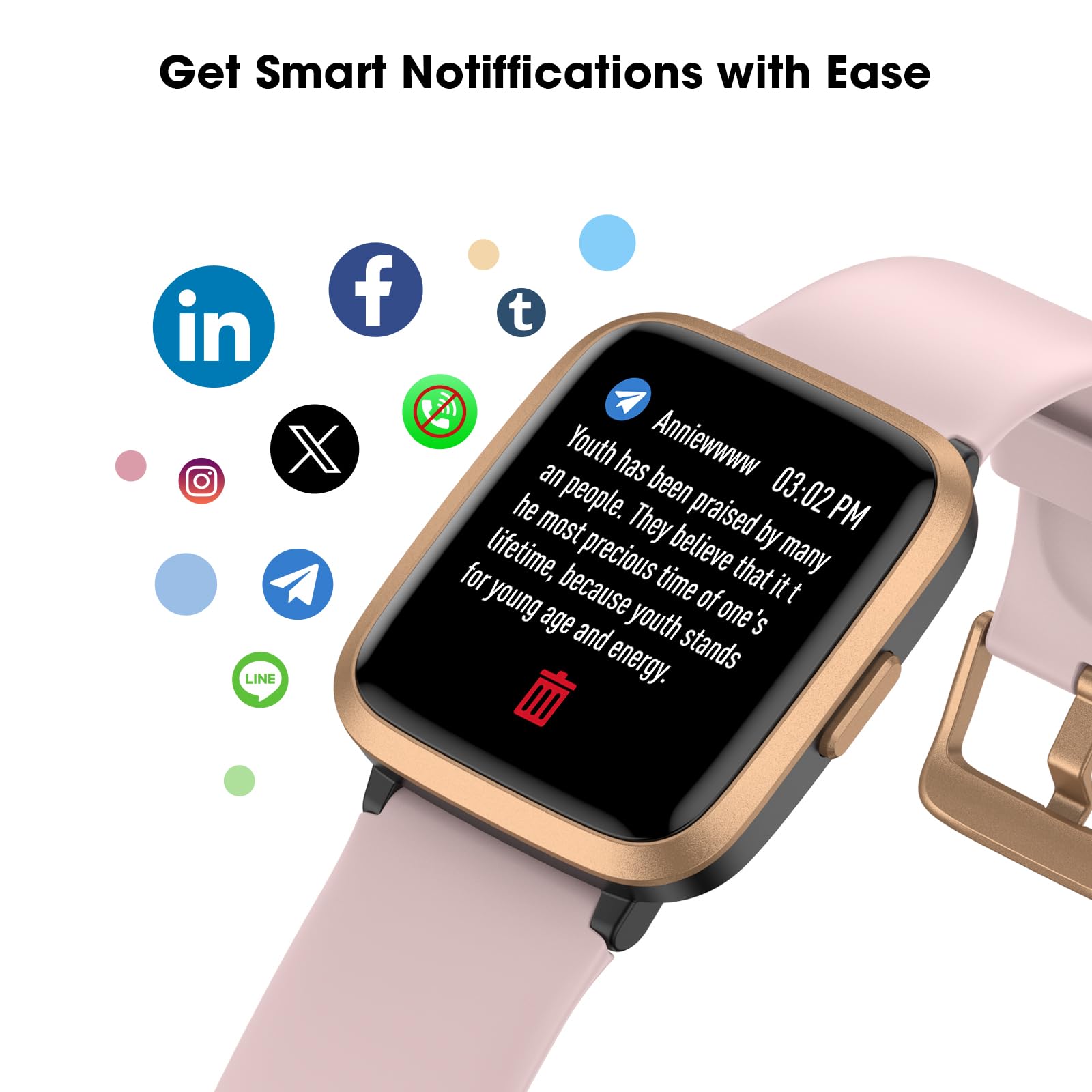 • Smart Notification Reminder: You can get SMS messages, and SNS notifications directly on your wrist including Facebook, Twitter, Gmail ect. You won't miss any important calls and message and stay updated. Please note: the smart watch can not make calls or text.