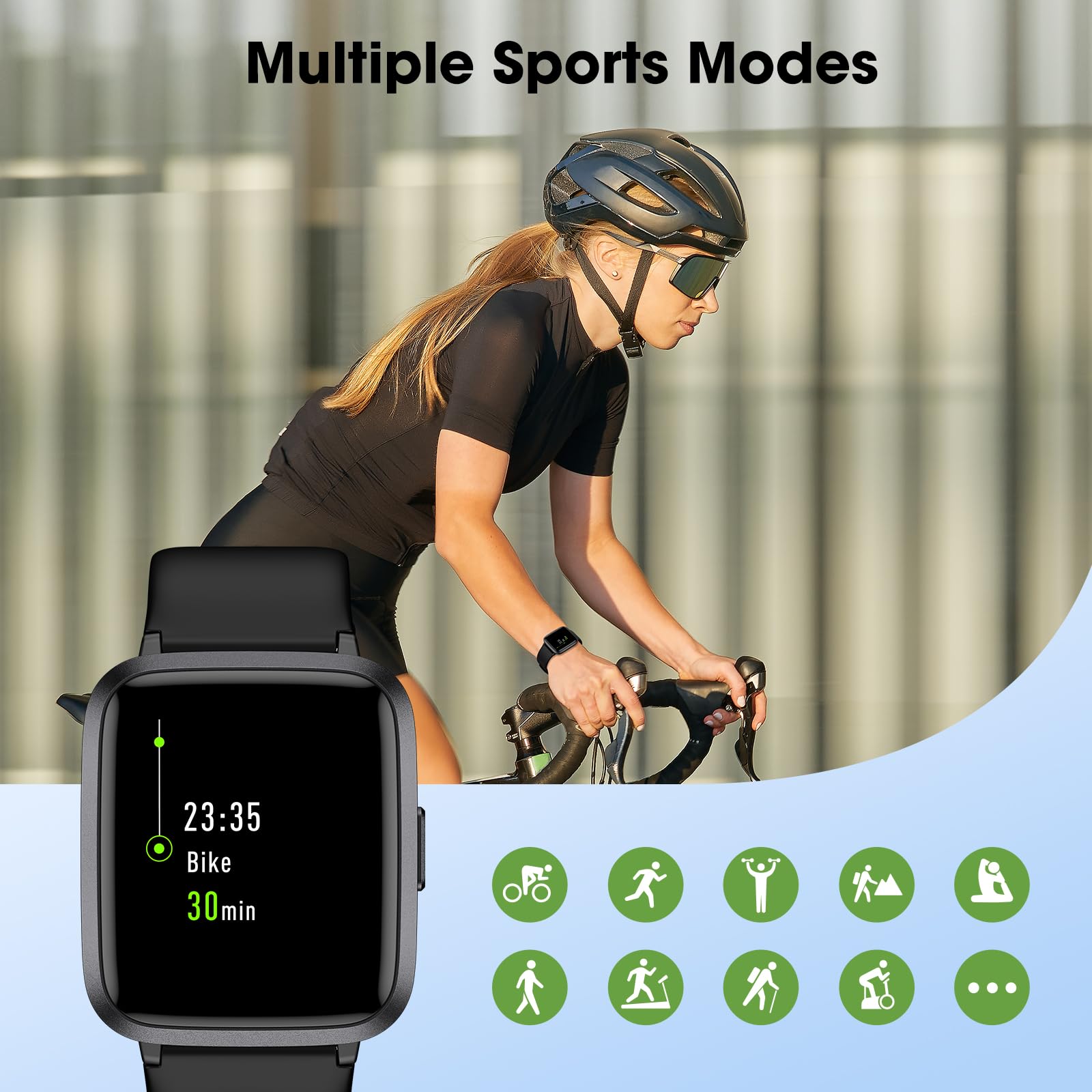 • Multi Sport Modes with Activity Tracking: The fitness tracker features 9 sport modes like running, walking and more. Additionally, the activity tracker records daily steps, calories burned, walking distance and active time throughout the day. You can also set a daily steps goals through the App to track your progress.