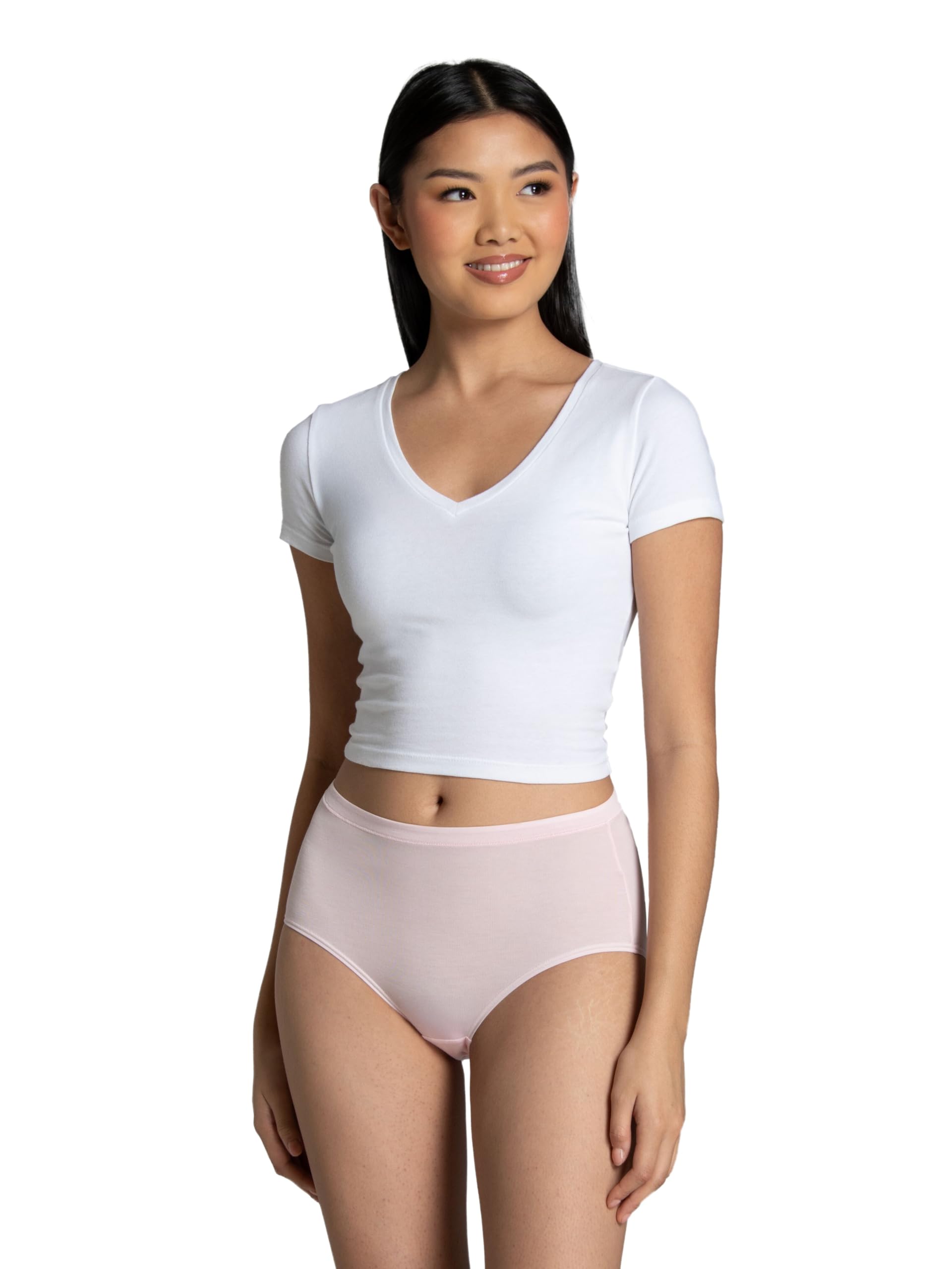 These Fruit of the Loom Women’s Beyondsoft Panties are a basic must-have! They’re made with a wonderfully soft fabric that feels so great you won’t believe that it’s also durable, shrinks less, and retains color longer. It gets softer wash after wash (just like your favorite t-shirt!) and lays flat against your skin to prevent panty lines. As always, our Fruit of the Loom panties are tag free and made with a 100% cotton liner. Feel your best knowing these panties were designed with comfort in mind.