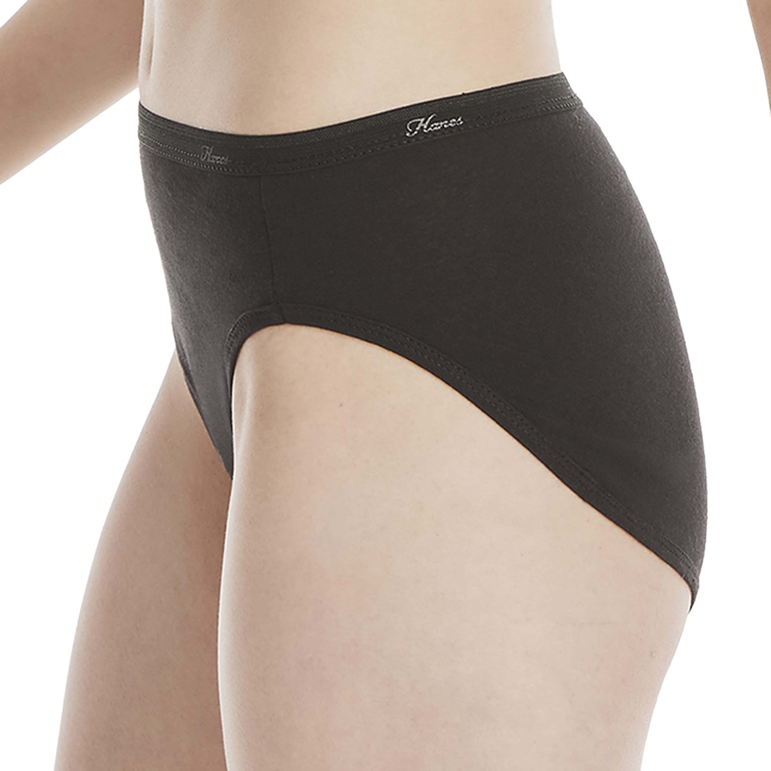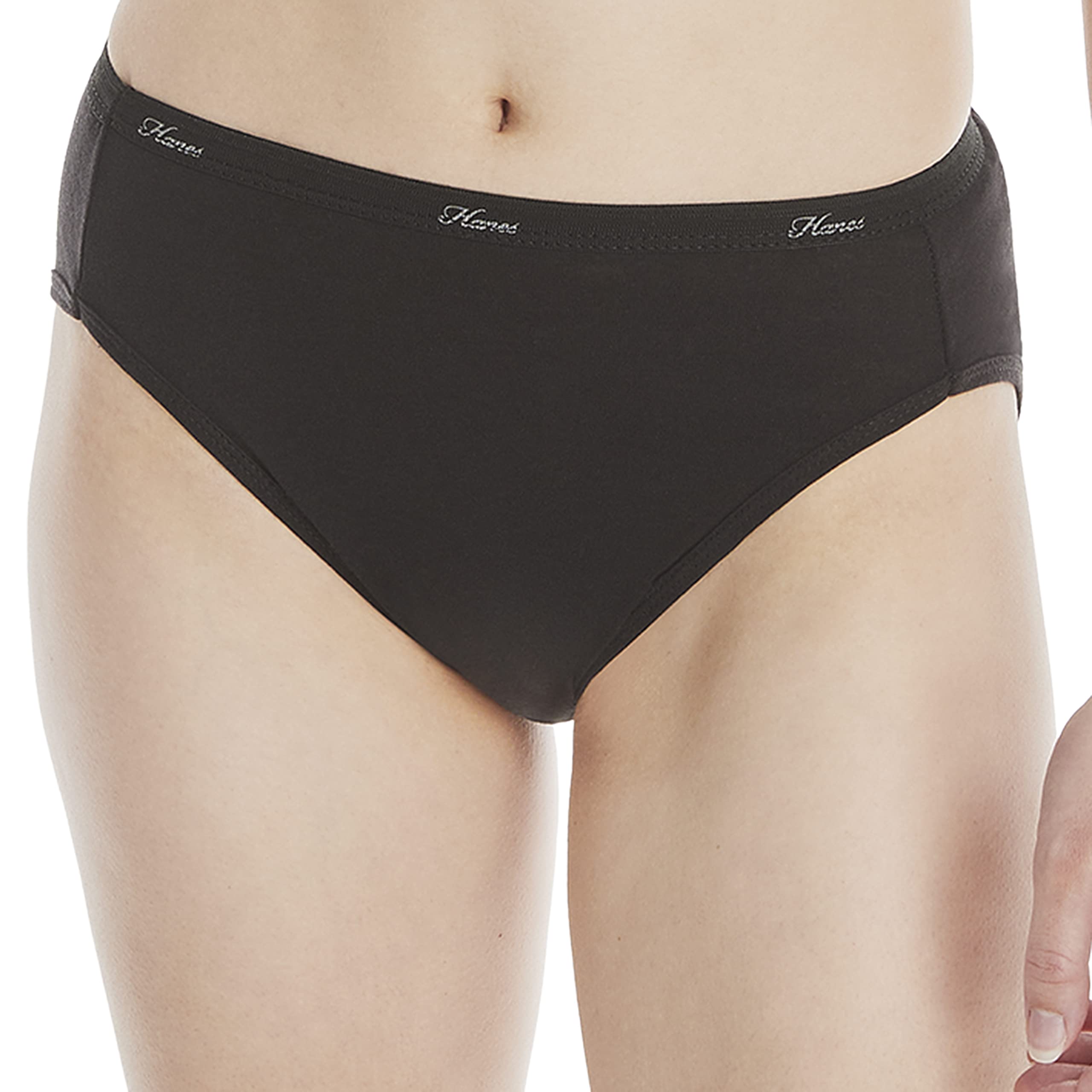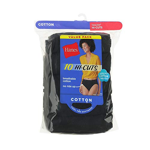 When you need to stock up on the best cotton hi-cuts you can find, trust the experts at Hanes. These better-than-basic high-cut panties are made with Cool Comfort fabric that wicks away moisture from your skin to keep you cool all day. The silhouette is just what you want in a leg-flattering underwear, with high-cut legs and a full-coverage back for a sleek, smooth look under clothes. The logo waistband of these moisture-wicking panties is soft, stretchy, and plush for comfort where you need it most. Stock up with this value pack of 10 pairs of hi-cut women's underwear for a style and fit you're sure to love.