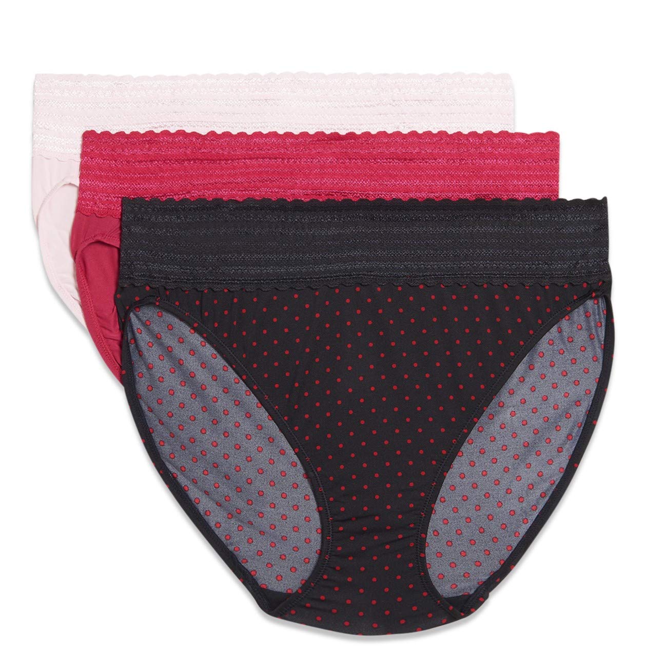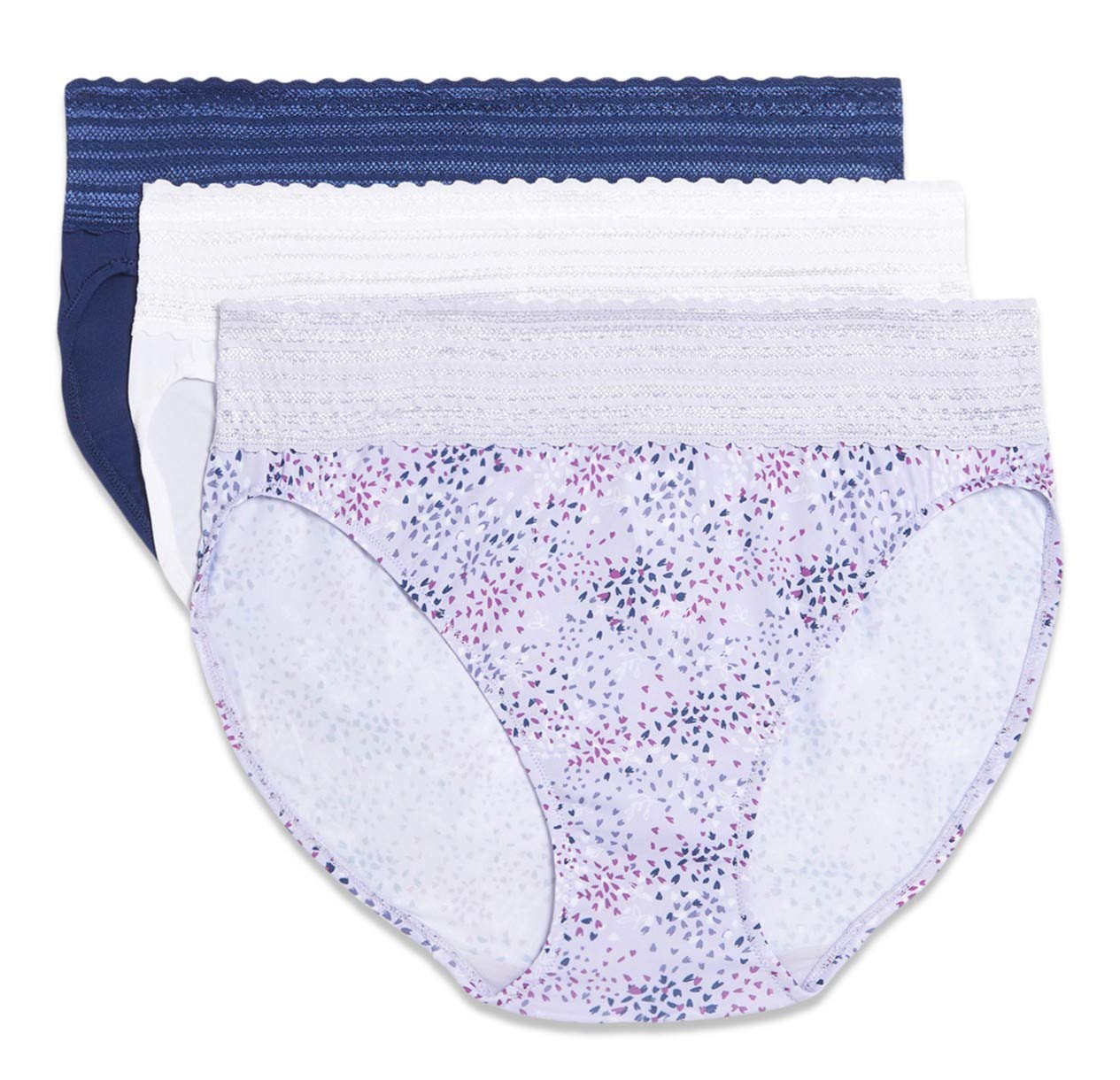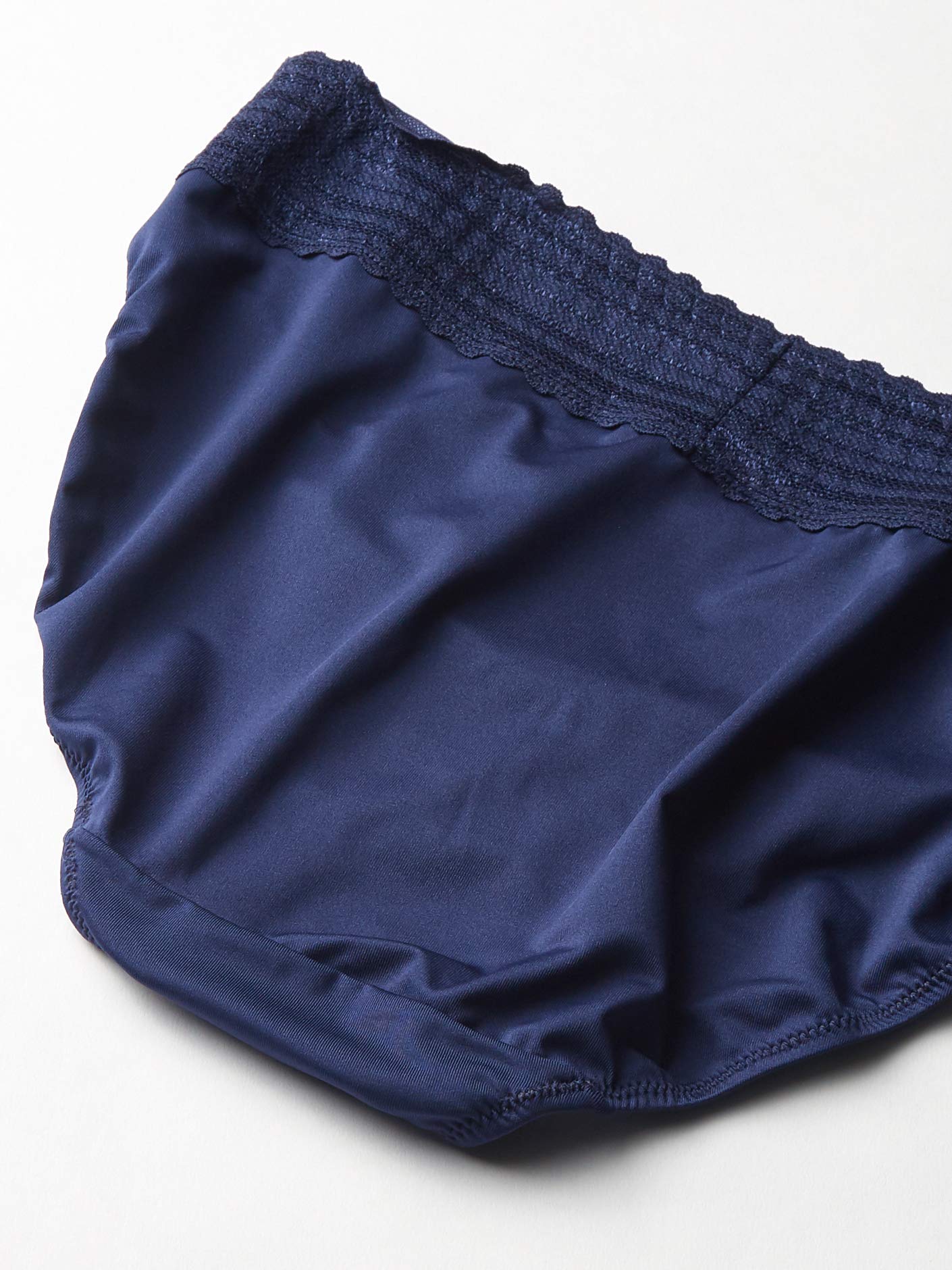The Warners® Blissful Benefits hi-cut with full back coverage has a flat lace waistband that won’t dig in, giving you a smoother look. Made with feel-good microfiber, this mid-waist style will become a go-to favorite.