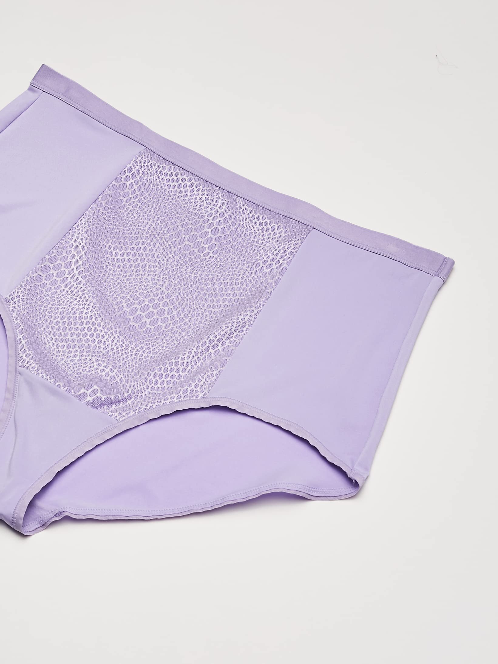 Get the tummy support you've been looking for. This tummy-smoothing mid-waist, full-coverage brief from Warners® Blissful Benefits has innovative lace panels for control right where you need it. Flat elastic at leg openings and waistband offer mobility and extra comfort.