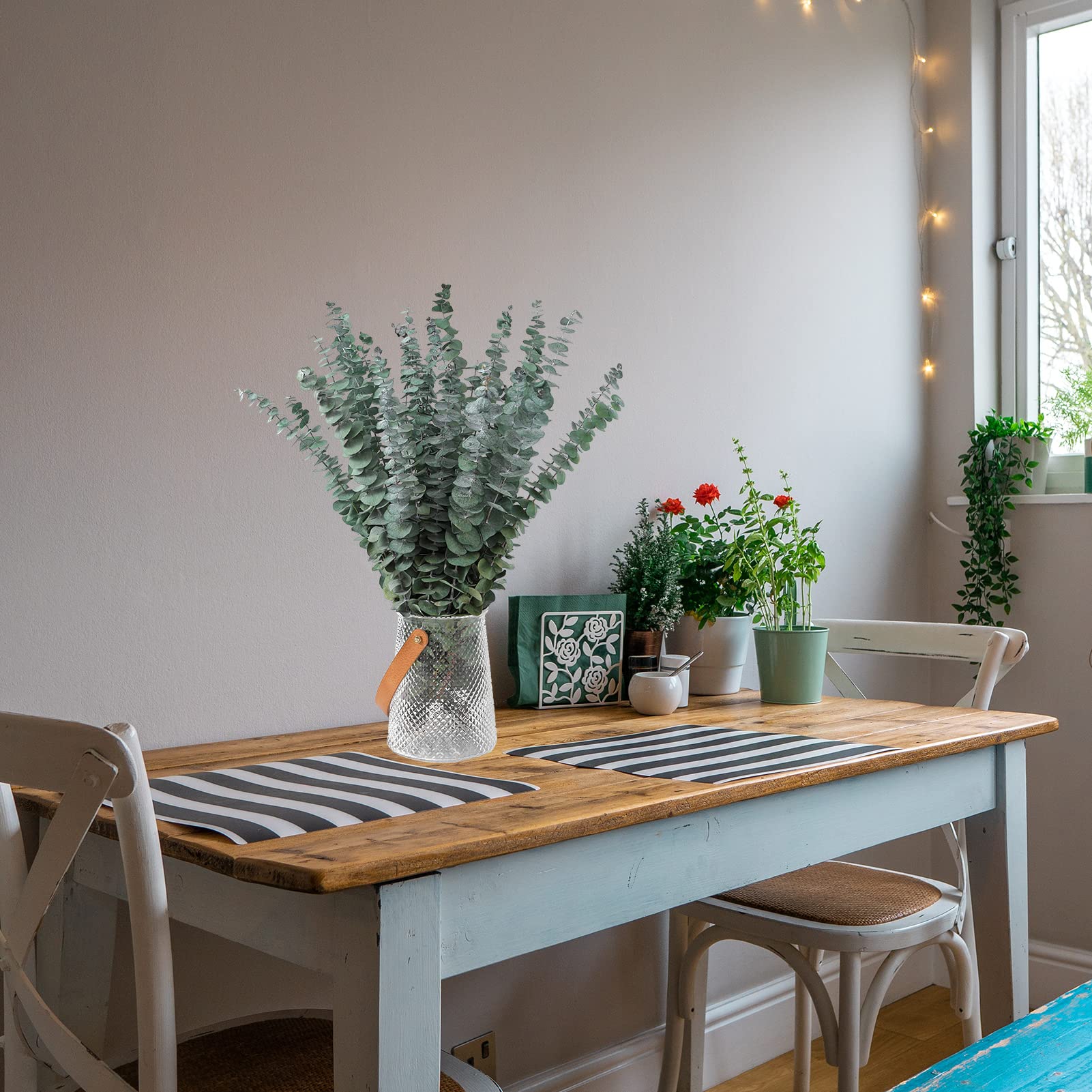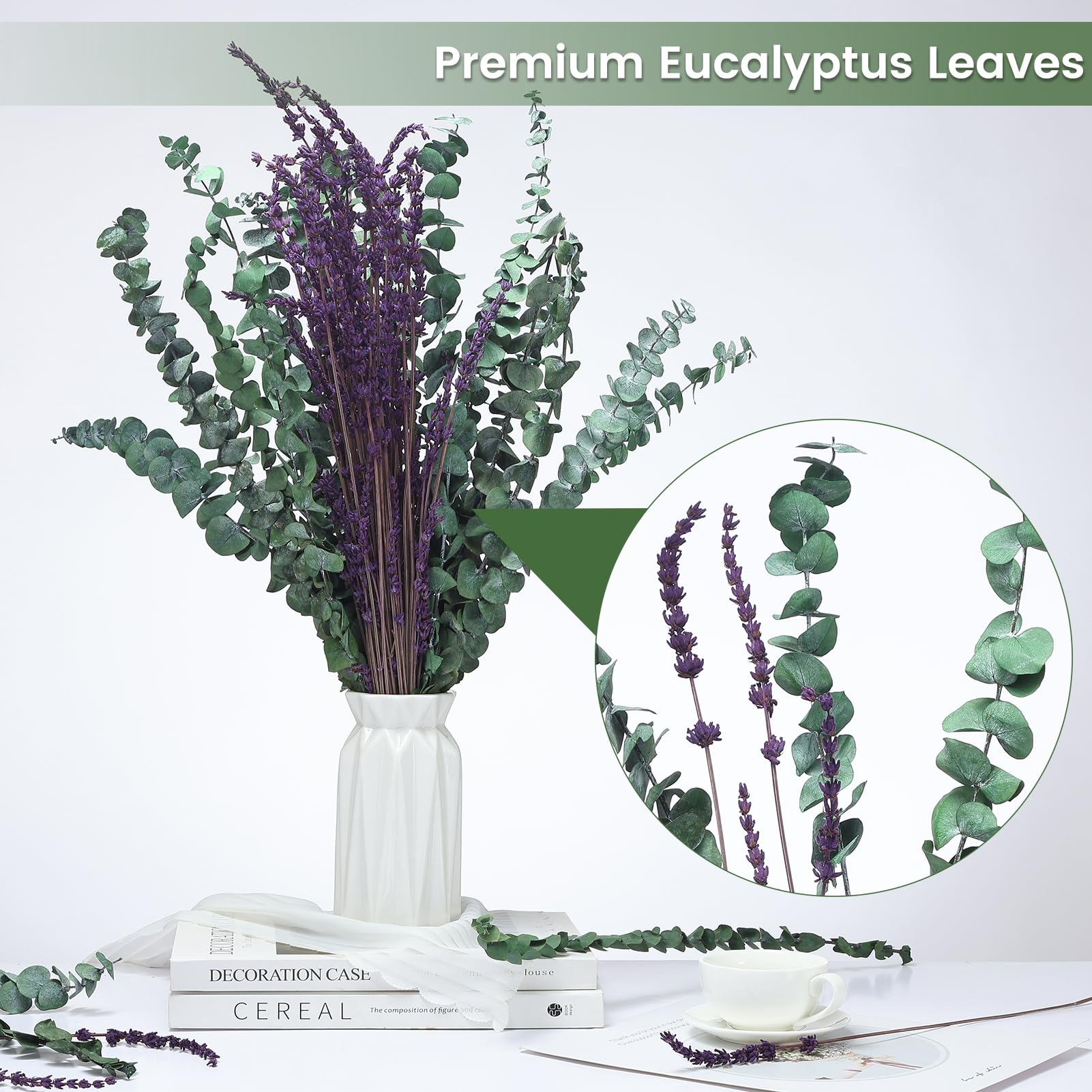 100% Natural Eucalyptus: Selected high-quality eucalyptus are taken from nature, stems are durable, cannot break easily.It is made by sun-drying and can be stored forever without worrying about its decay and Wither.Through our exquisite and careful processing technology, all eucalyptus can maintain the most original appearance and natural beauty.Note: The white powders on dried eucalyptus leaves are not dust, It's real eaculaptus stems